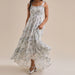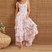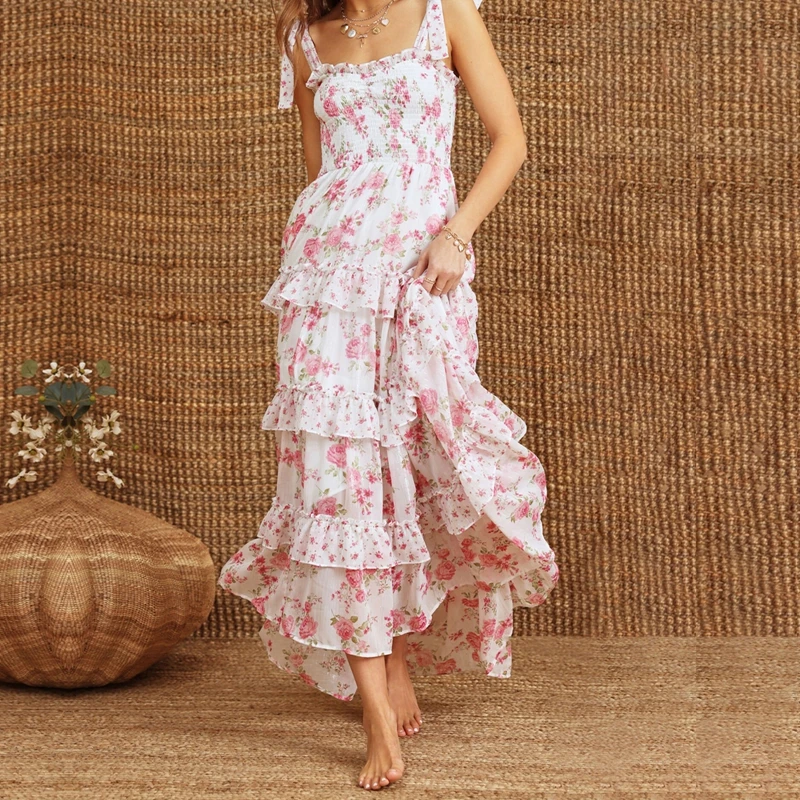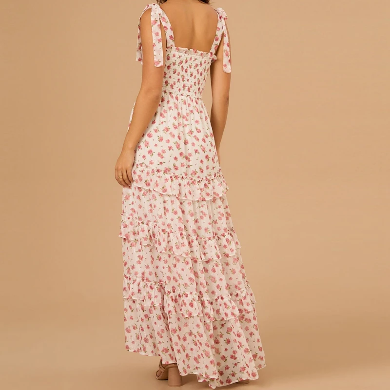 Cyflymder Floral Tie Shoulder Maxi Dress for Women Y2k Spaghetti Strap Ruffles Flowy Long Dress Ladies Summer Boho Beach A-line Sundress