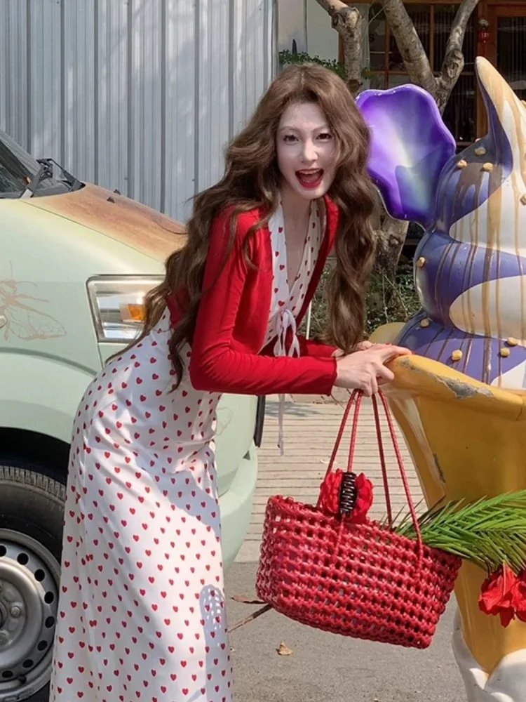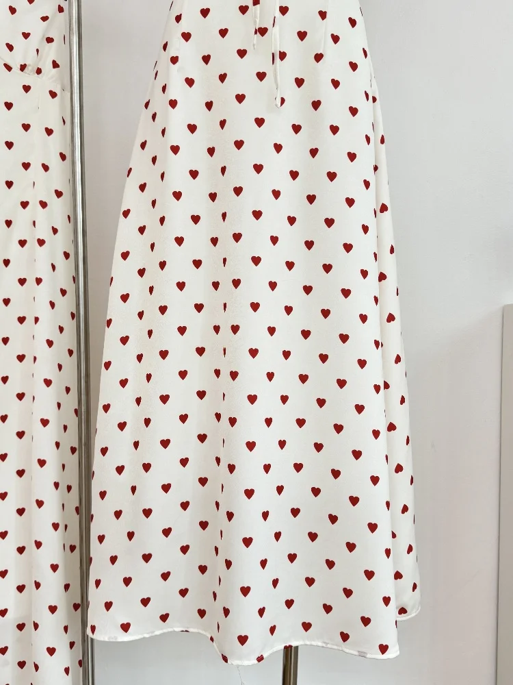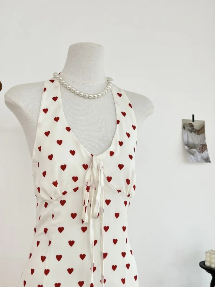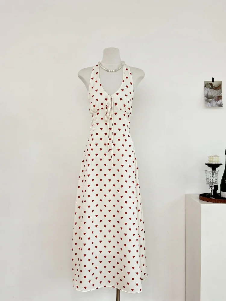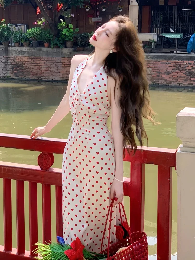Cyflymder French Elegant Heart Dot Long Dresses Sweet Slim Neck-mounted Summer Vacation Clothing Women Vintage Sexy Evening Party Dress
