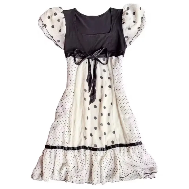 Cyflymder French New Sweet Elegant Polka Dot Print Dresses Y2k Fashion Spliced Slim Design Casual Punk Short Dress Constrast Color Clothes