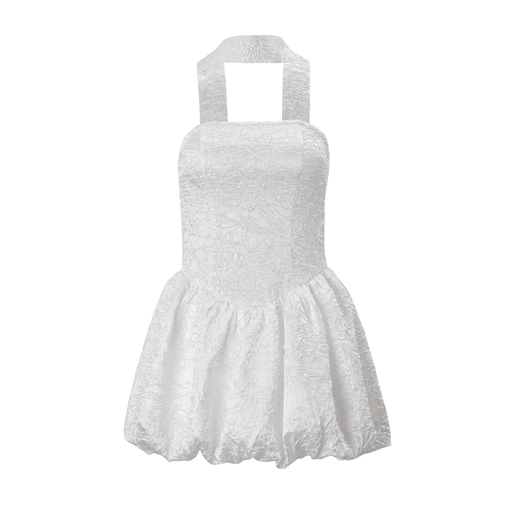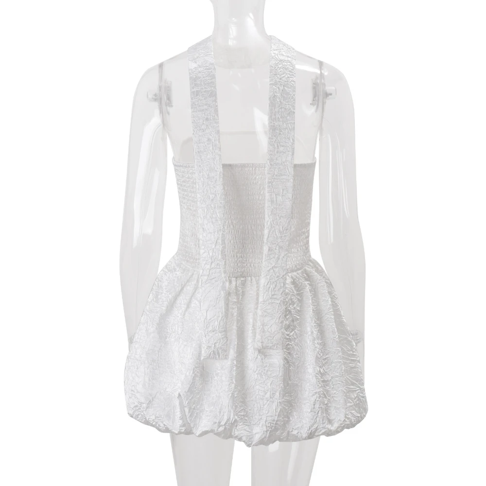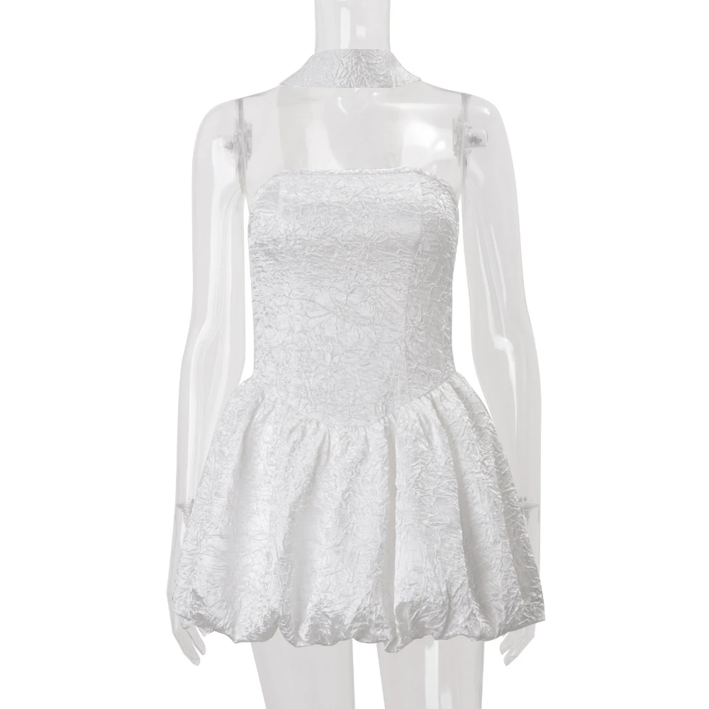 Cyflymder French Sexy Patchwork Folds Dress for Women Strapless Sleeveless Tunic Fashionable Puff Dresses with Ribbon Female