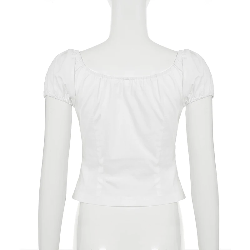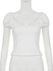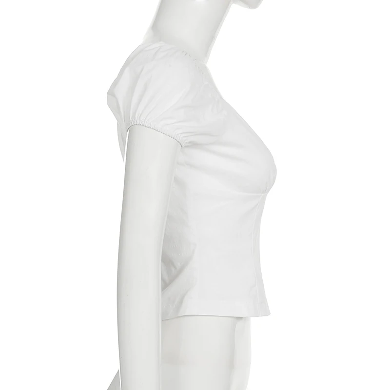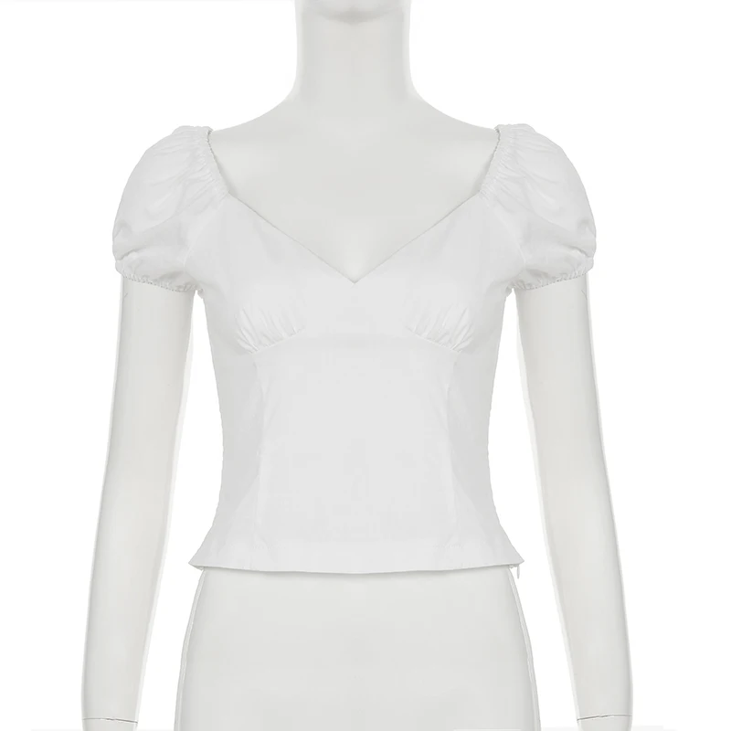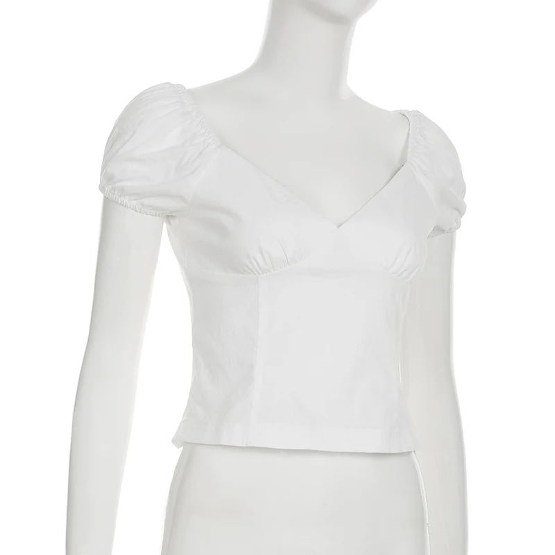 Cyflymder French Style Slim Solid Blouse Holiday Casual Deep V-Neck Short Puff Sleeve Shirts Women 2025 Summer Fashion Streetwear