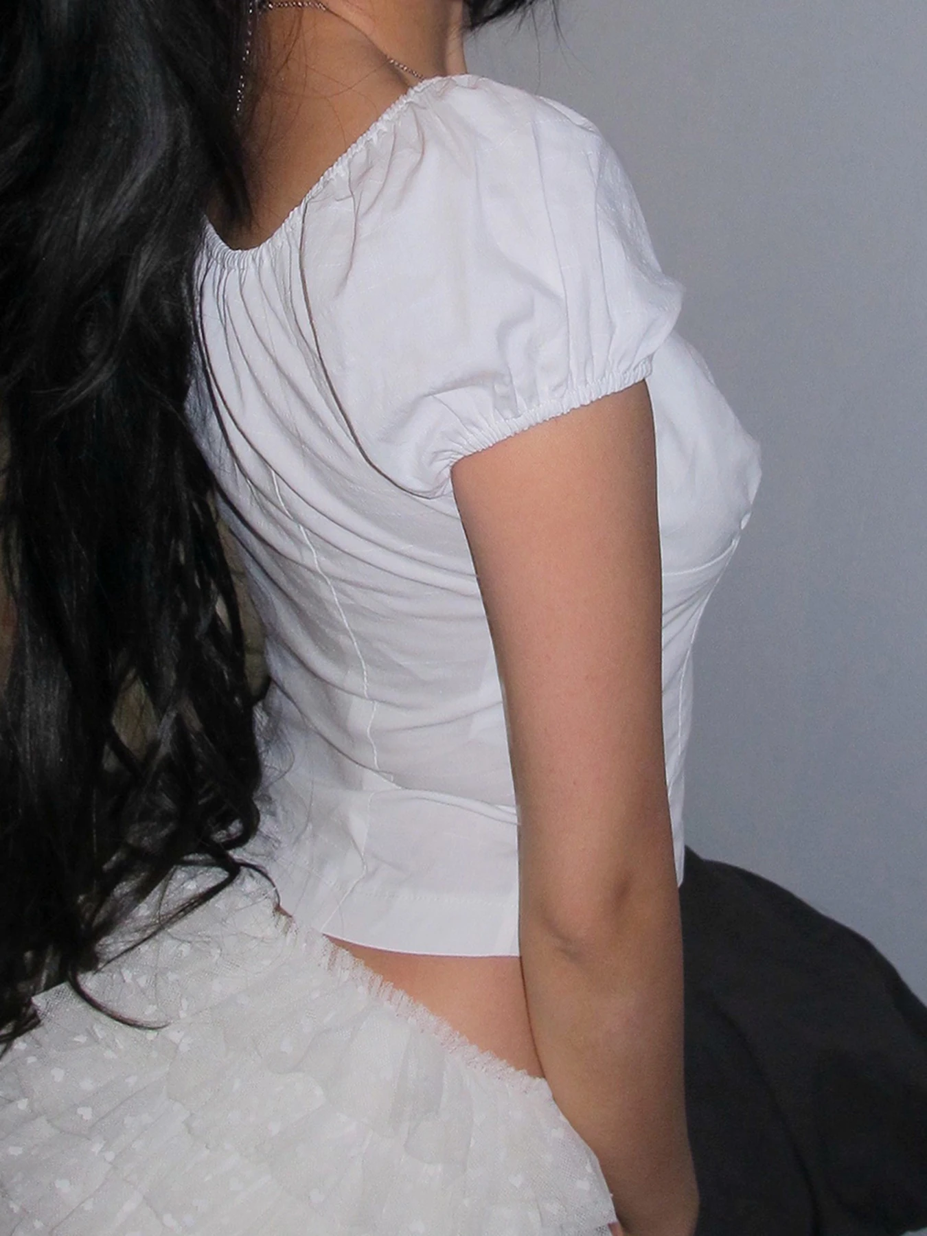 Cyflymder  French Style Slim Solid Blouse Holiday Casual Deep V-Neck Short Puff Sleeve Shirts Women 2025 Summer Fashion Streetwear
