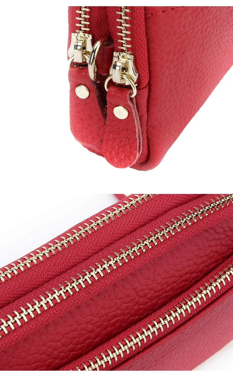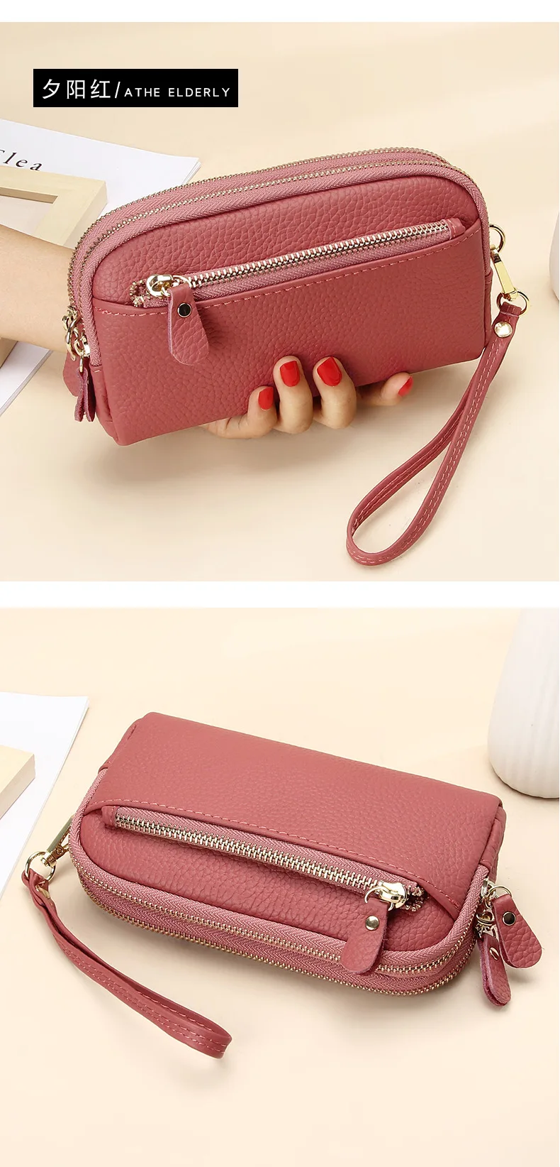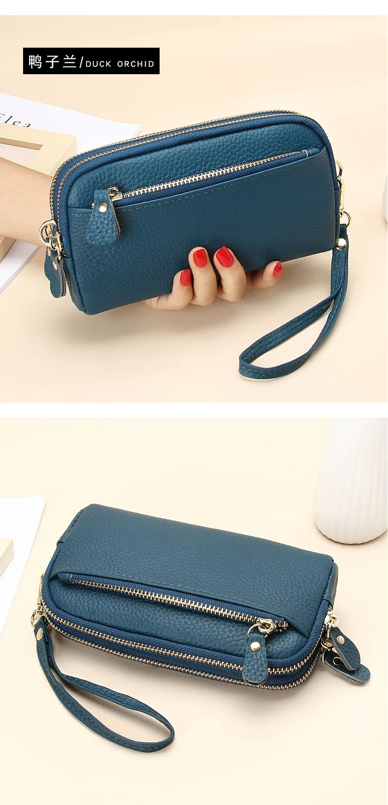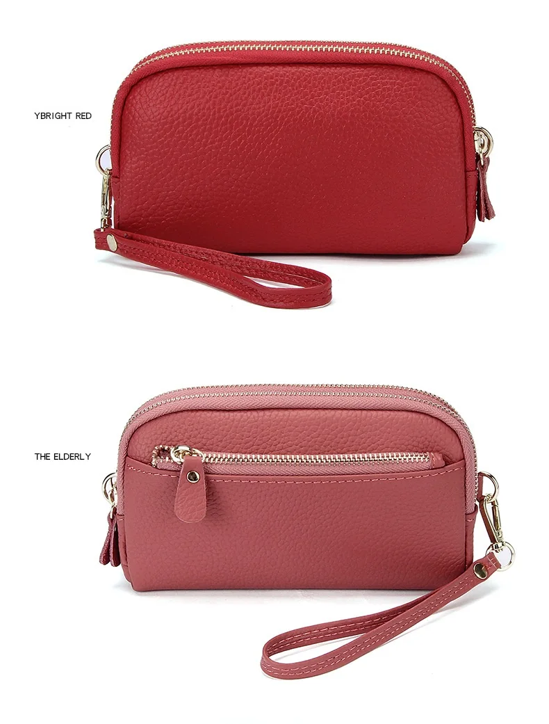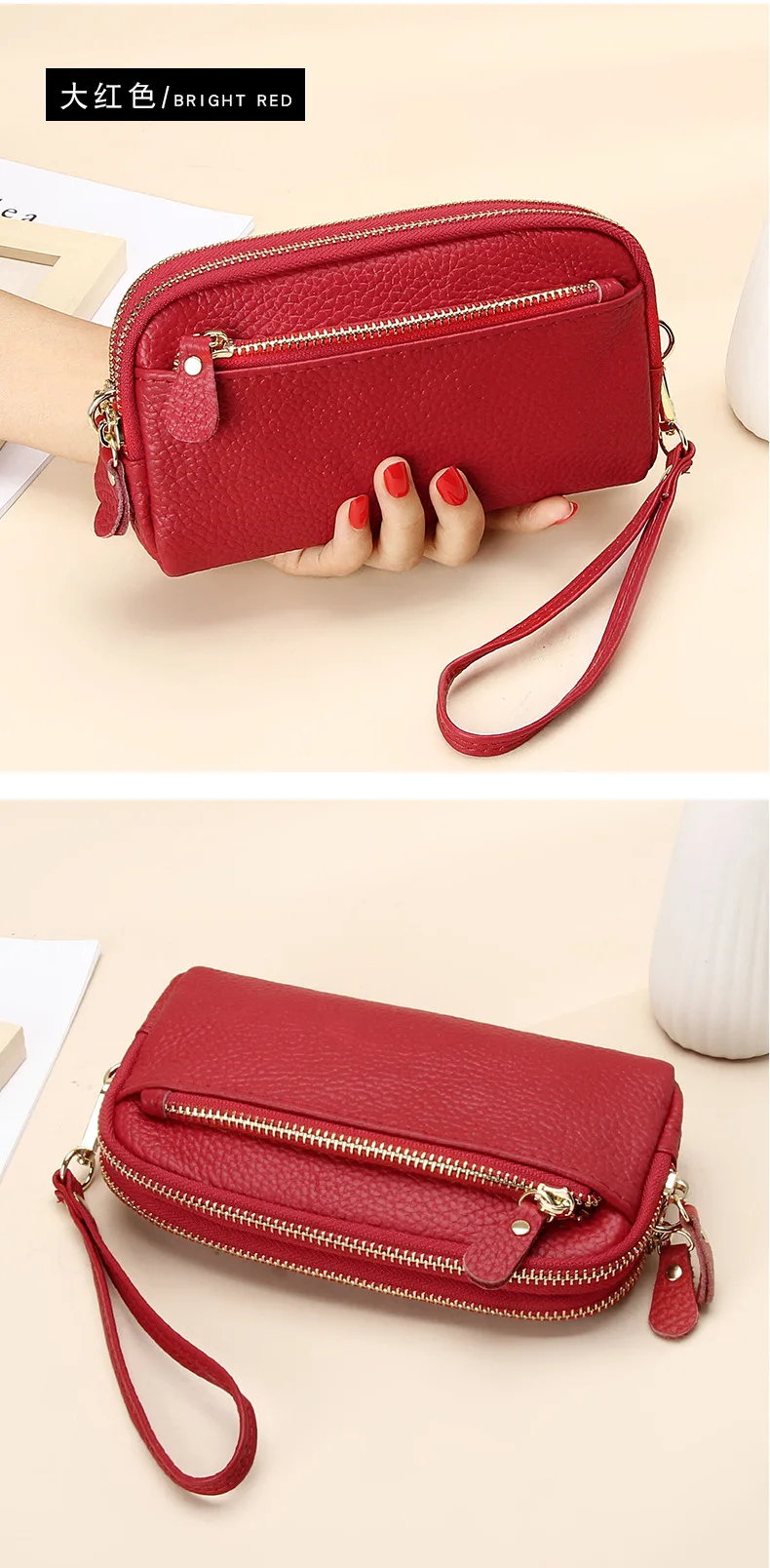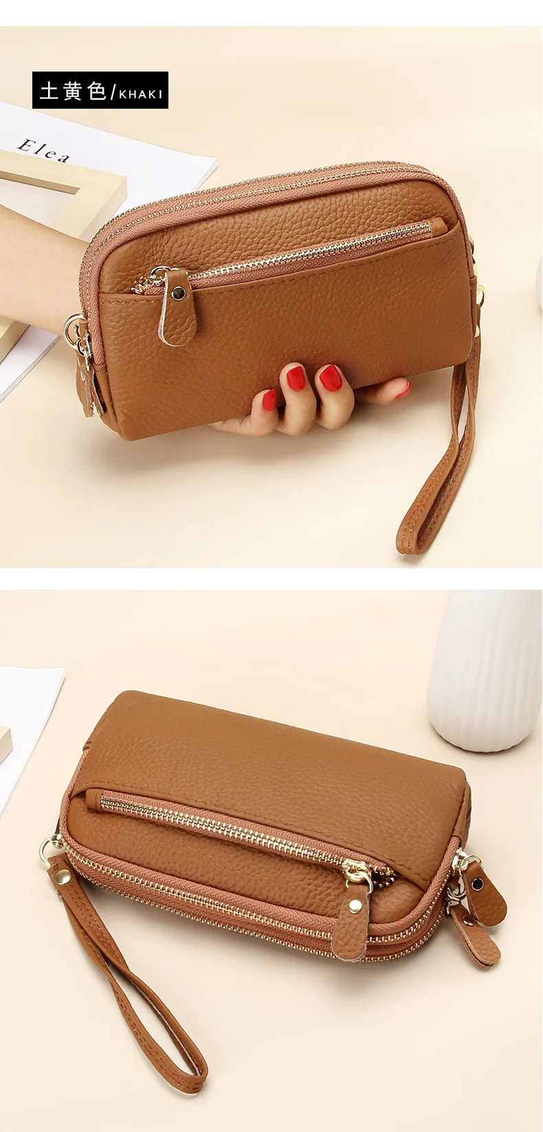 Cyflymder Genuine Leather Women Double Zip Wallet new Ladies Clutch Purse Cowhide Wristlet Bag Coin Purse Fashion Mobile Phone Bags