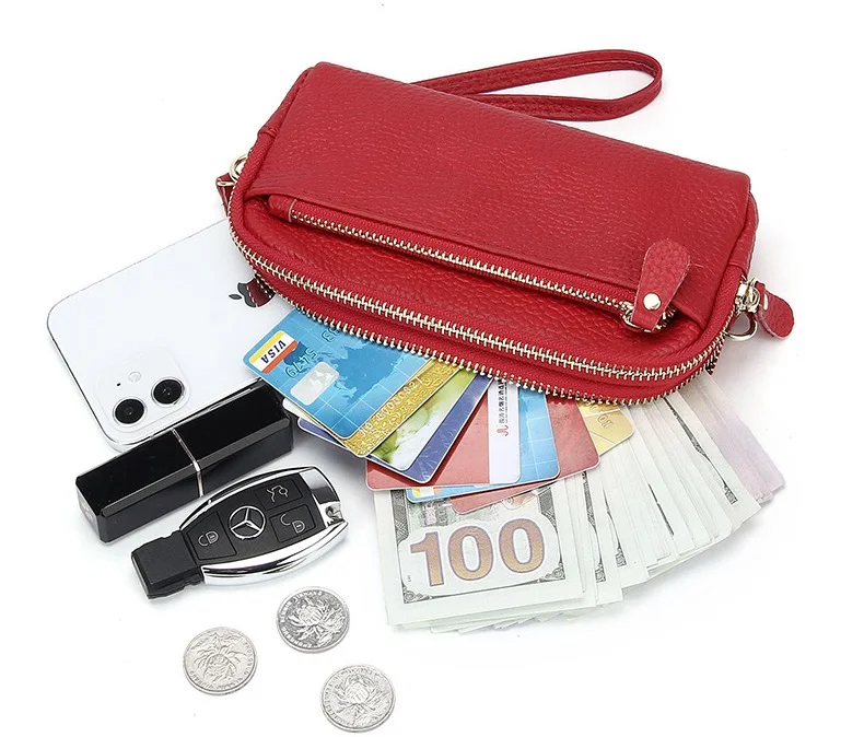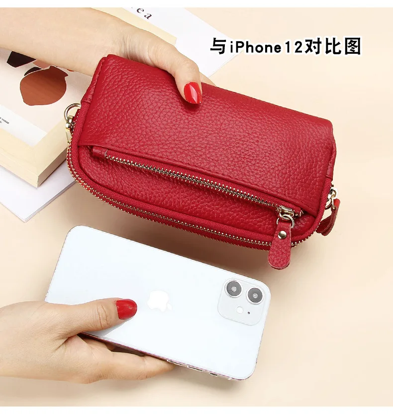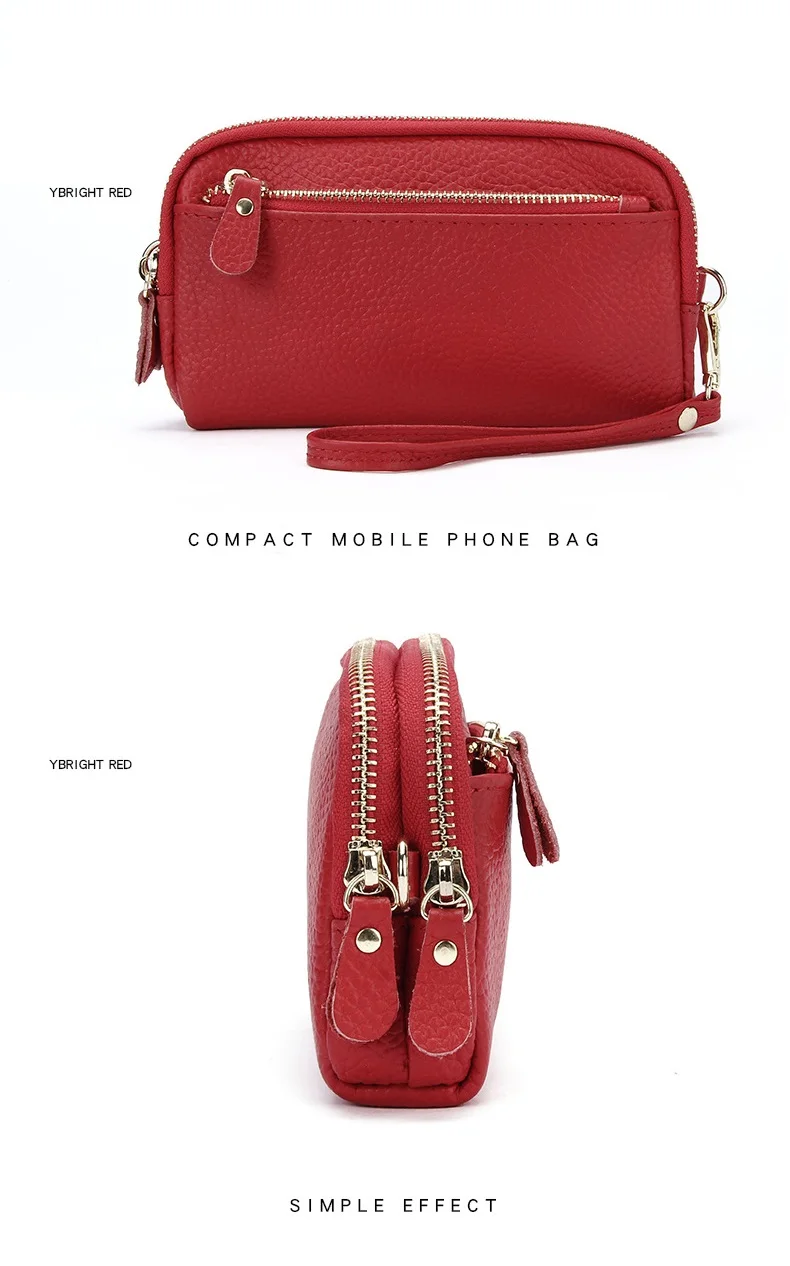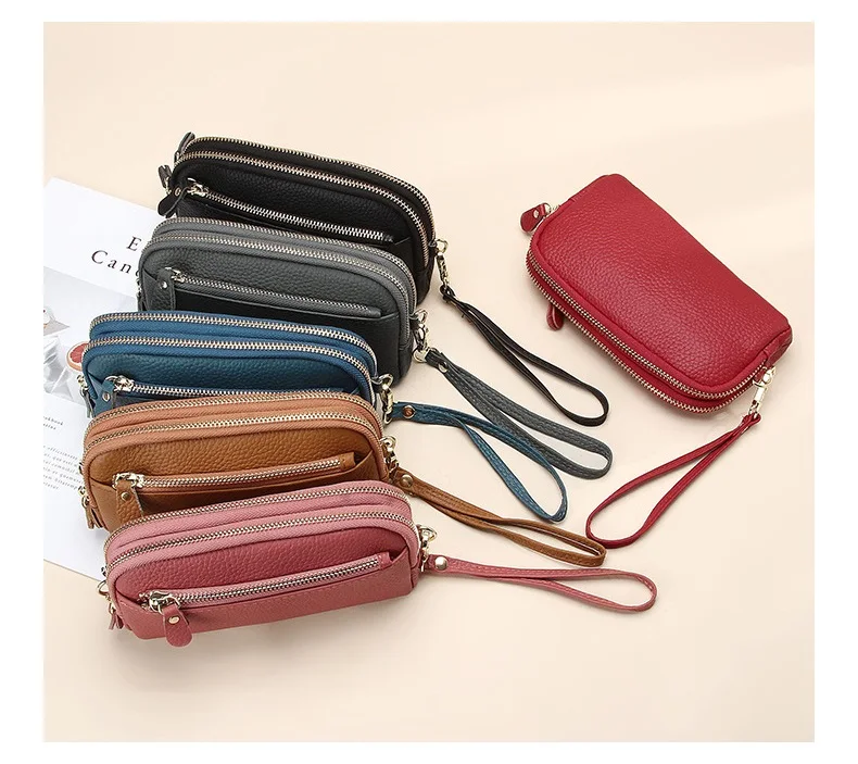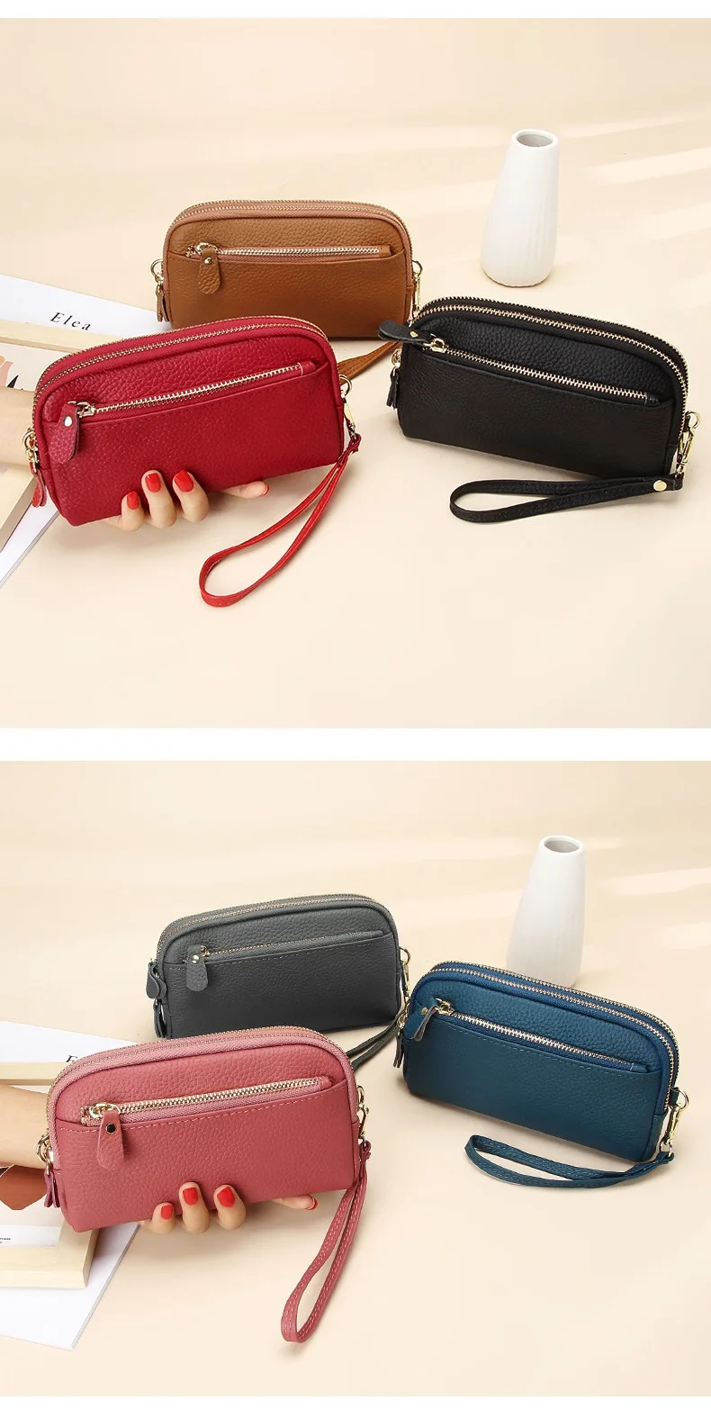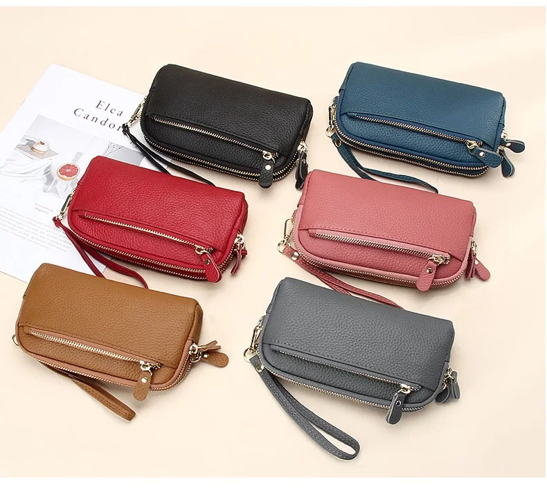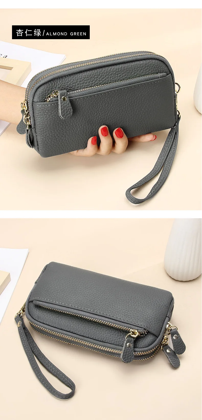 Cyflymder Genuine Leather Women Double Zip Wallet new Ladies Clutch Purse Cowhide Wristlet Bag Coin Purse Fashion Mobile Phone Bags
