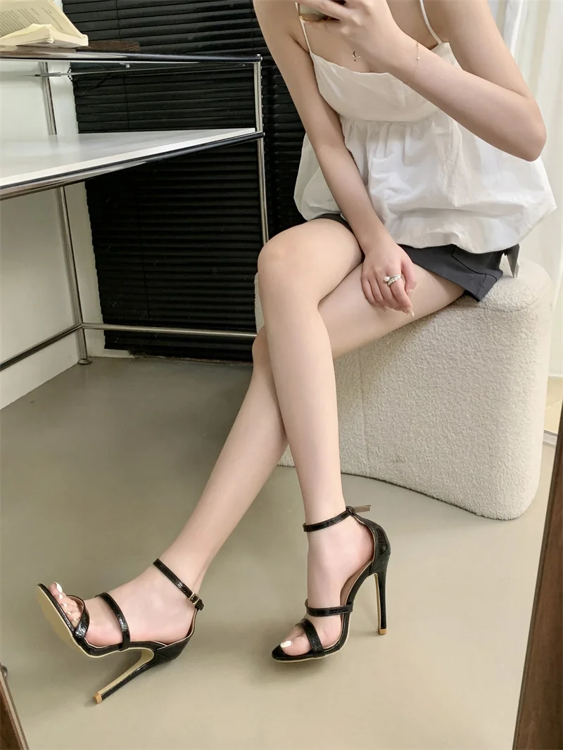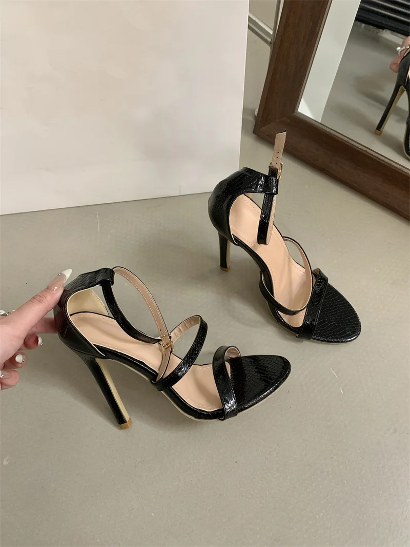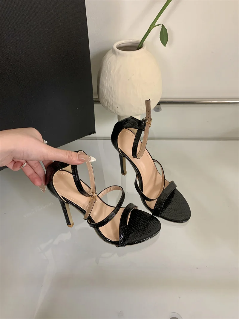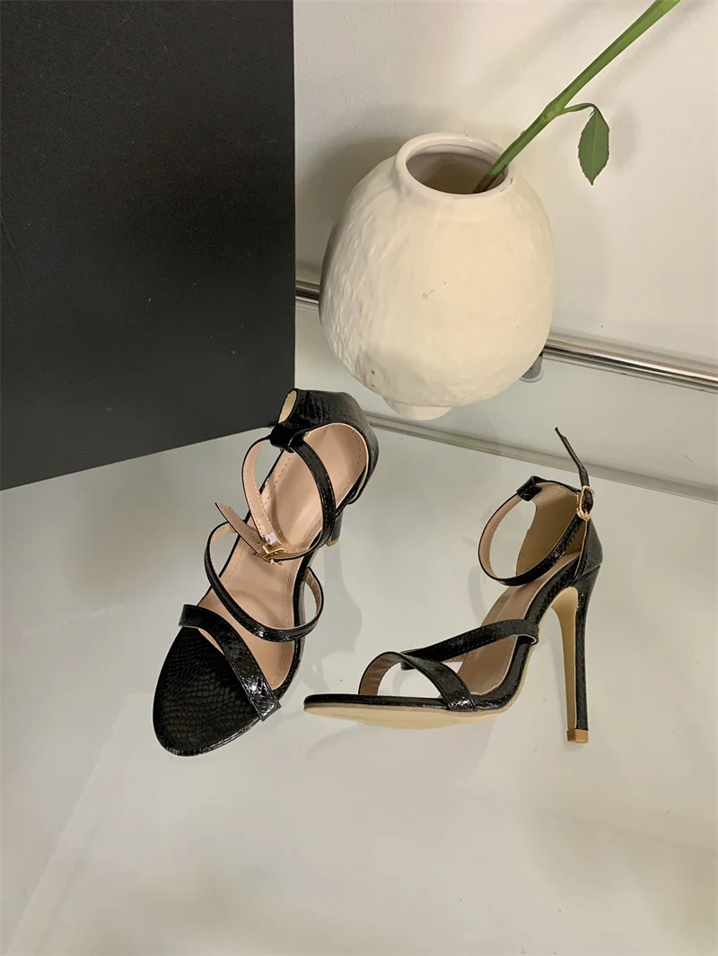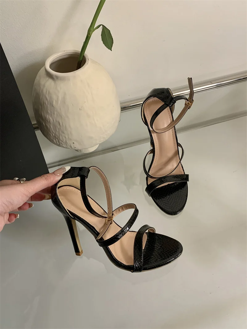 Cyflymder Gold Snake Print Leather Ankle Strap Sandals Women Summer Fashion Open Toe Gladiator High Heels Party Dress Shoes Size 42