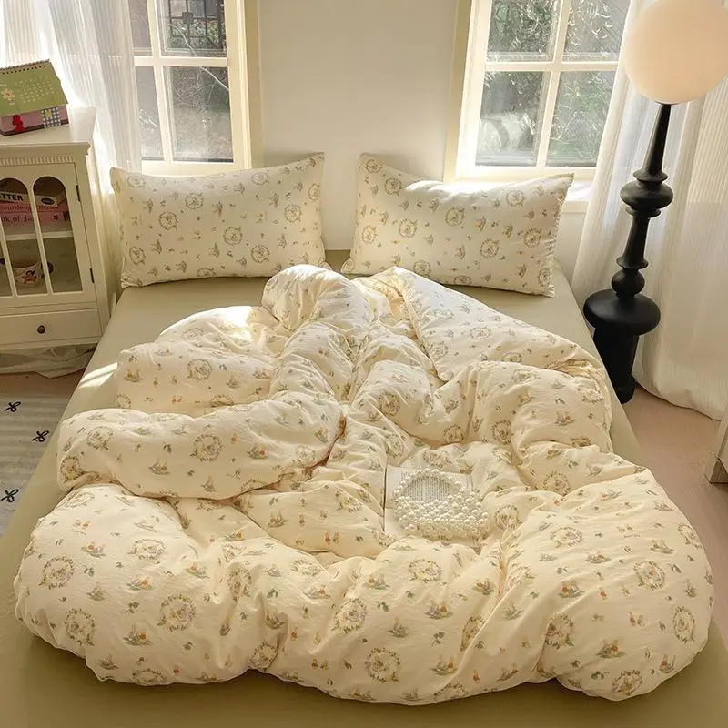 Cyflymder Grade-A Double-Layer Yarn Pure Cotton Bedding Set Single Double High-Quality Bedsheet Kit Skin Friendly Ultra Soft Quilt Set