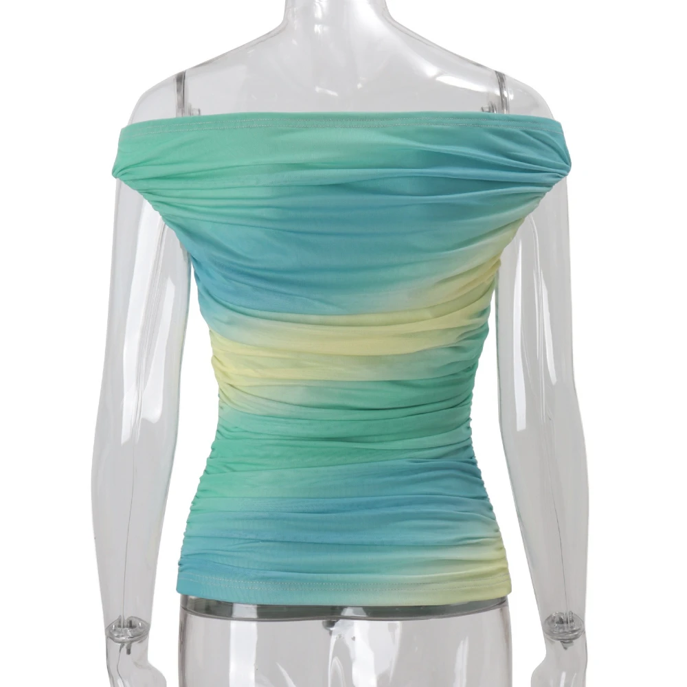 Cyflymder Gradient Color Slimming Vest for Women Slash Neck Short Sleee Backless Fashionable Sexy Top Female Summer New Style