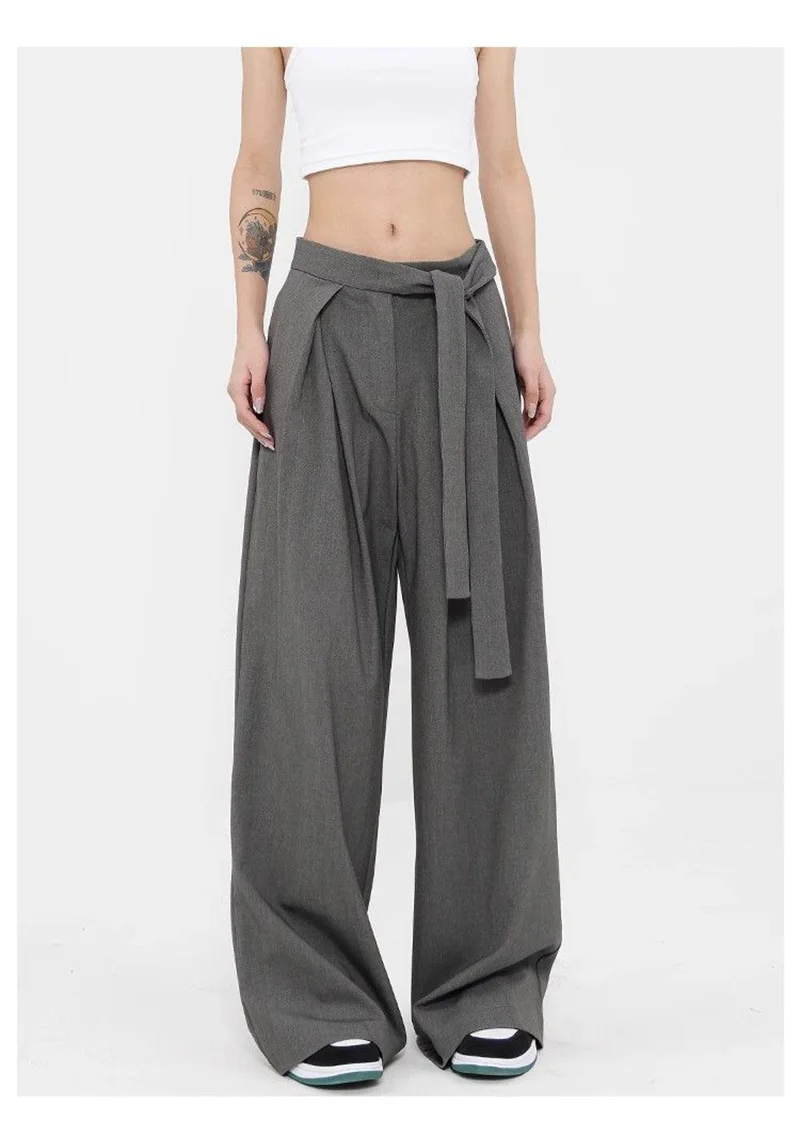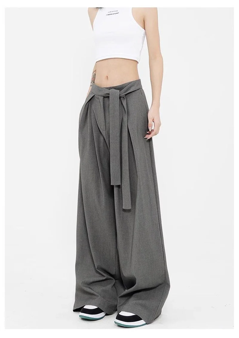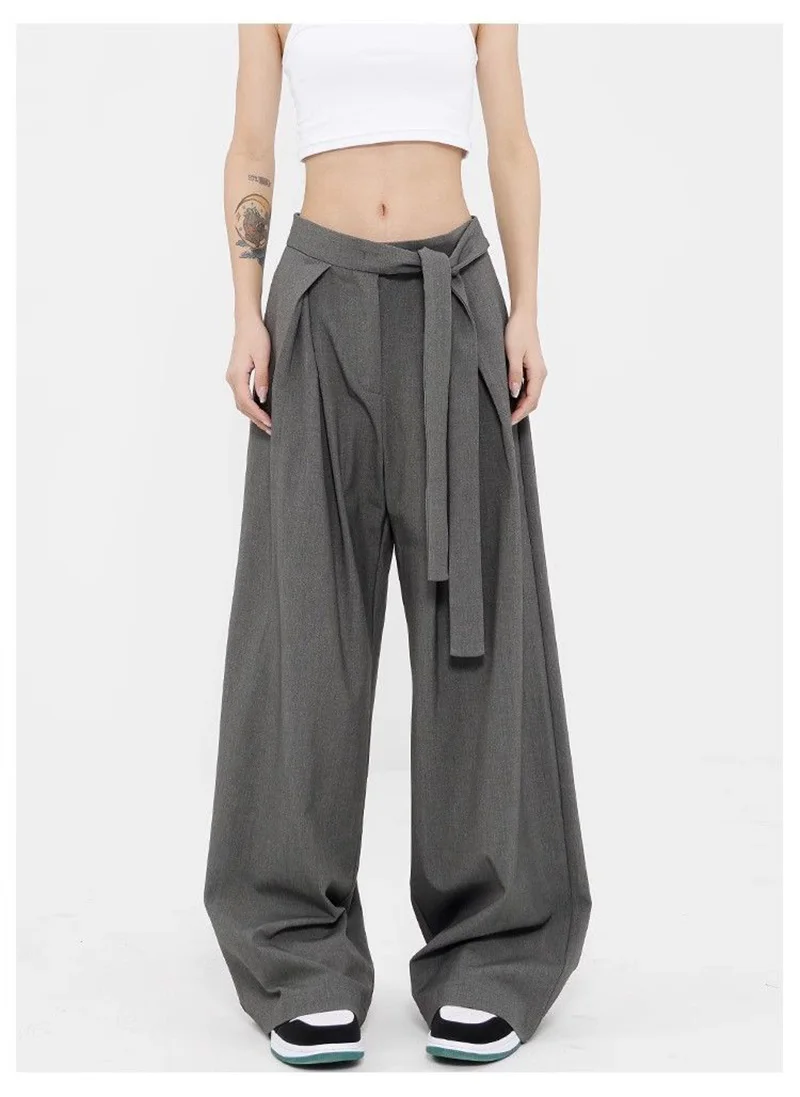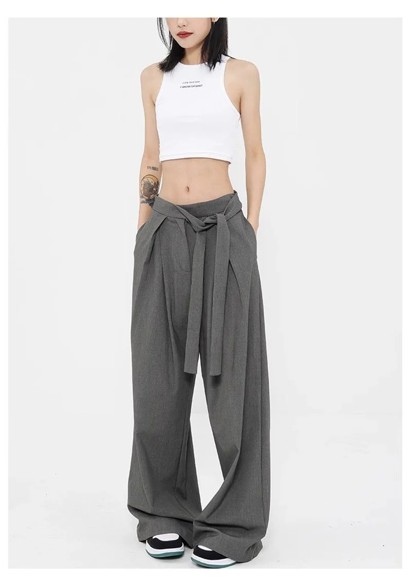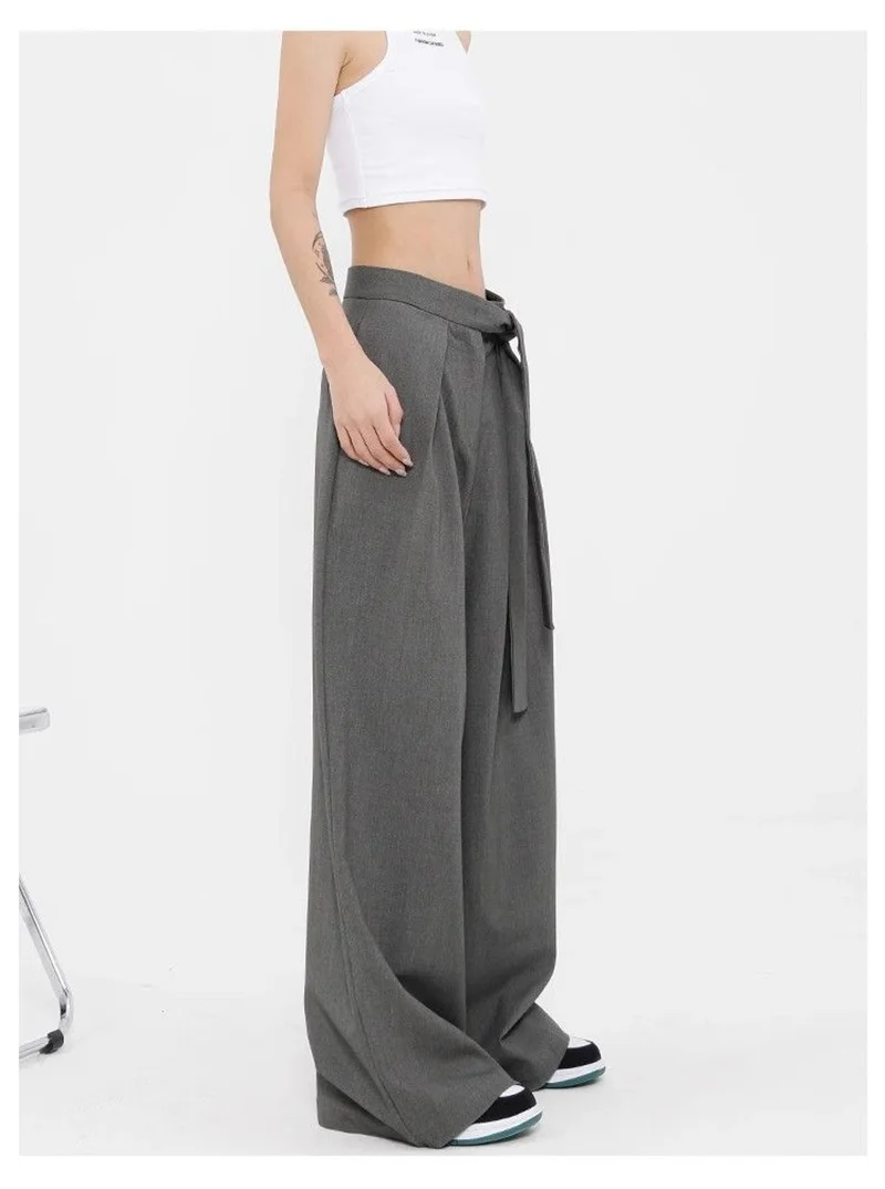 Cyflymder Gray Suit Wide Leg Pants Women Vintage Y2K High Waist Lace Up Trousers Casual Loose Design Fall Streetwear Retro Korean Pant New