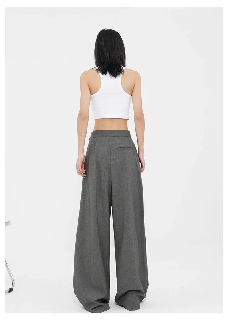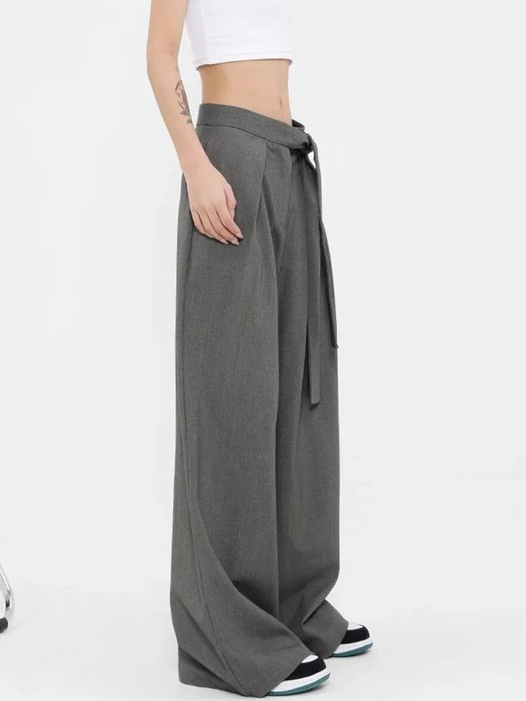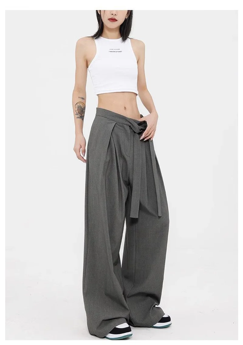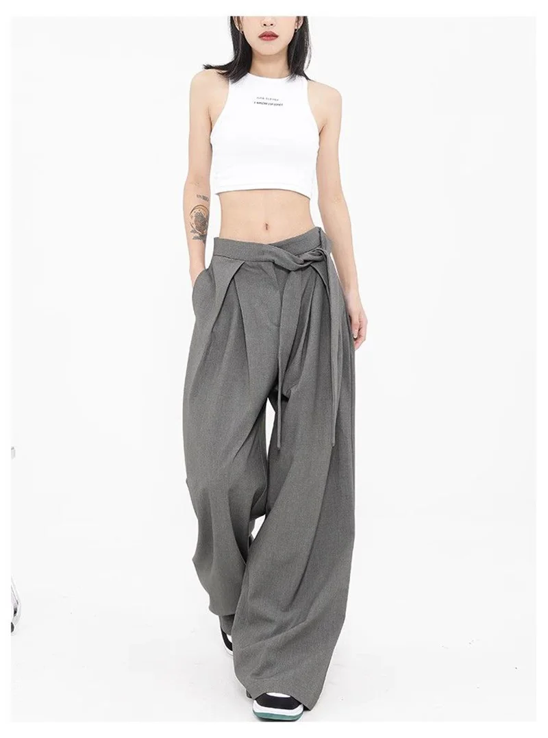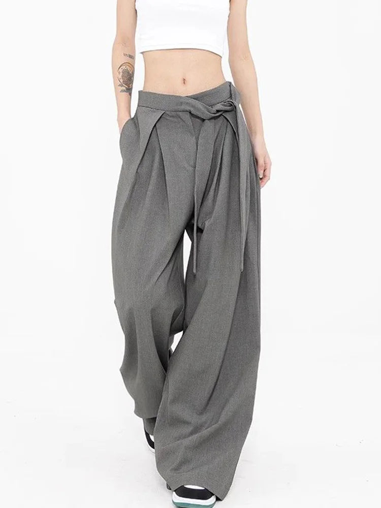 Cyflymder Gray Suit Wide Leg Pants Women Vintage Y2K High Waist Lace Up Trousers Casual Loose Design Fall Streetwear Retro Korean Pant New