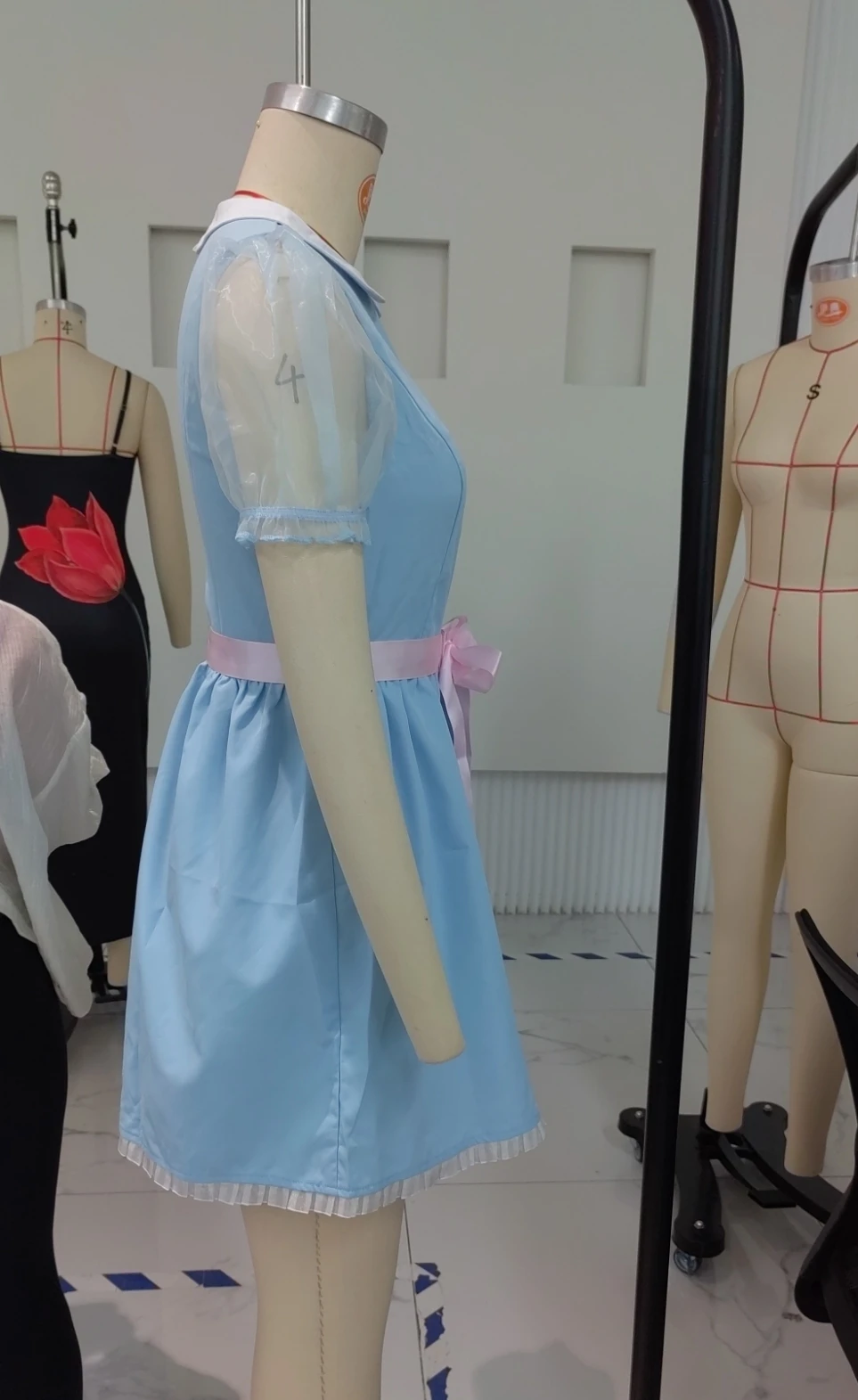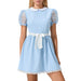 Cyflymder Halloween Women Summer Mini Sweet Dress Short Sheer Mesh Sleeve Doll Collar Dress with Belt Y2K Vintage Festival Clothes