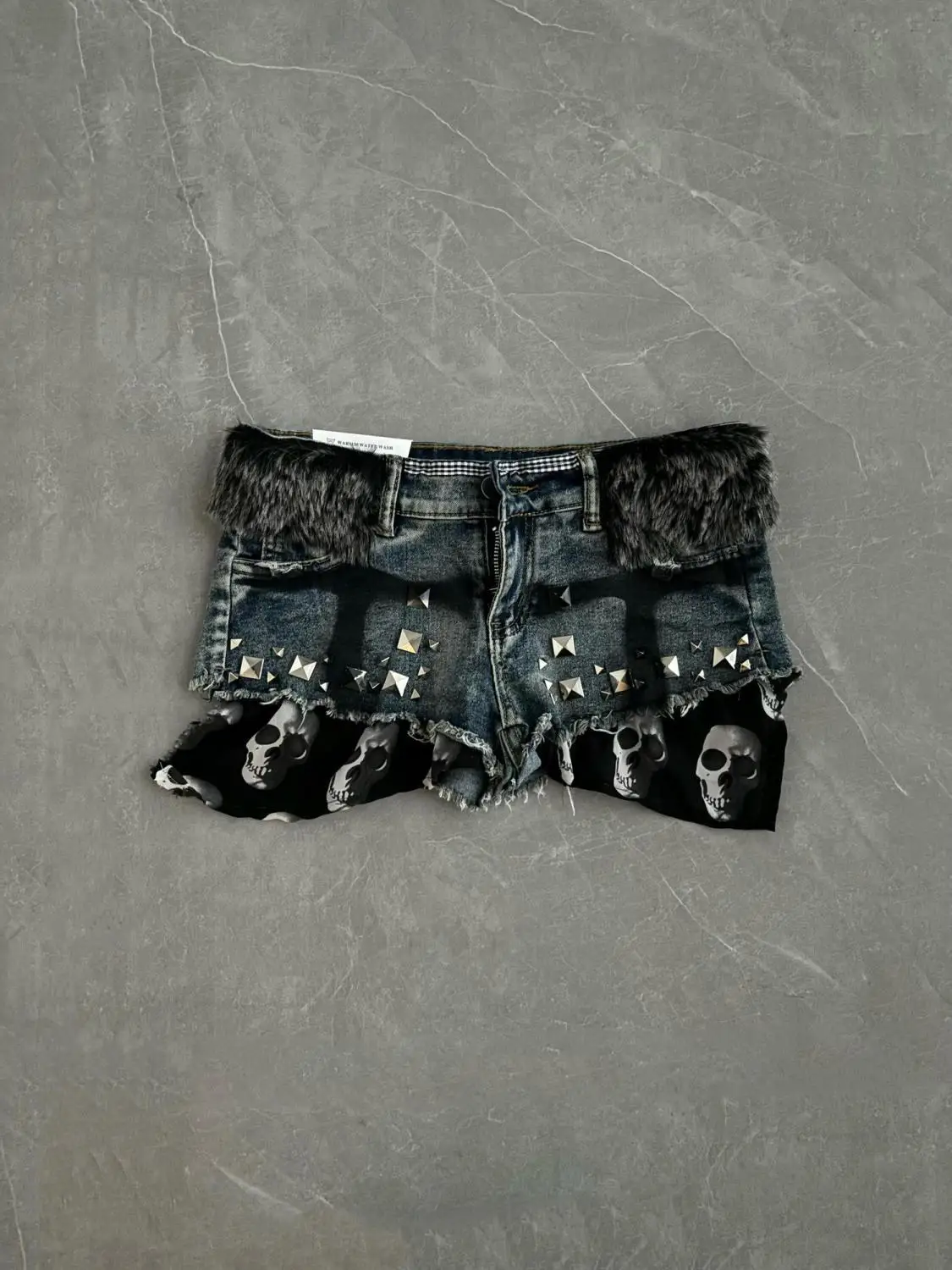 Cyflymder Harajuku Gothic Punk Heavy Rivet Nail Hot Shorts Y2k Americn Spliced Skull Print Women Shorts Americna All Mcath Lazy Short Pant