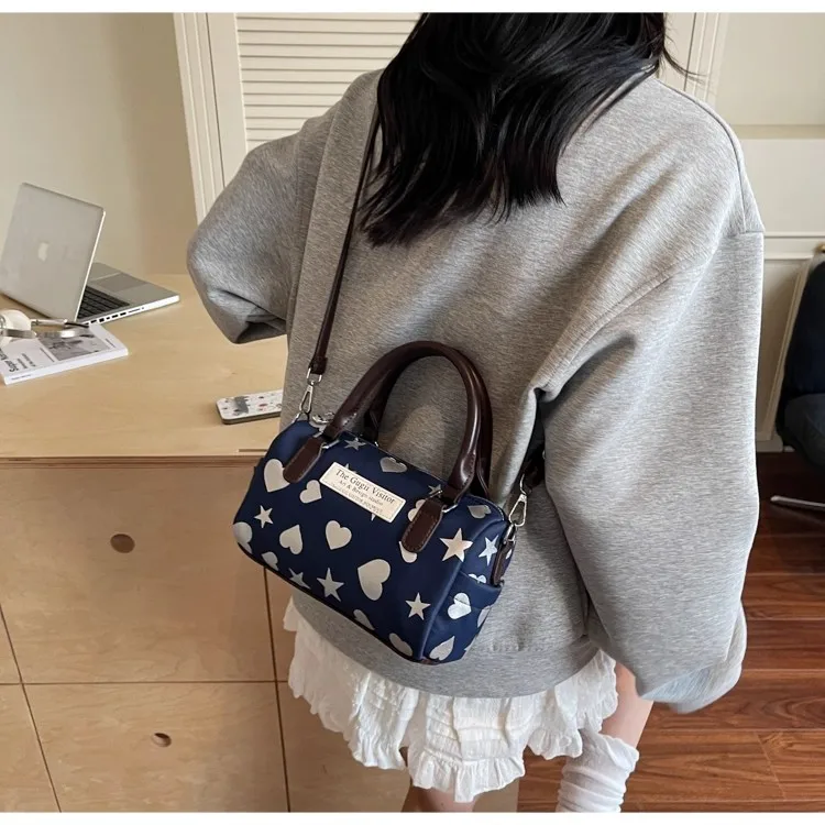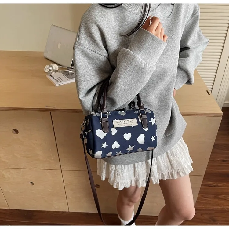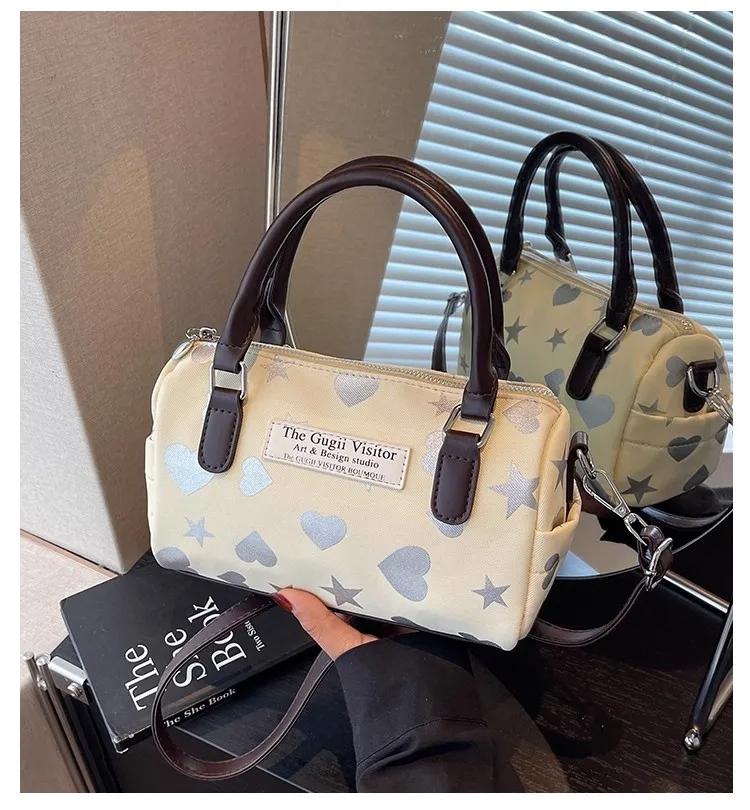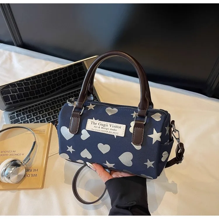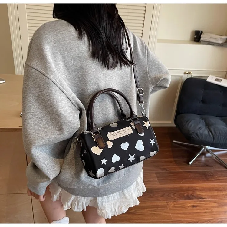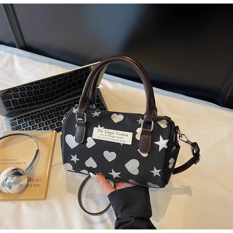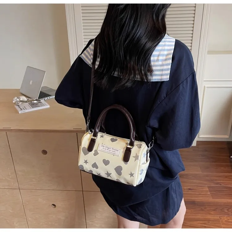 Cyflymder Harajuku Style Heart Star Print Canvas Bag Women Sweet Cute Boston Bag Ladies Versatile Fashion Trendy Handbag Y2k Aesthetic New