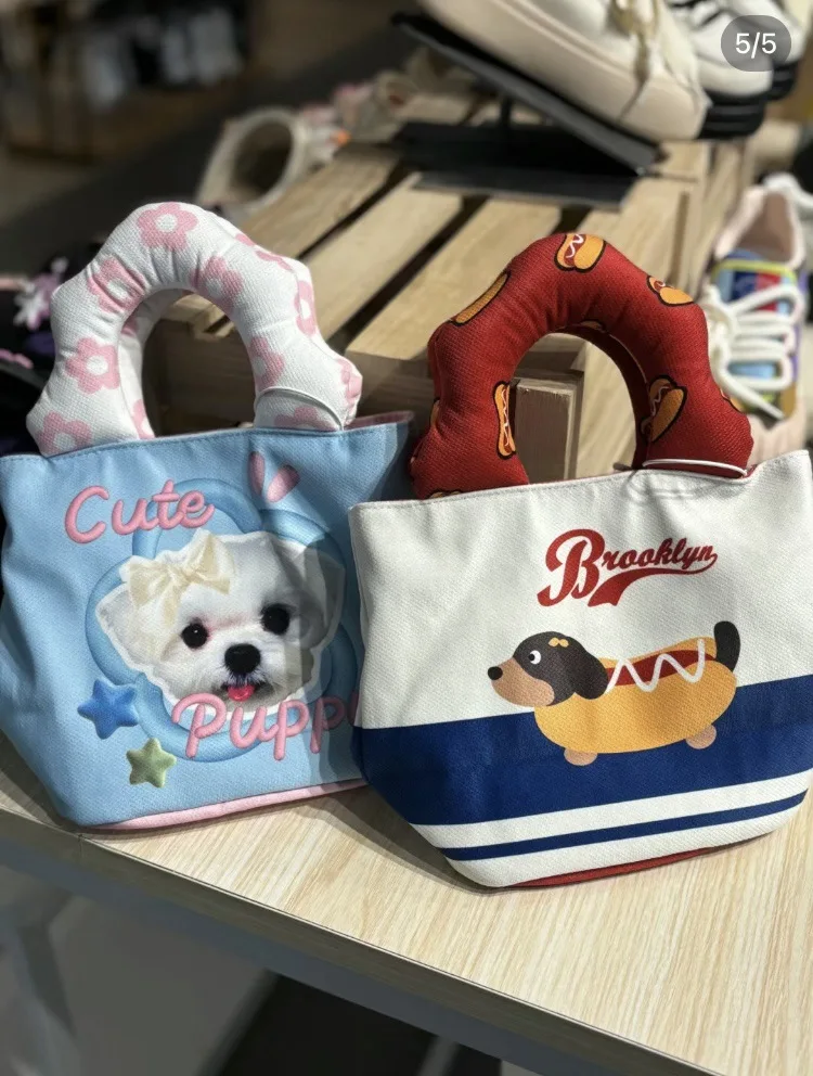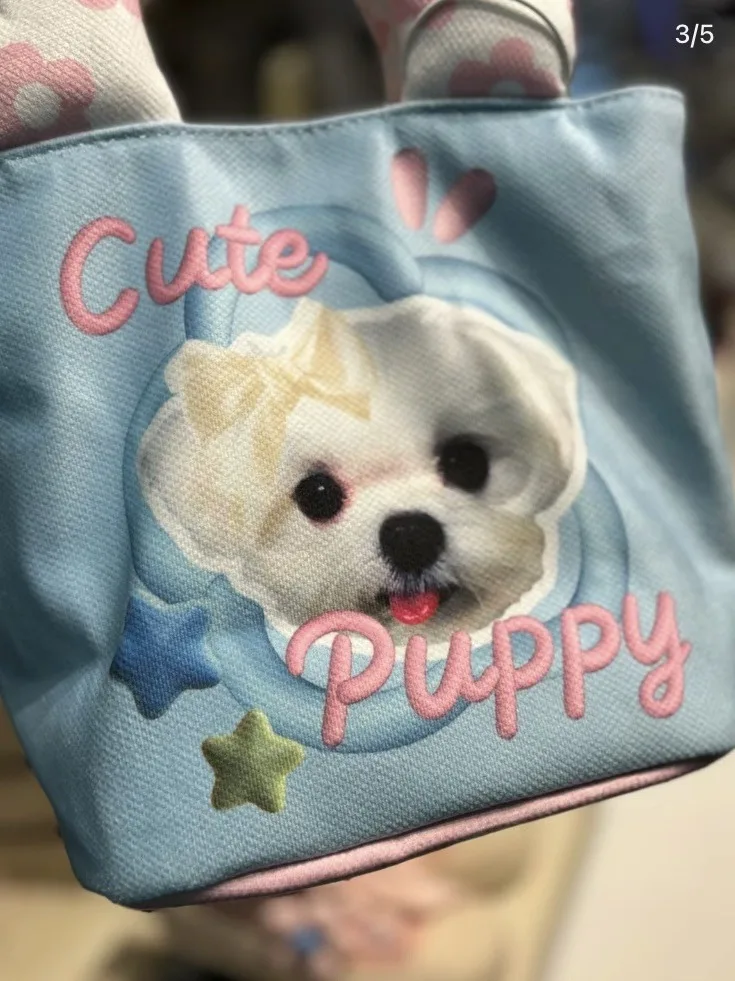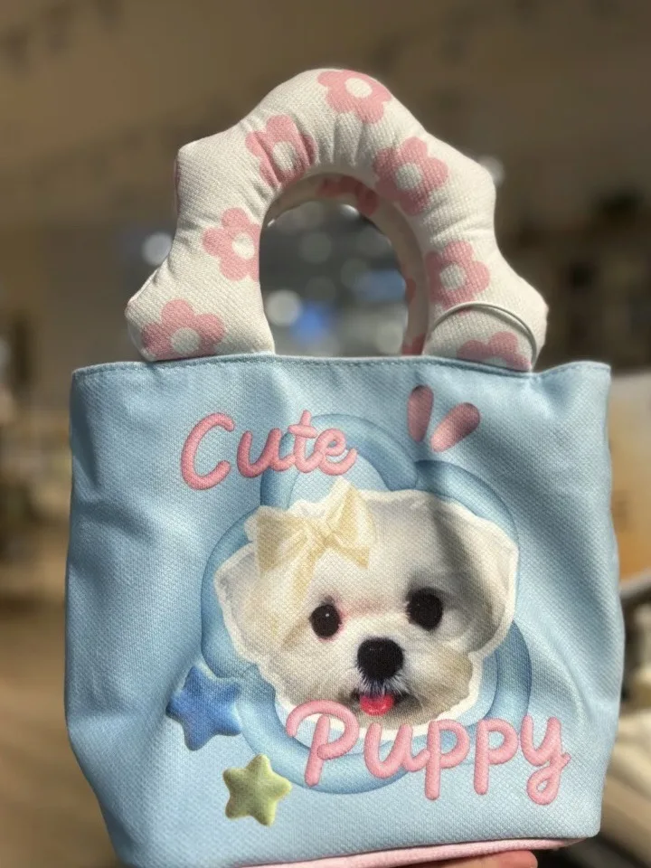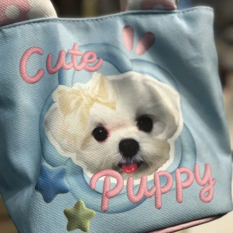 Cyflymder Harajuku Sweet Cute Blue Puppy Tote Bag Women Printed Canvas Handbag Ladies Compact Bucket Shoulder Bags Purse 2025 New