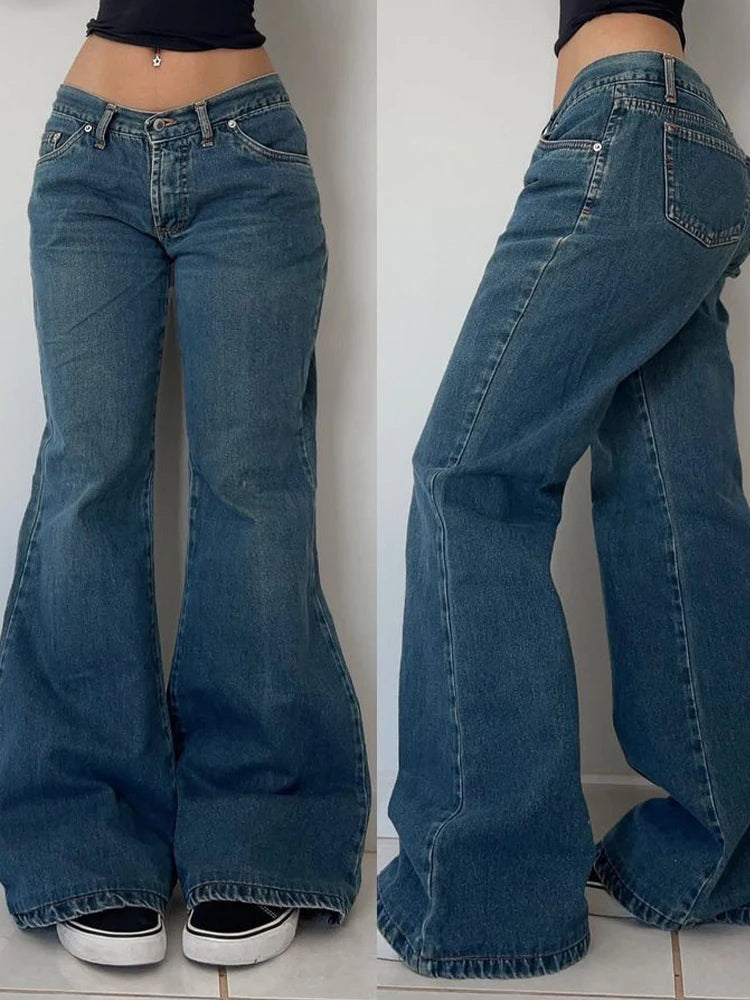 Cyflymder Harajuku women's jeans solid color fashionable distressed Y2K high street punk rock retro street chic daily casual flared jeans