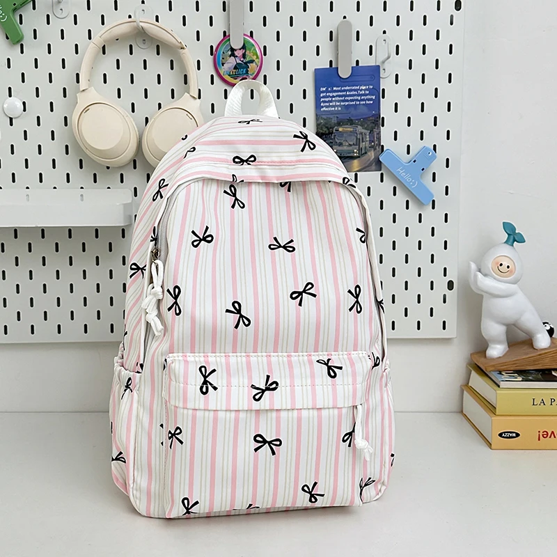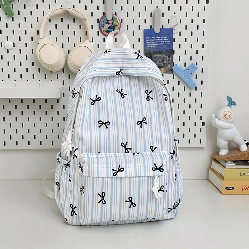 Cyflymder High-capacity Women Sweet Preppy Backpacks Japanese Y2k Aesthetic Fashion Students Backpack Kawaii Striped Bow Print Schoolbags