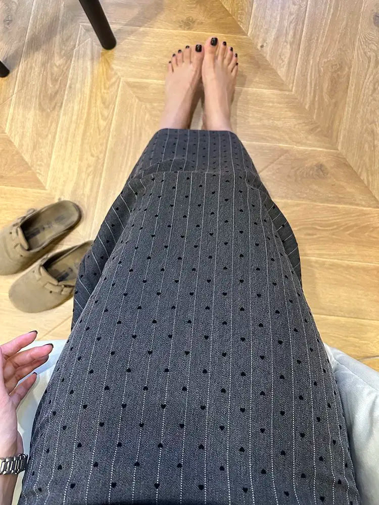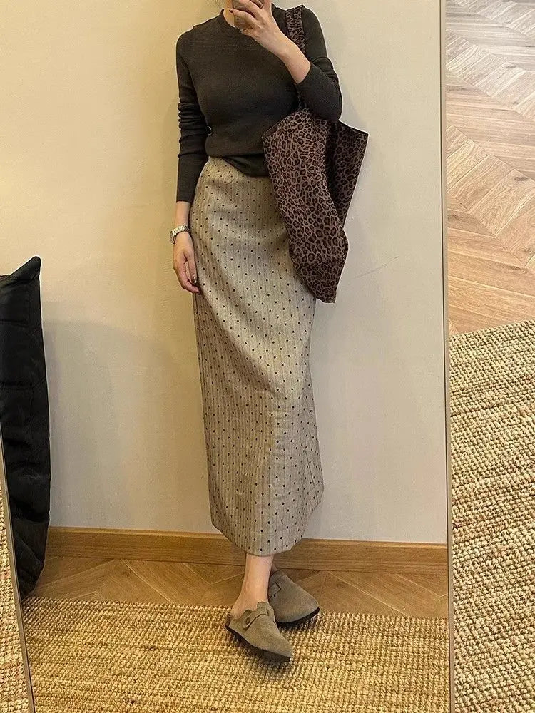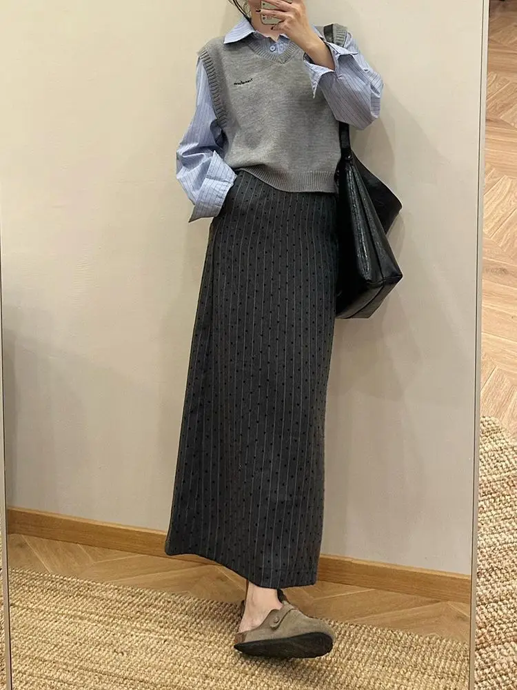 Cyflymder High End Temperament Korean Office Lady Long Skirts Y2k Aesthetic Polk Dot Striped Print Harajuku Jupe French Women Skirts
