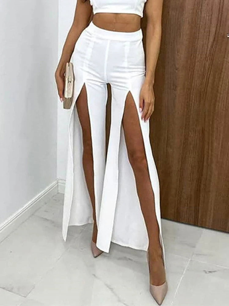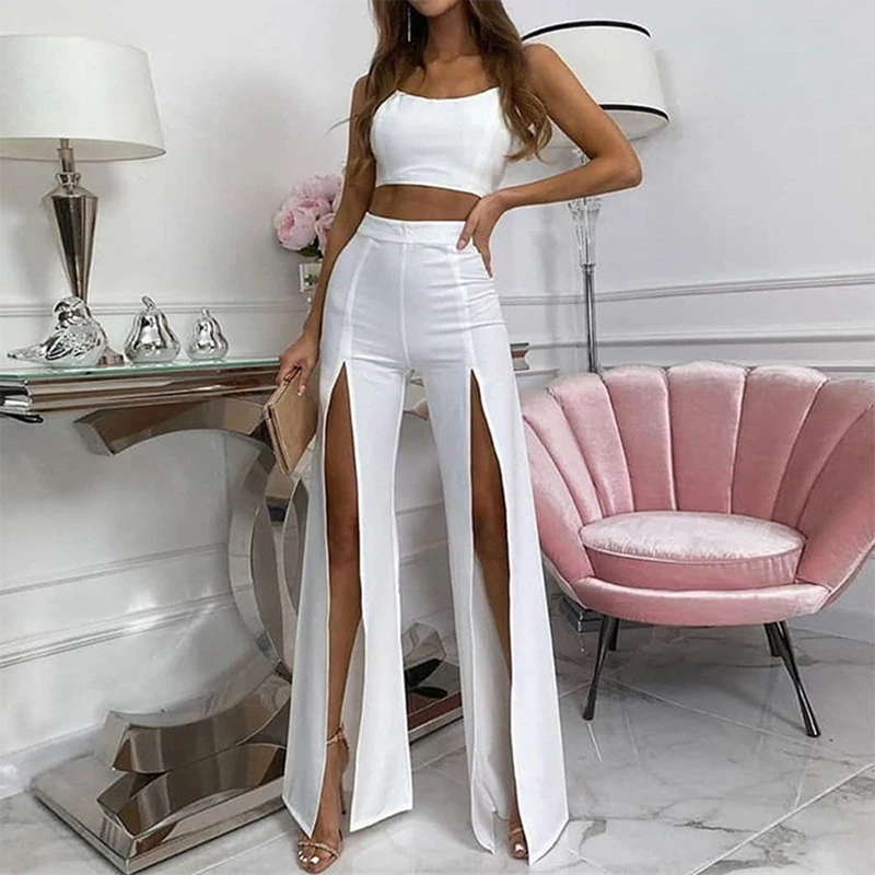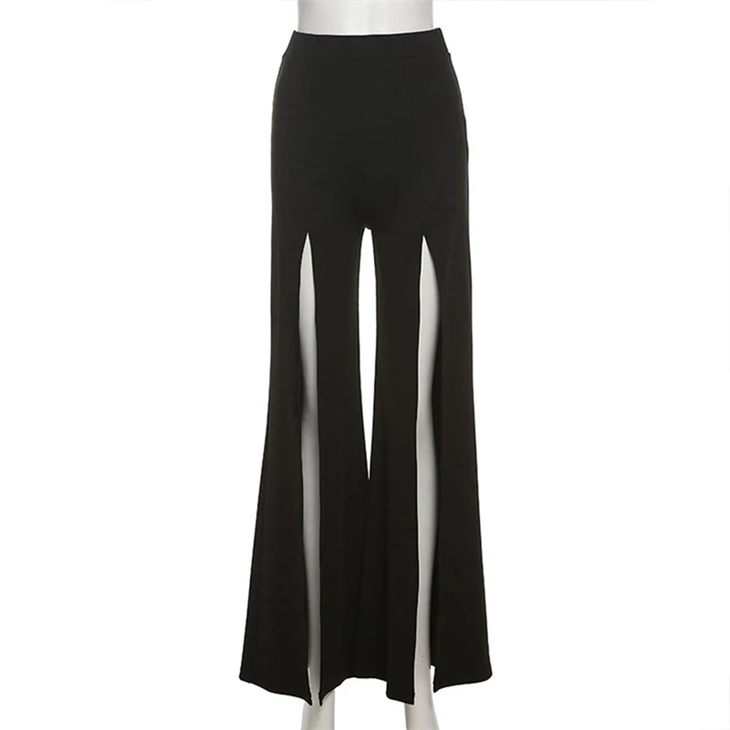 Cyflymder High Waist Both Leg Split Women Hot Sexy Casual Slimming Straight Wide Legs Pants 2023 Autumn Club Party All-matching Pants