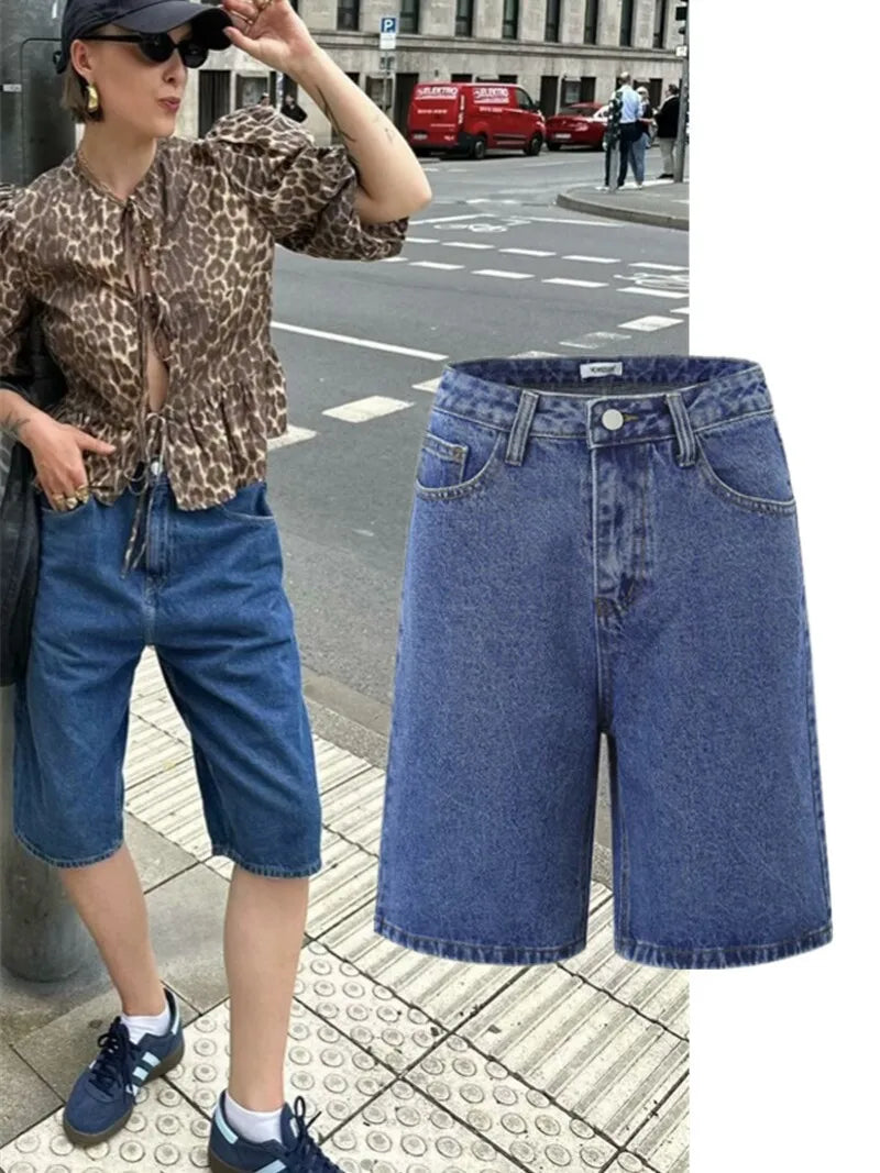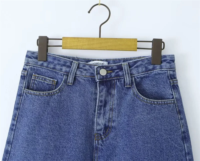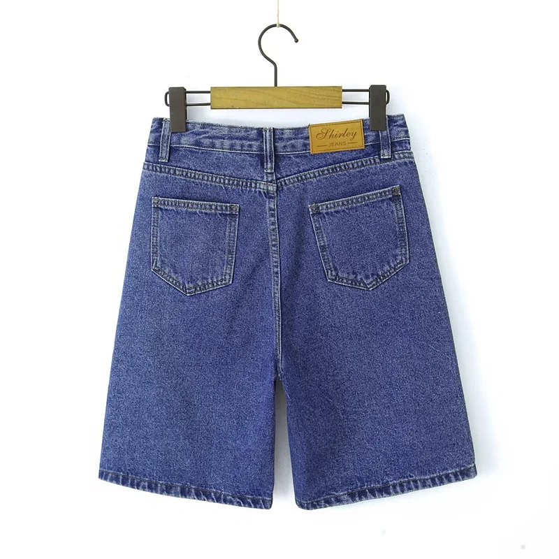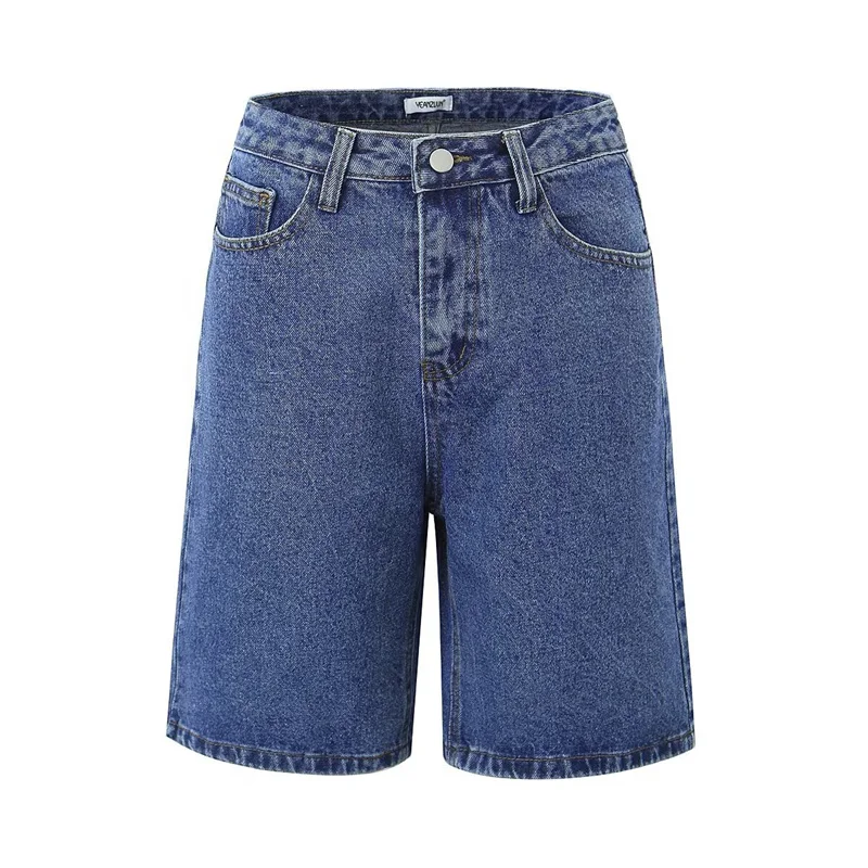 Cyflymder High Waist Straight Leg Blue Waed Denim orts High Quali Wide Leg Five orts American Retro Deep Blue Jeans orts