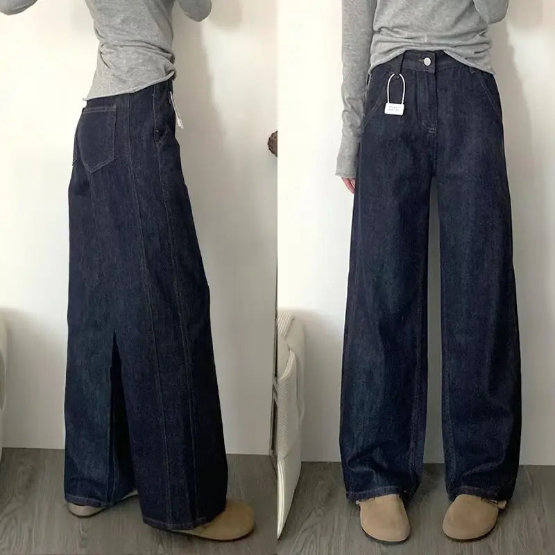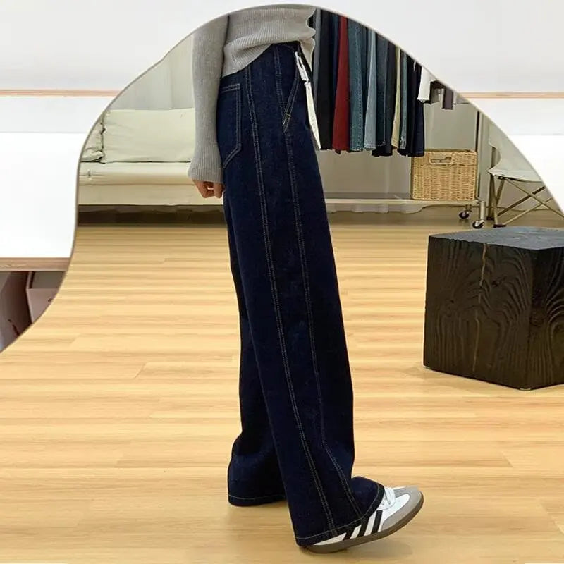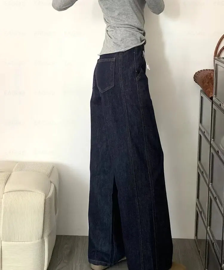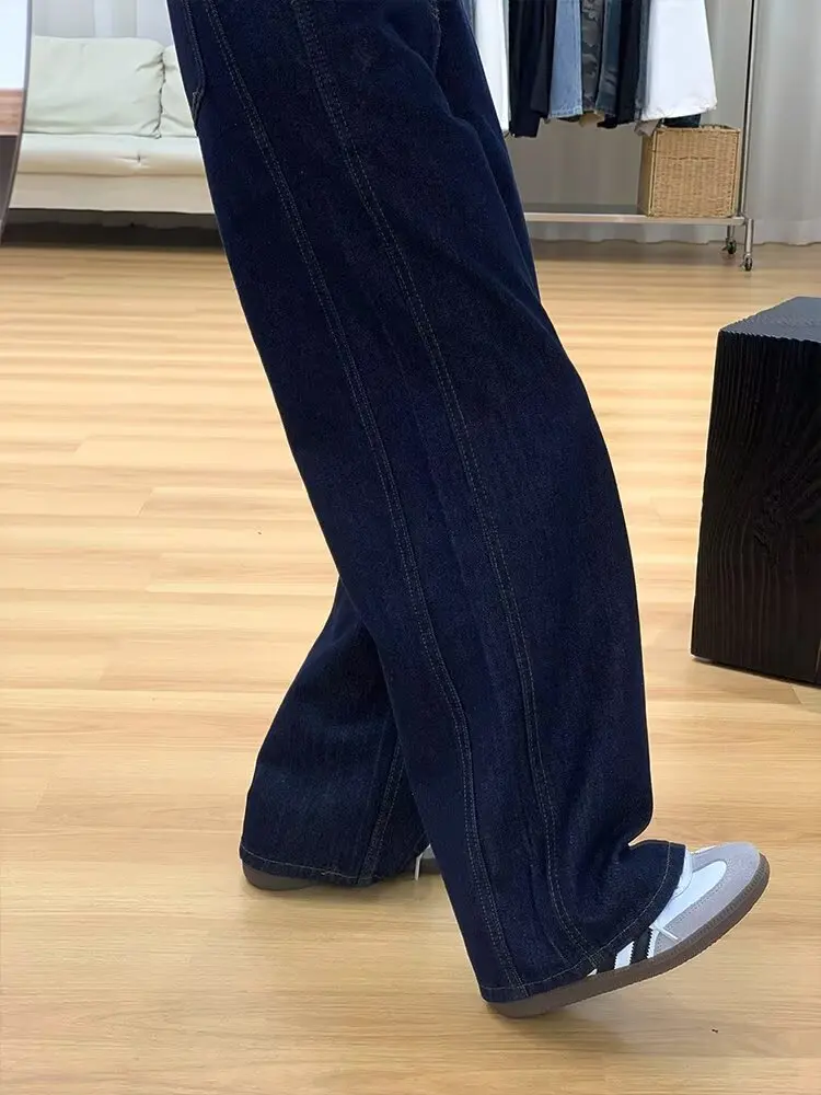 Cyflymder High Waisted Wide Leg Pants Women Deep Blue Jeans Loose Fit Slimming Straight Leg High Height Floor Length