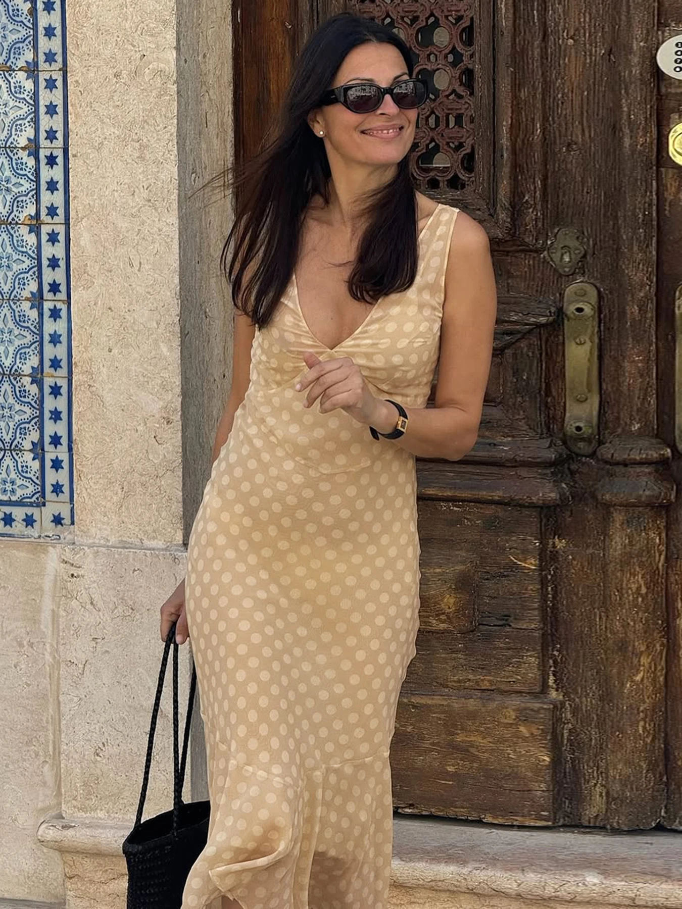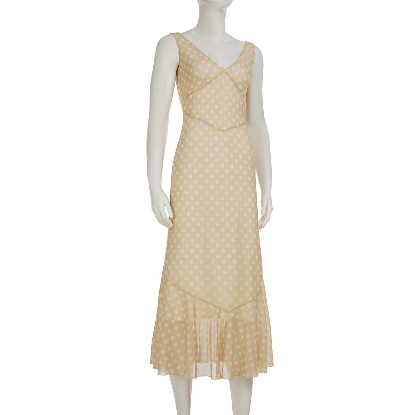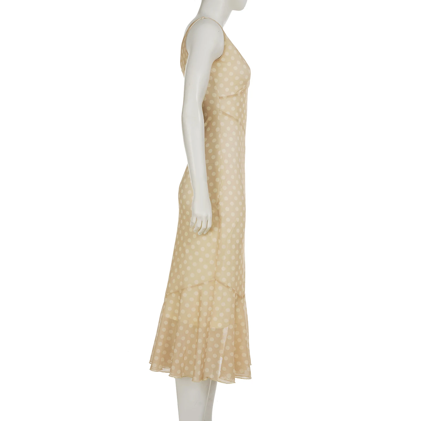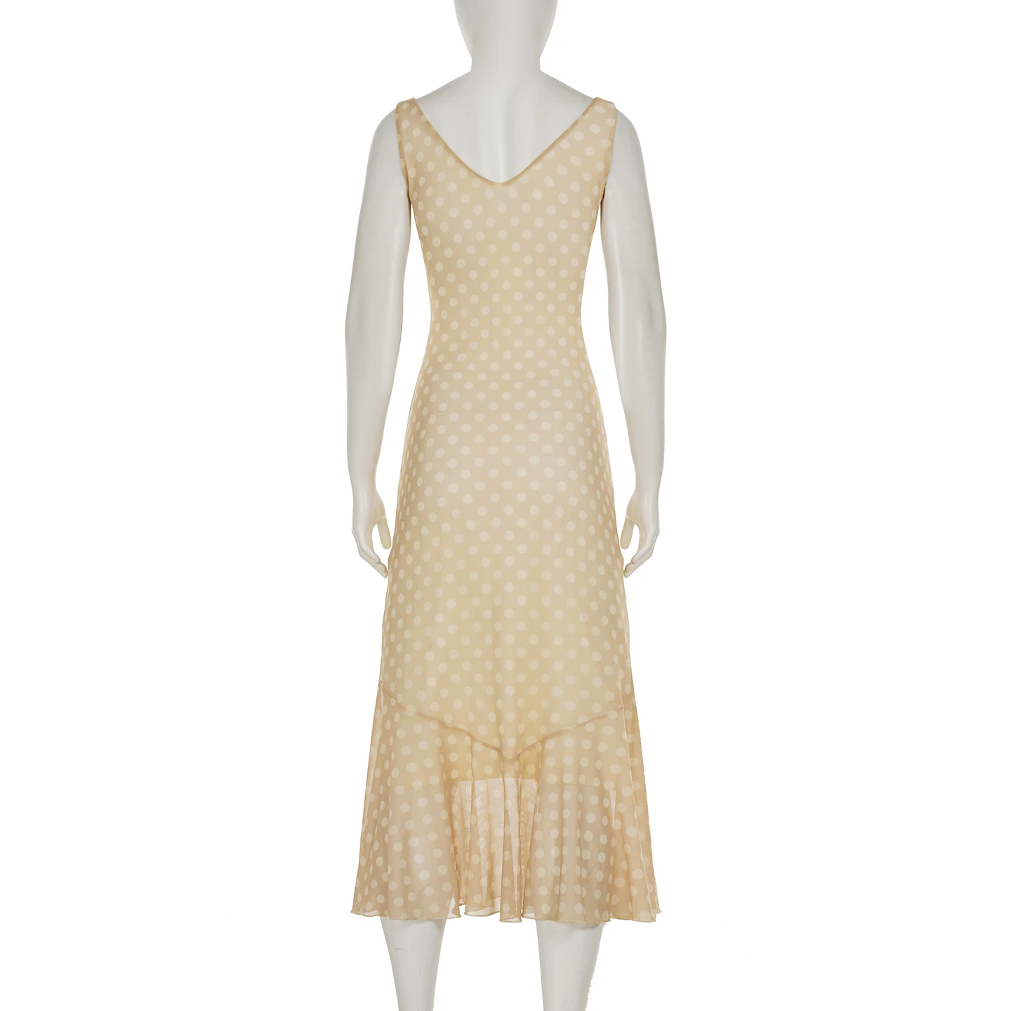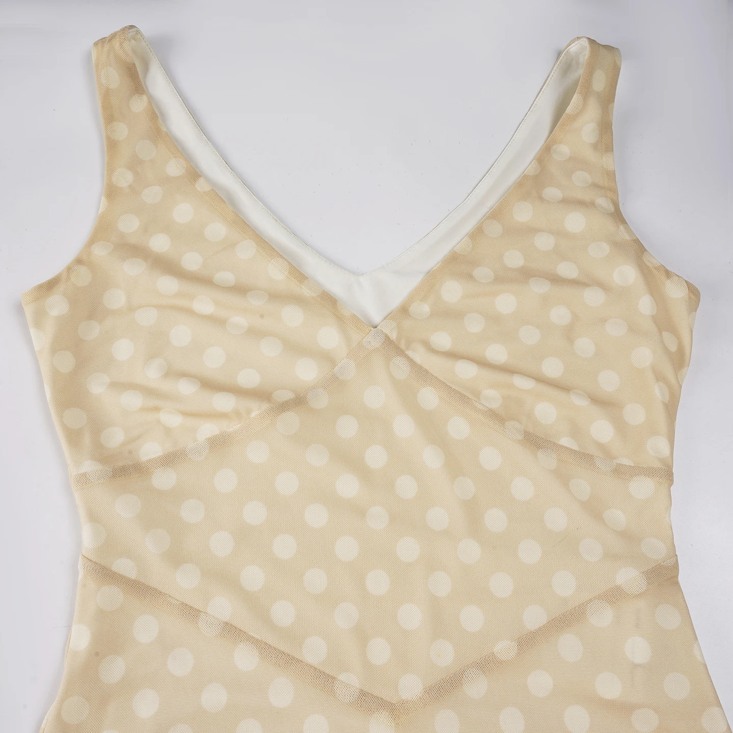 Cyflymder Holiday Dot Printed Plaid Mesh Bodycon Dress See Through Deep V-Neck Sleeveless Midi Dresses For Women Summer Fashion