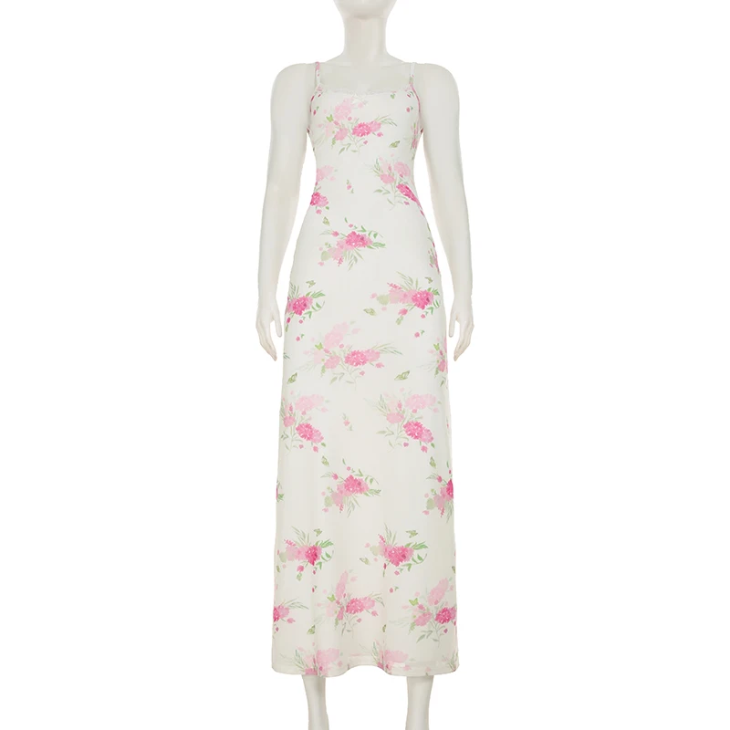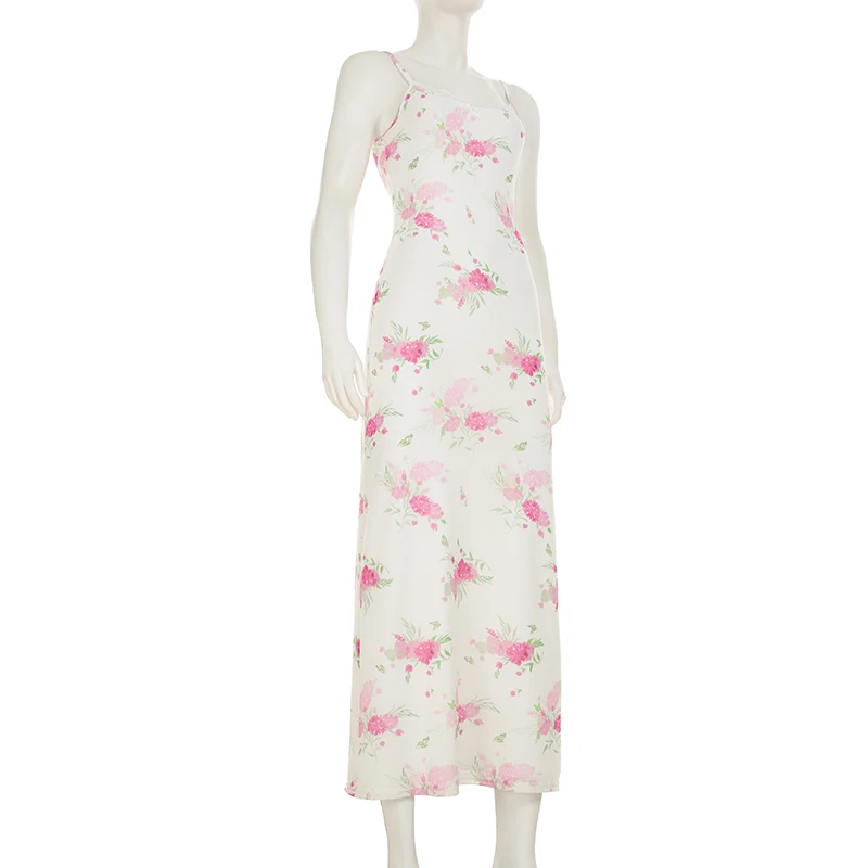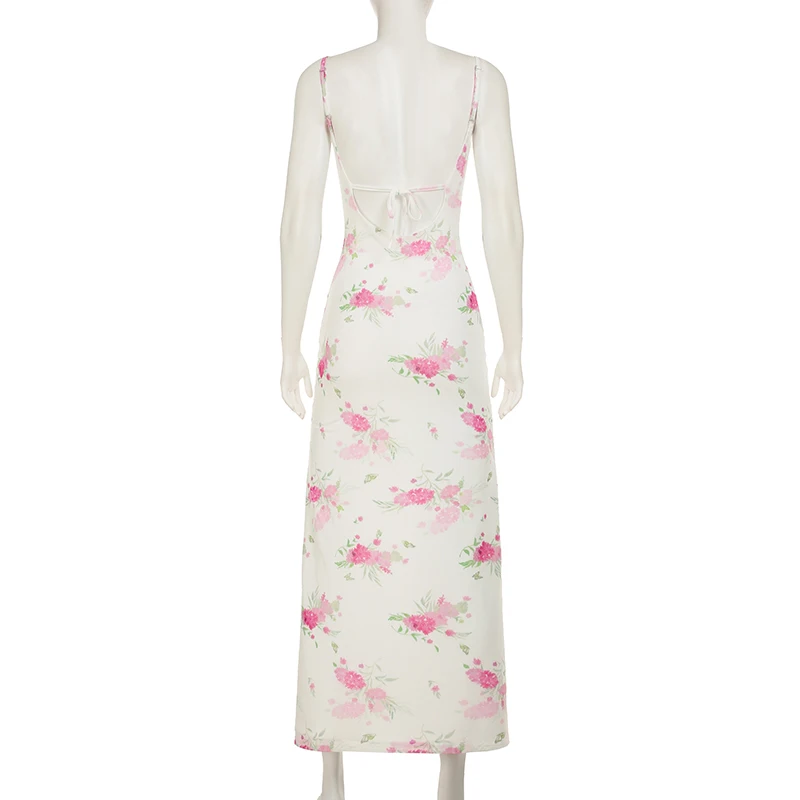Cyflymder Holiday Floral Bodycon Dress Beach Style Sexy Slim Backless Maxi Dresses For Women 2025 Summer Fashion Streetwear Lady
