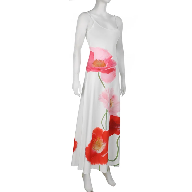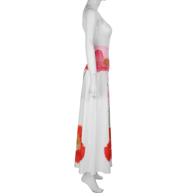 Cyflymder Holiday Floral Camis Dress Beach Style Sexy Slim Slash Neck Sleeveless Maxi Dresses For Women 2025 Summer Fashion Ladies