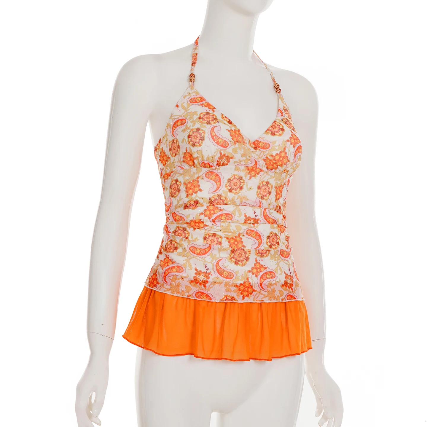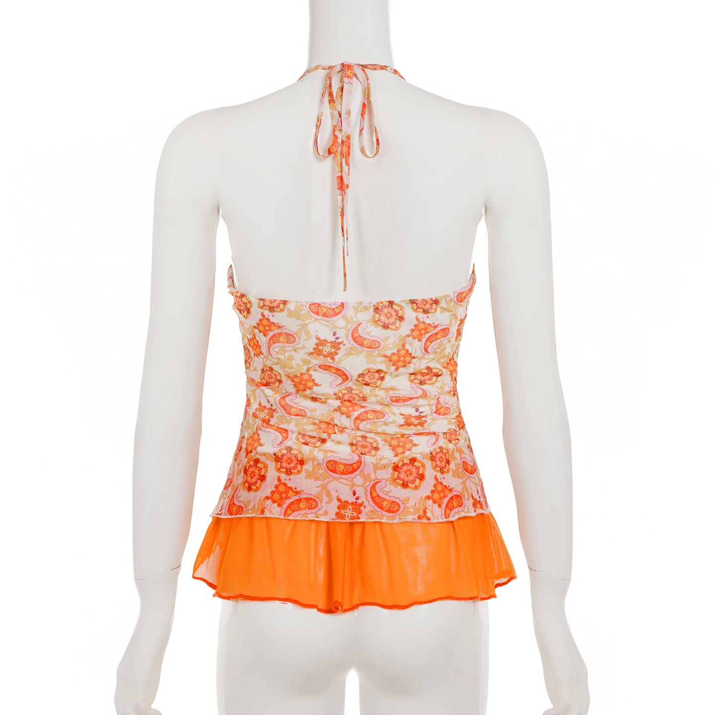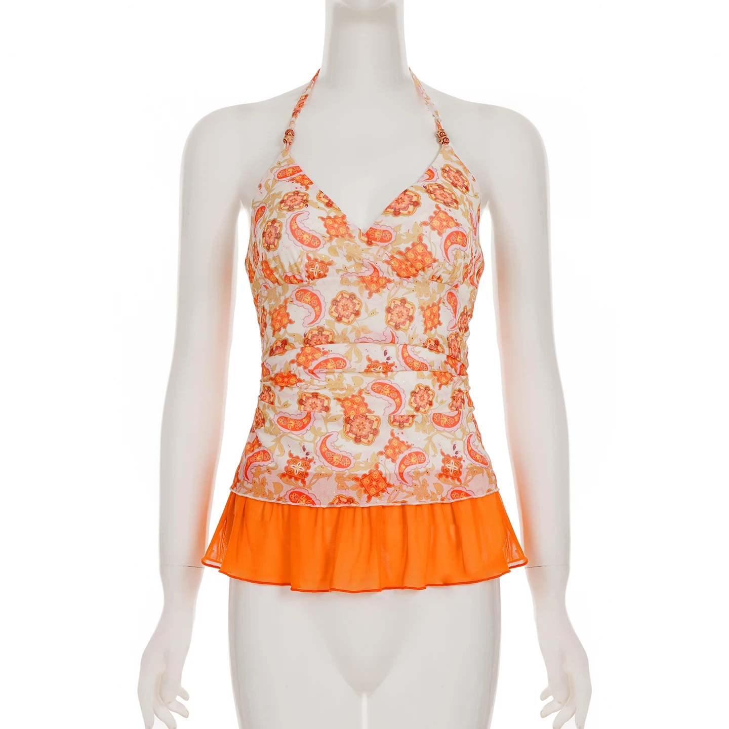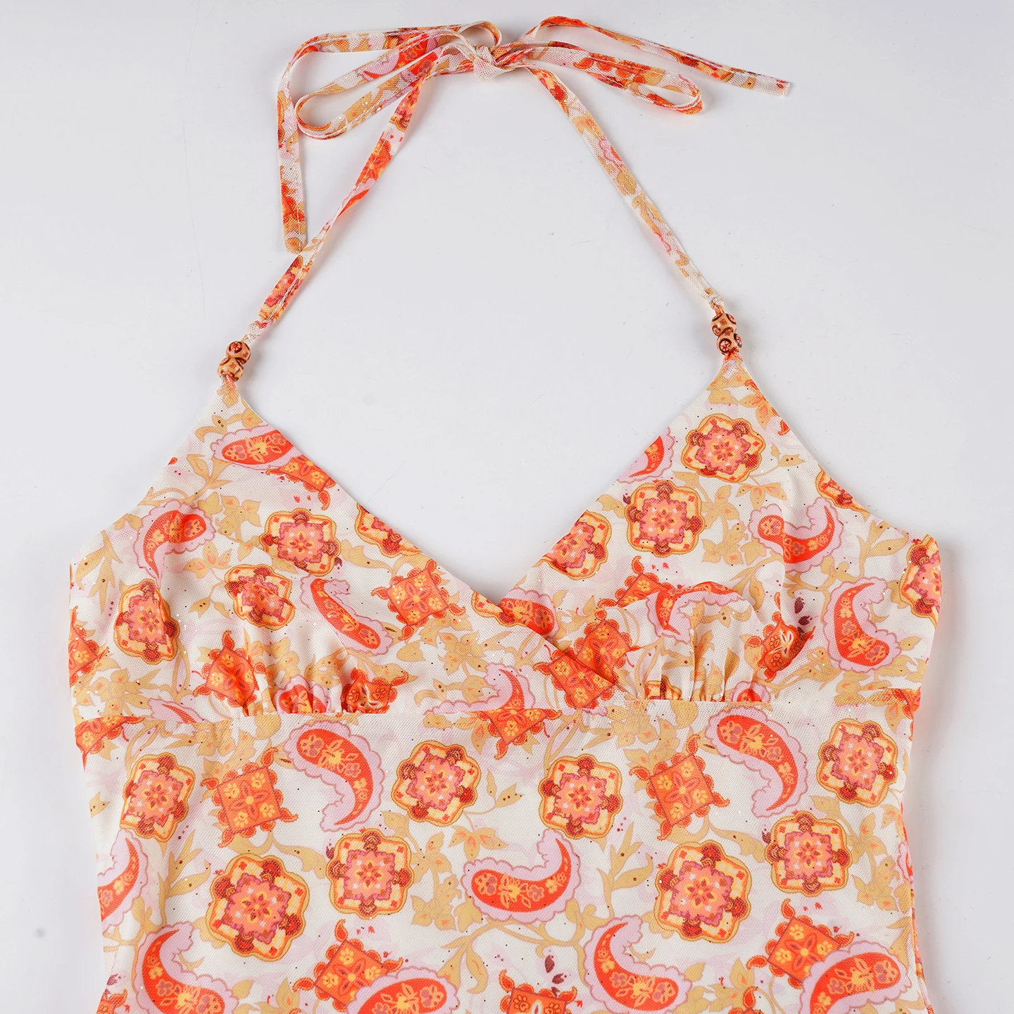 Cyflymder Holiday Floral Mesh Halter Top See Through Slim Deep V-Neck Sleeveless Tank Tops Women Summer Fashion Streetwear