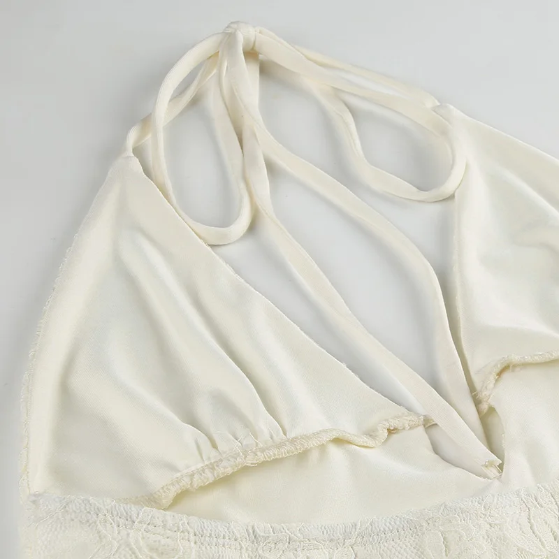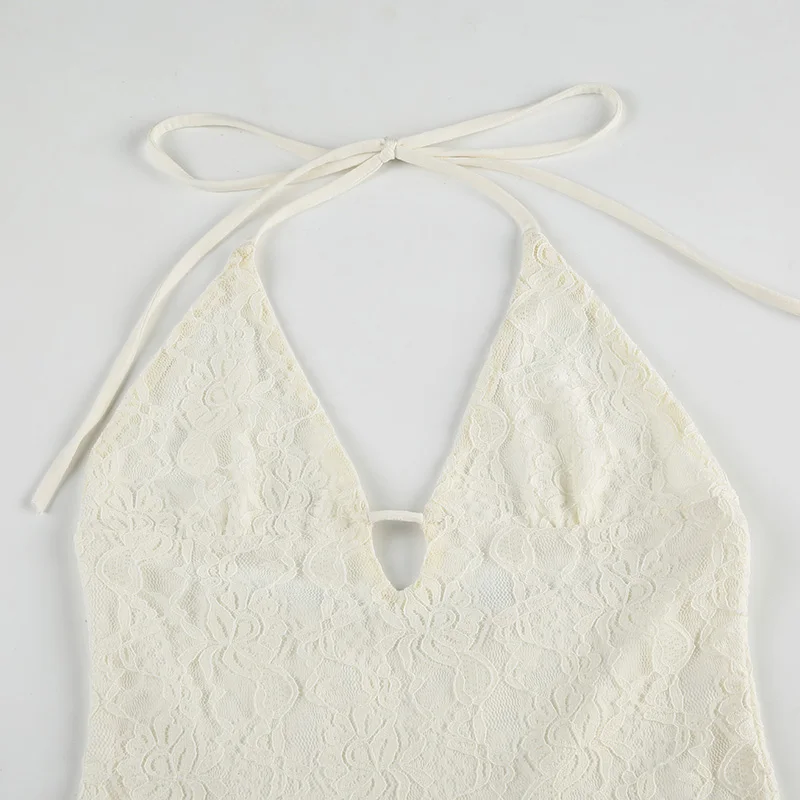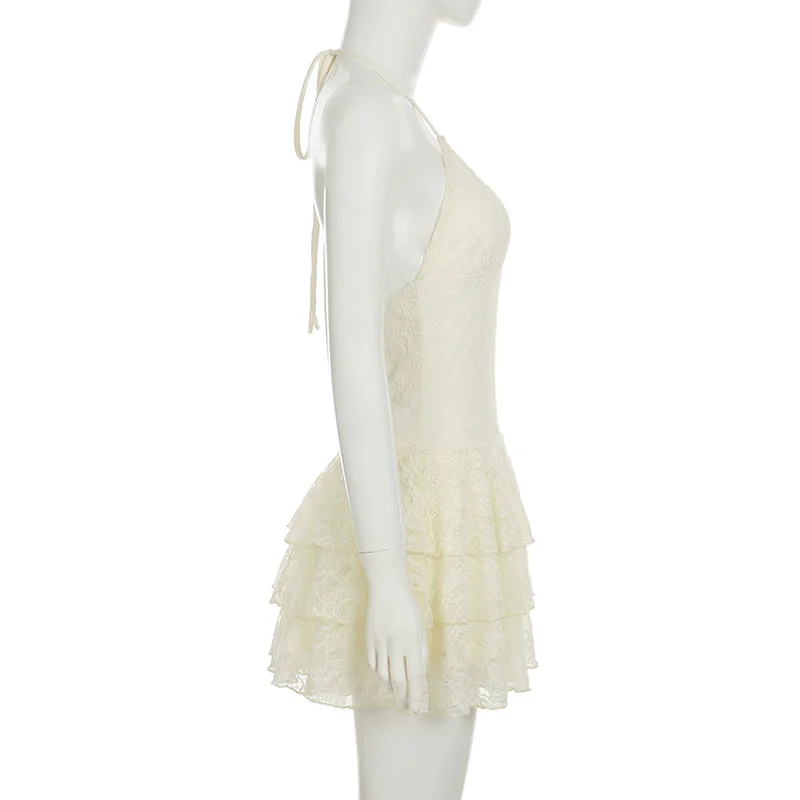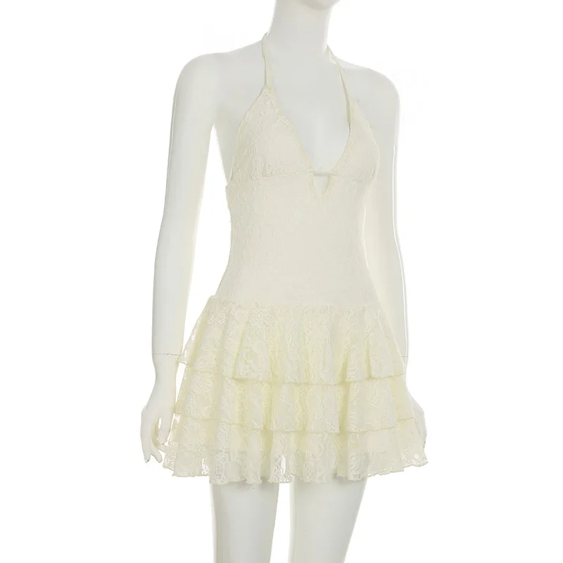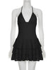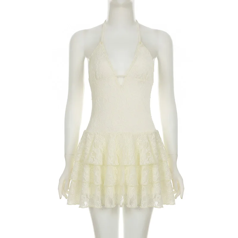 Cyflymder Holiday Hollow Out Halter A-Line Dress Sexy Slim Deep V-Neck Sleeveless Mini Dresses For Women Summer Fashion Lady