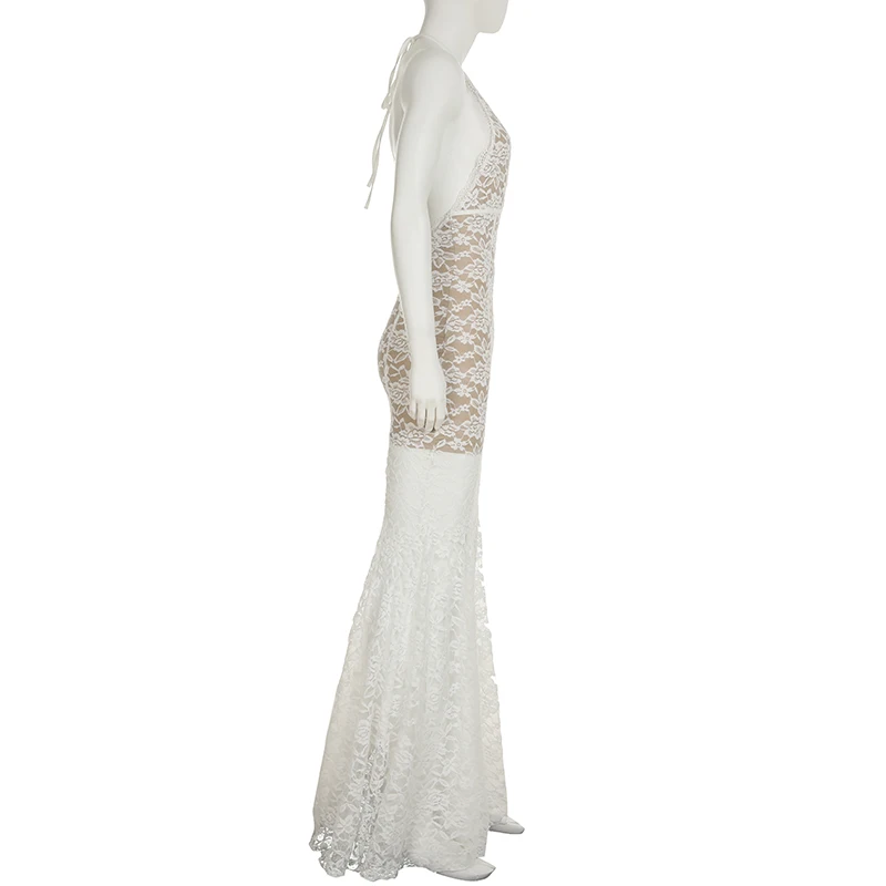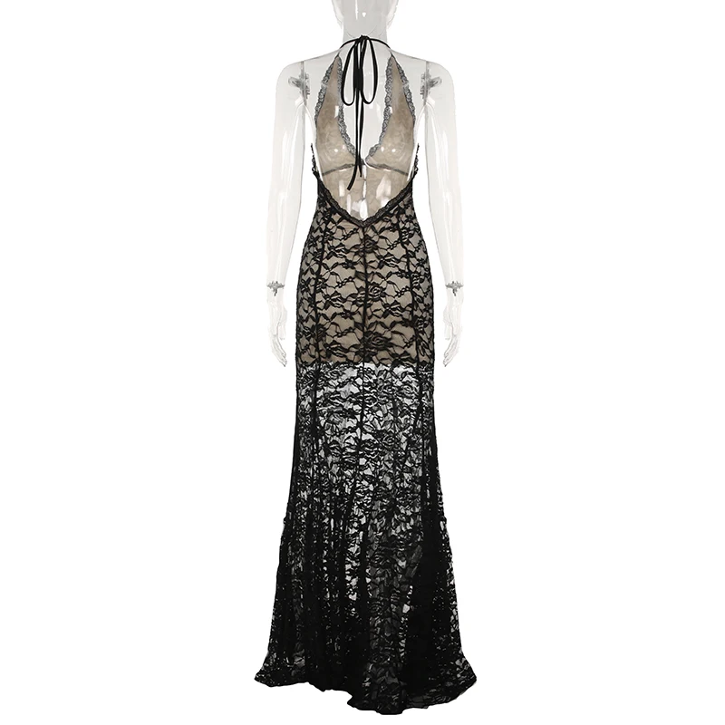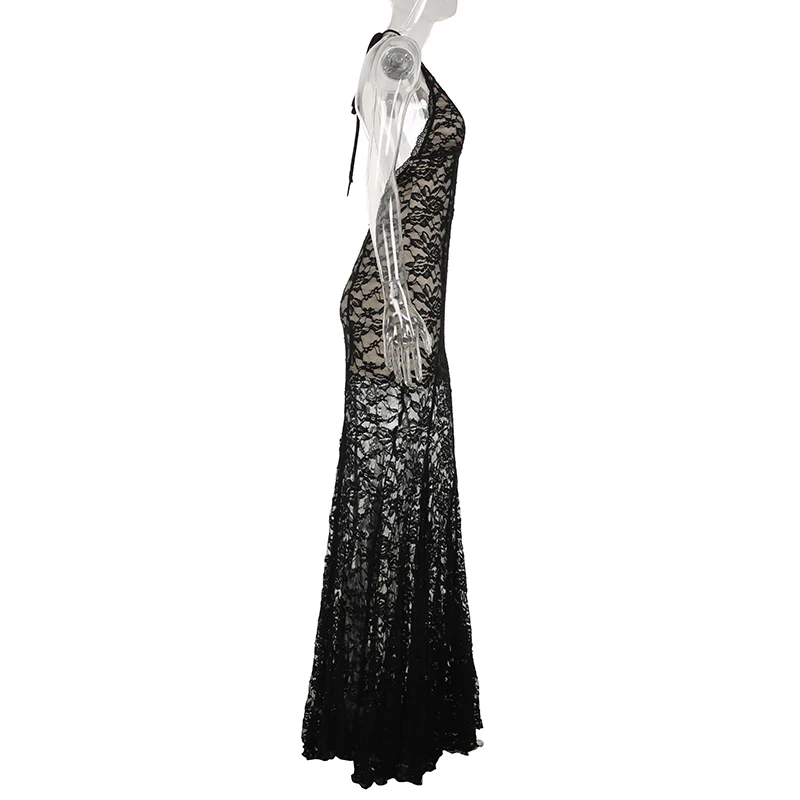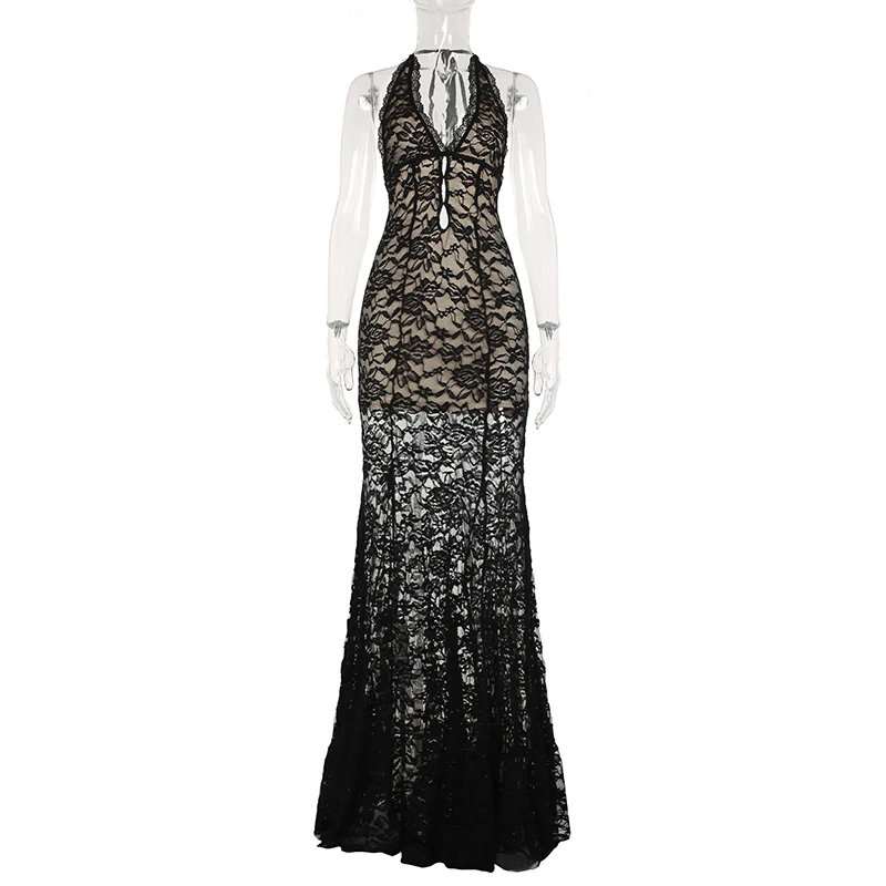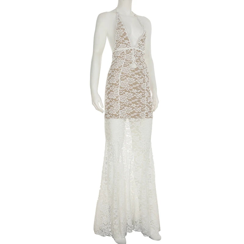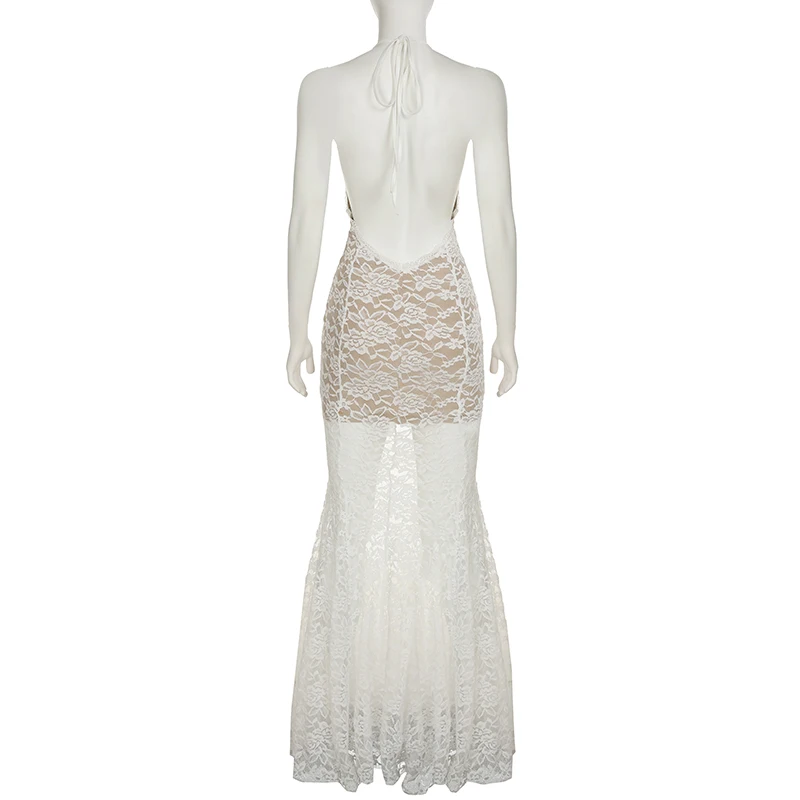 Cyflymder Holiday Hollow Out Lace Trumpet Dress Beach Style Backless Deep V-Neck Sleeveless Maxi Dresses For Women 2025 Summer