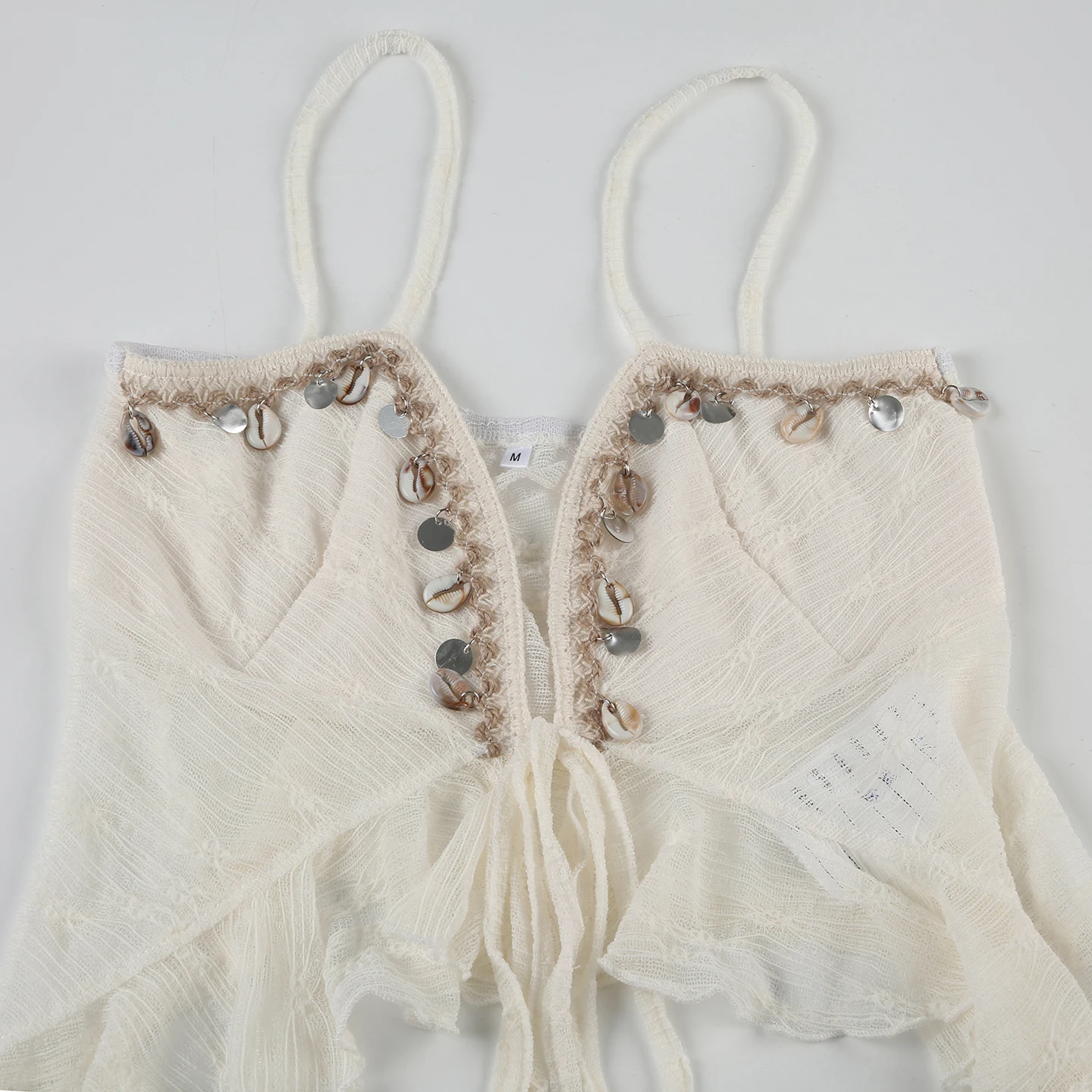 Cyflymder Holiday Split Mesh Camis Tops Beach Style See Through Sexy Slim Deep V-Neck Sleeveless Tank Tops Women Summer Fashion