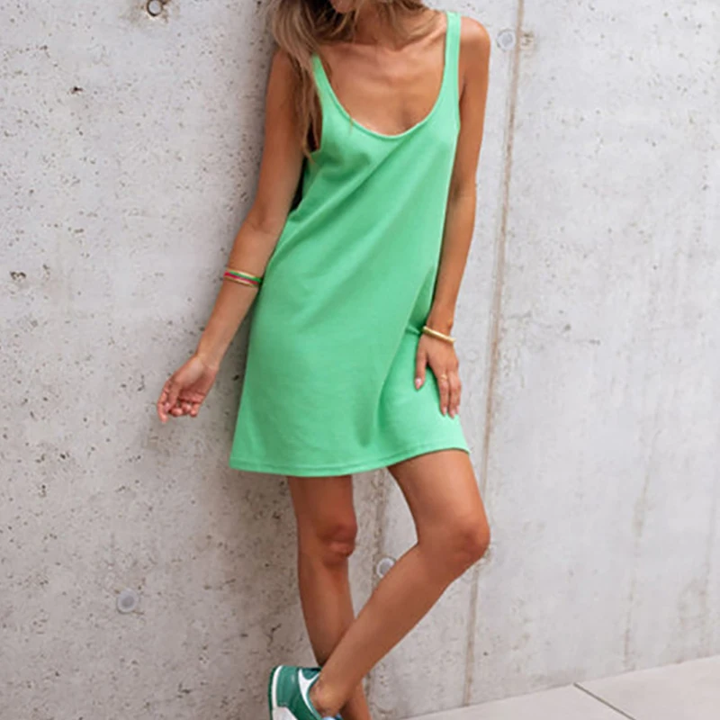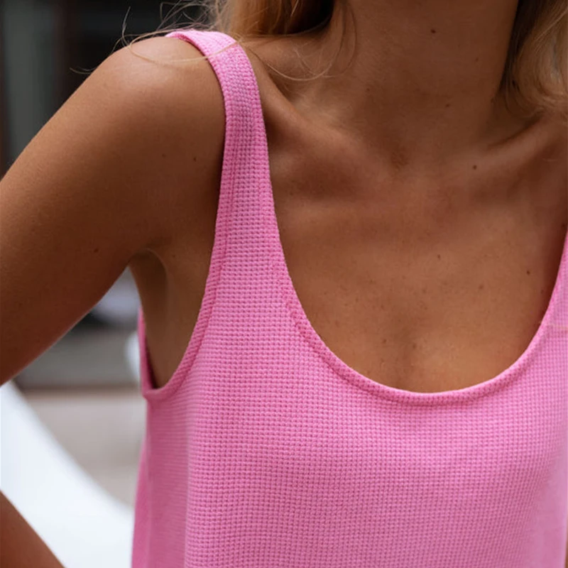 Cyflymder Holiday Women's Multiple Solid Color Casual Street Home Vest Dress Waffle Sleeveless Summer Pullover U Neck Fashion Dresses