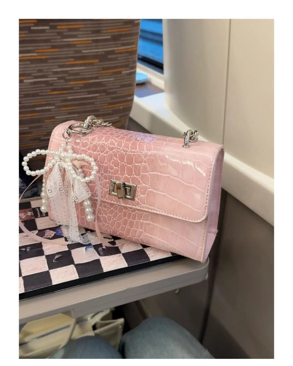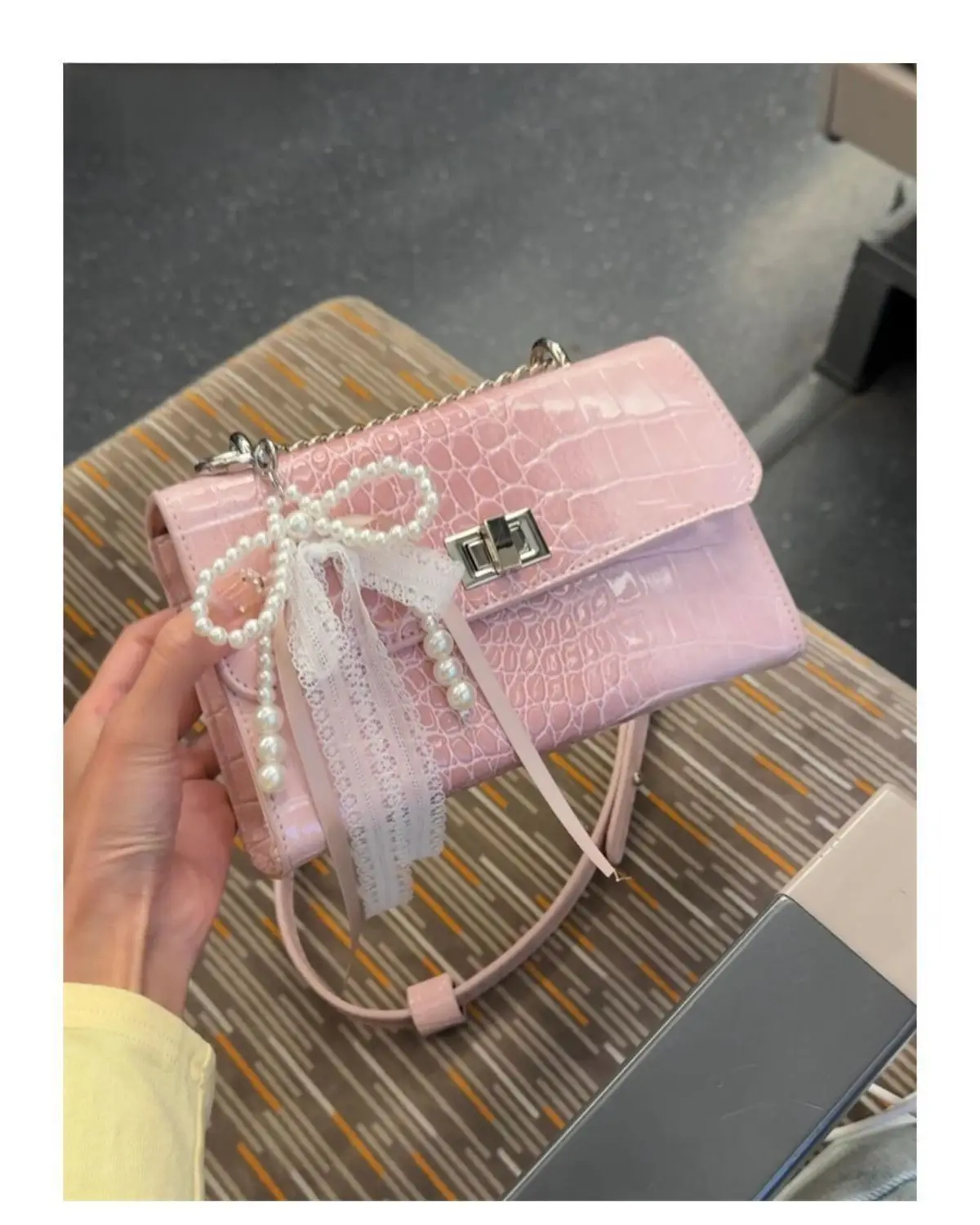 Cyflymder Hot Girl Sweet Bow Handbag Women Premium Crocodile Texture Leather Shoulder Bag Ladies 2025 New Y2K Aesthetic Crossbody Purse