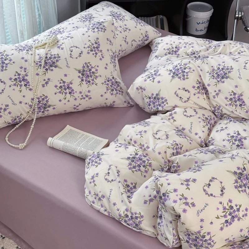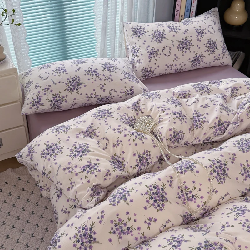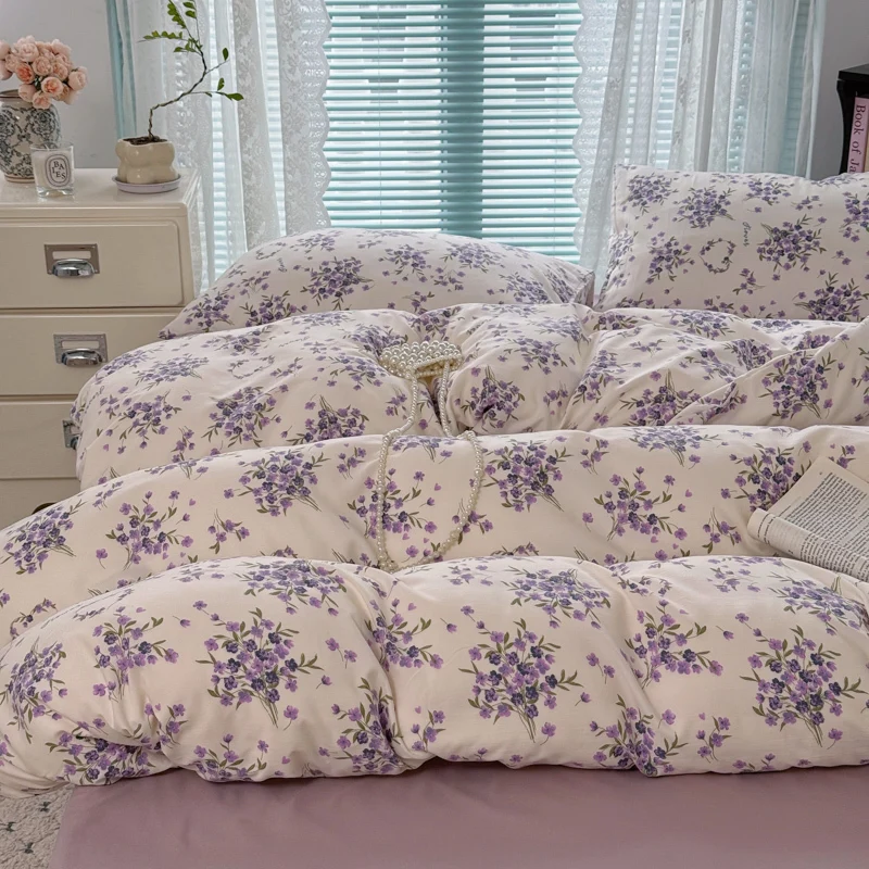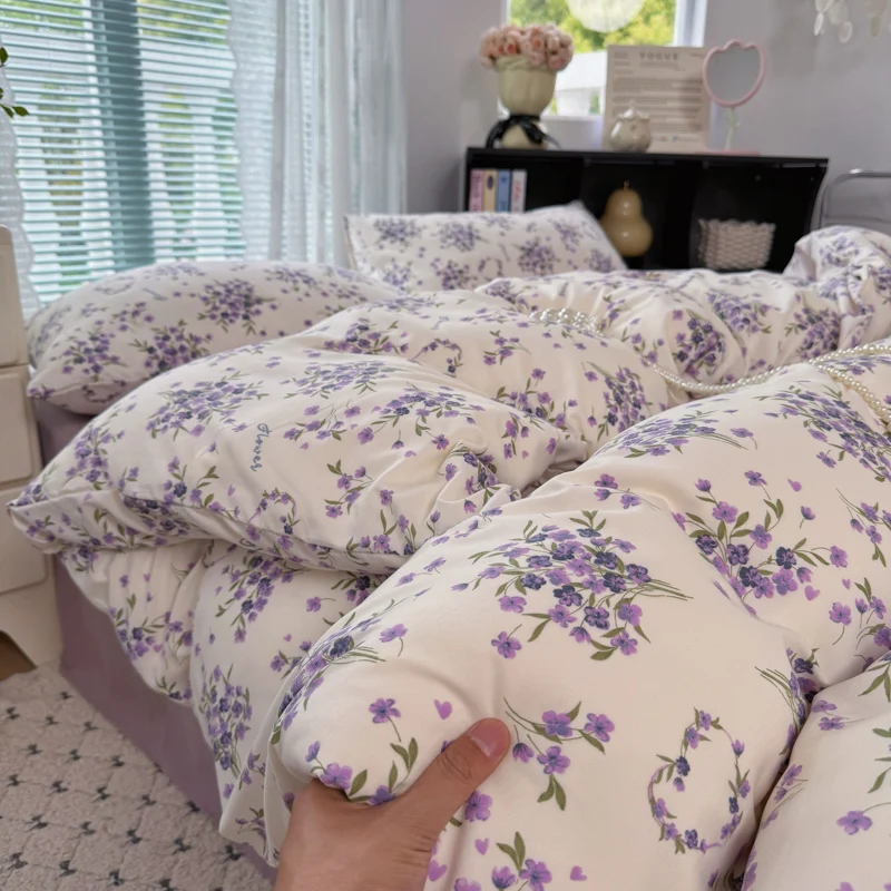 Cyflymder INS Korean Style 2025 Floral Bedding Sets New Skin Friendly Soft Washed Cotton Printed Bed Sheet Sets