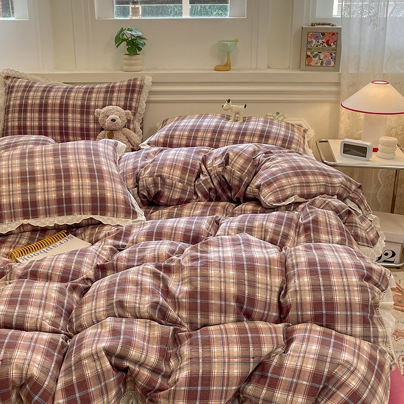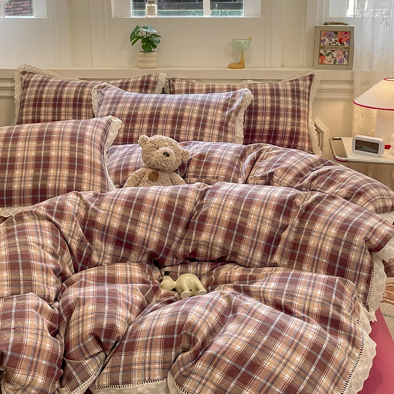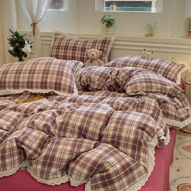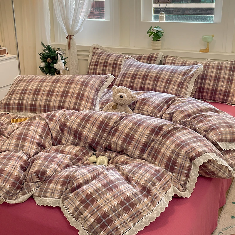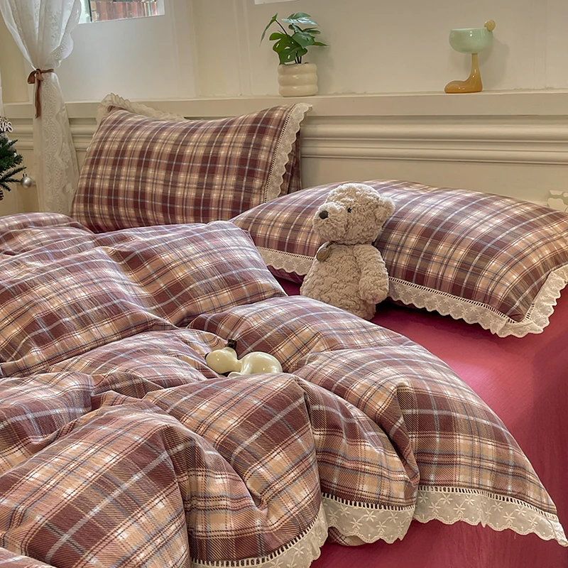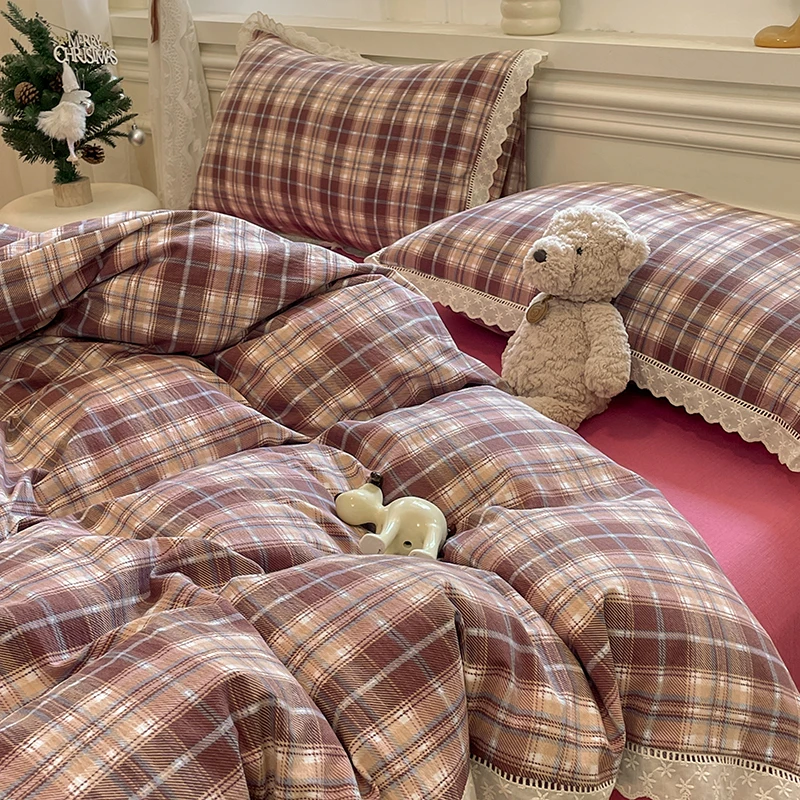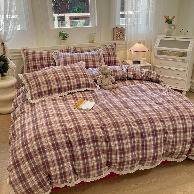 Cyflymder INS Korean Style2025 New Yungan Cotton Wrinkled Double-layer Yarn Lace Bedding Sets