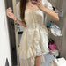Cyflymder Irregular Dresses Women Sweet Ruffles Square Collar Puff Short Sleeve Princess Spring Summer Elegant Dress Female