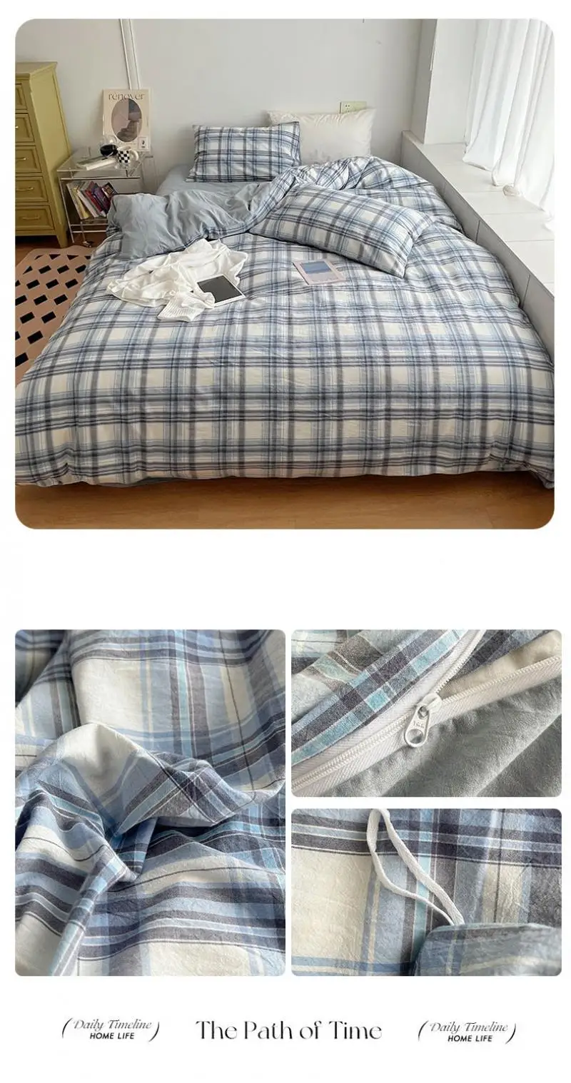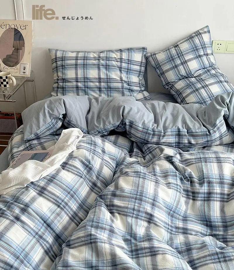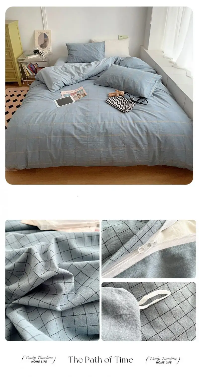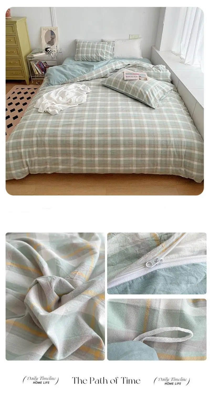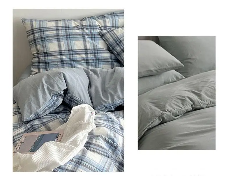 Cyflymder Japanese Style Cotton Printed 4Pcs Bedding Sets Skin Friendly Ab Double-Sided Design Duvet Cover Washed Comfort Set for Adults