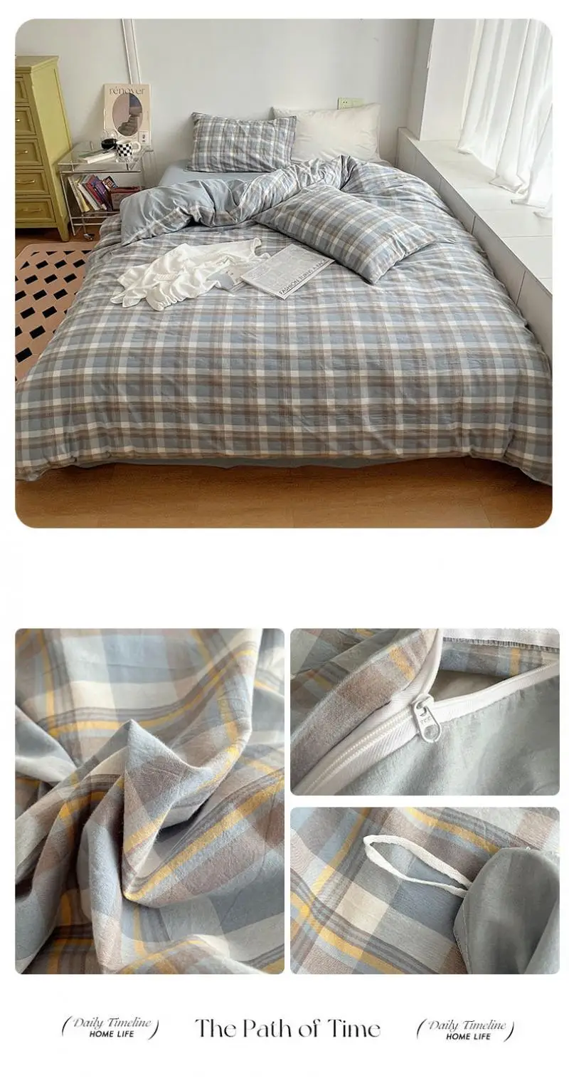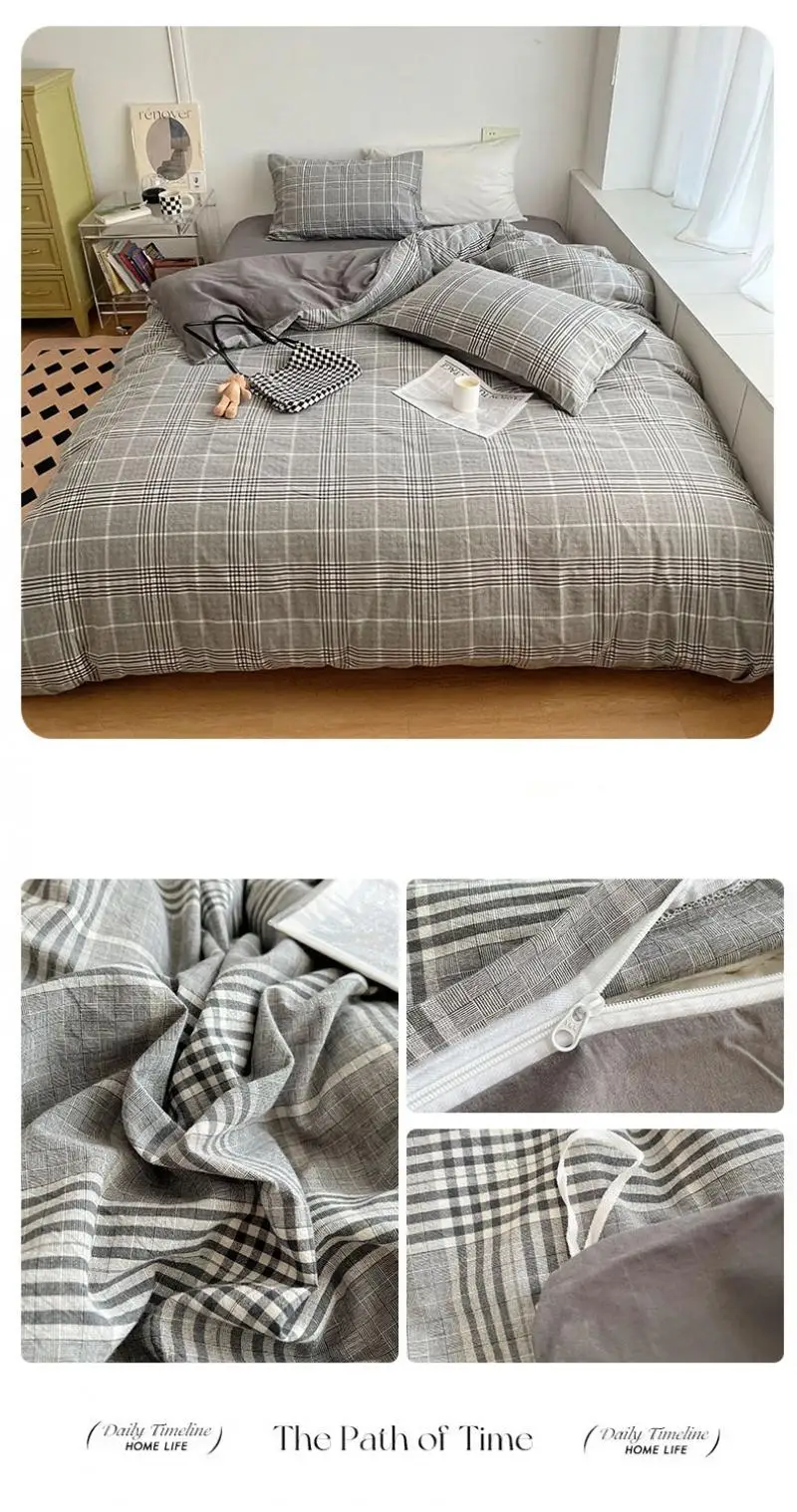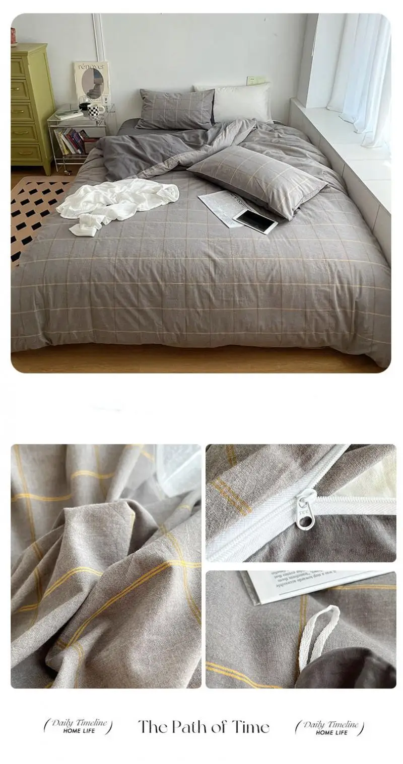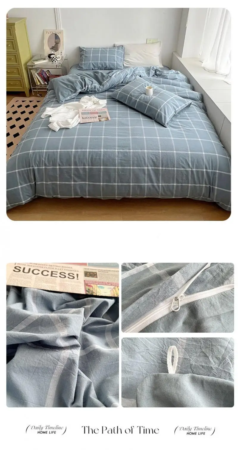Cyflymder Japanese Style Cotton Printed 4Pcs Bedding Sets Skin Friendly Ab Double-Sided Design Duvet Cover Washed Comfort Set for Adults