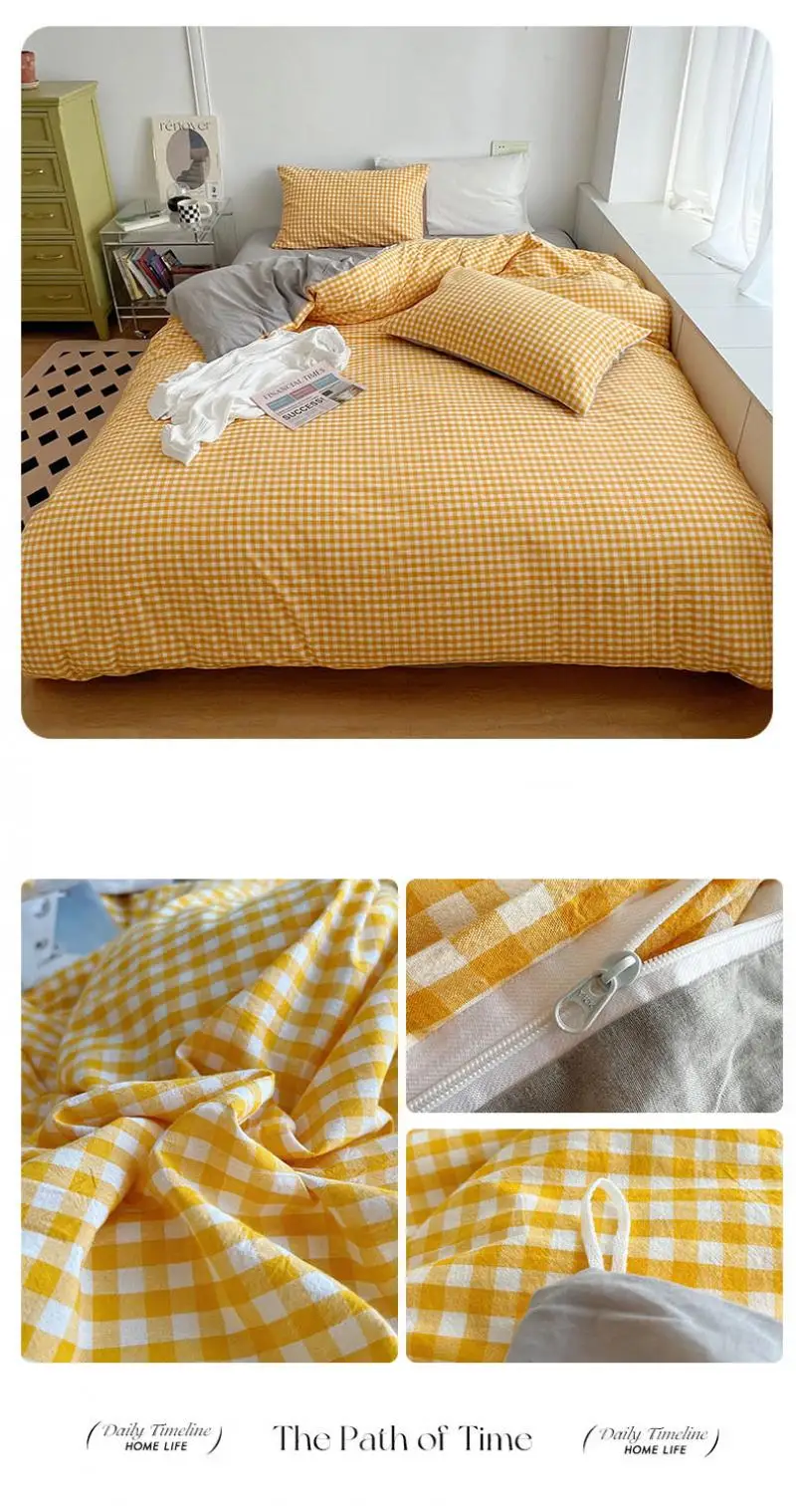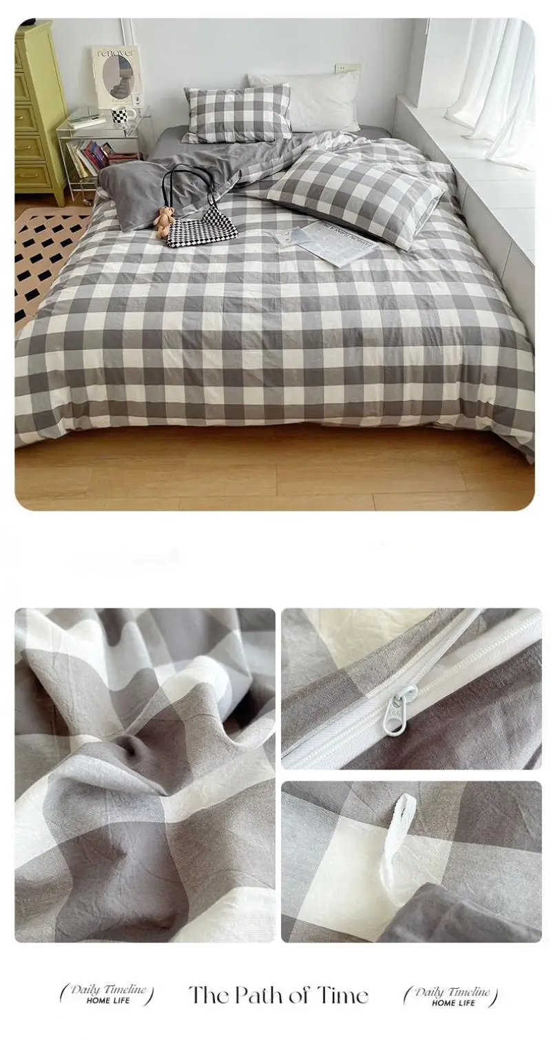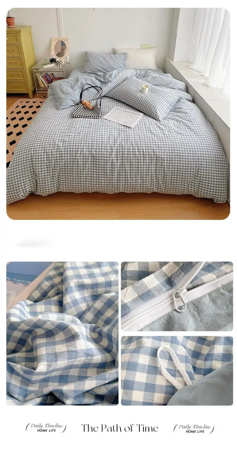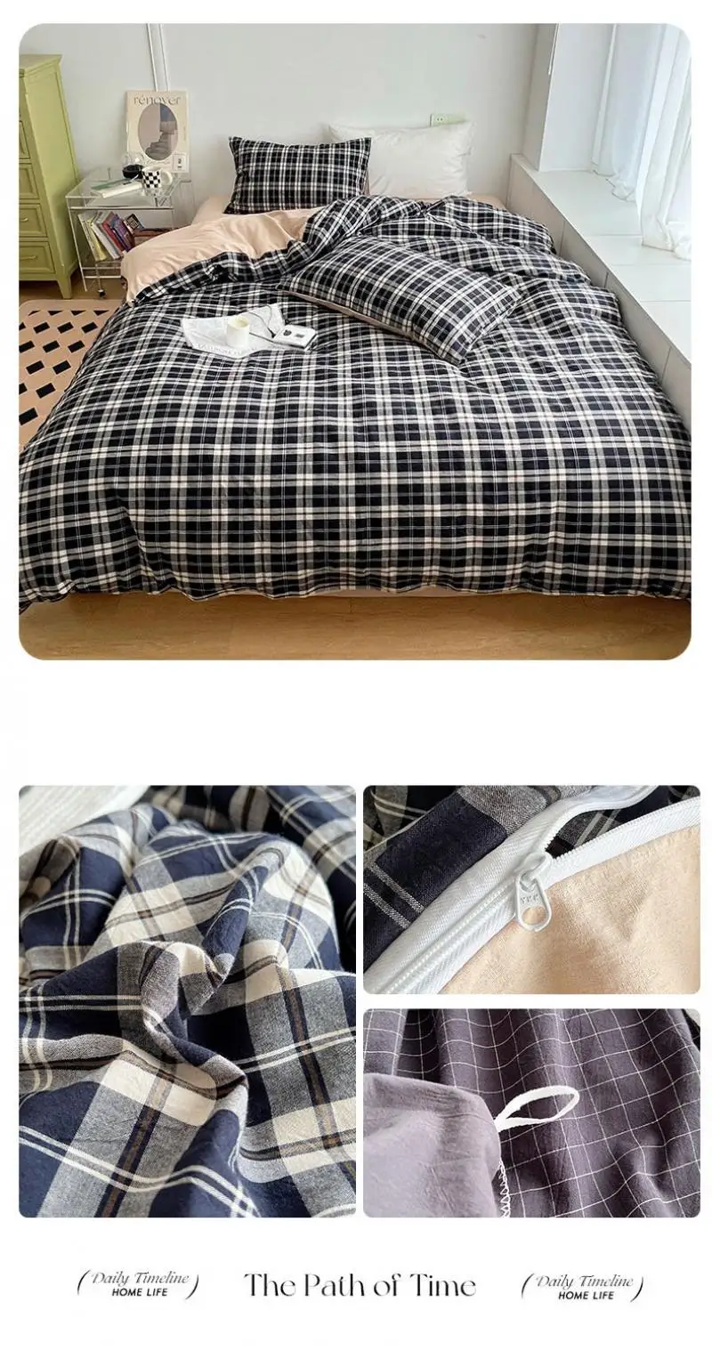 Cyflymder Japanese Style Cotton Printed 4Pcs Bedding Sets Skin Friendly Ab Double-Sided Design Duvet Cover Washed Comfort Set for Adults