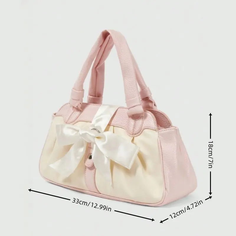 Cyflymder Japanese Style Sweet Cute Bow Handbag Women Simple Gentle Shoulder Bag Ladies Leather Delicate Fashion Pleated Underarm Bag 2025