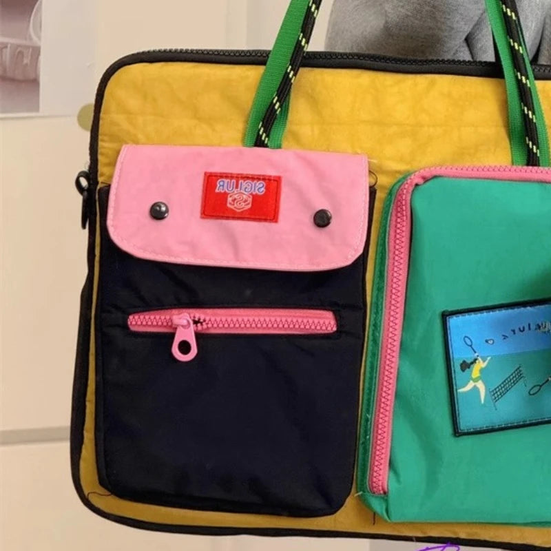 Cyflymder Japanese Y2k 16 Inch Laptop Bags Contrast Color Patchwork High-capacity Women's Handbags Harajuku Grunge Shoulder Underarm Bag
