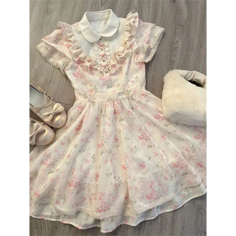 Cyflymder Kawaii Floral Mini Dress Women Japanese Lolita Cute Bow Ruffles Patchwork Dresses Summer Korean Fashion Bodycon A Line Vestidos