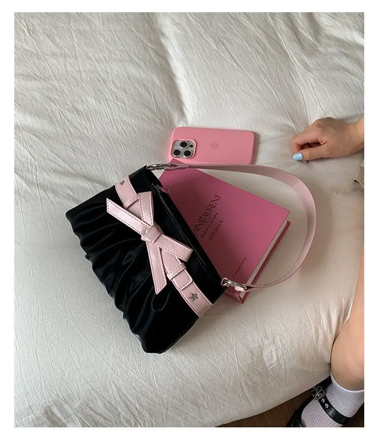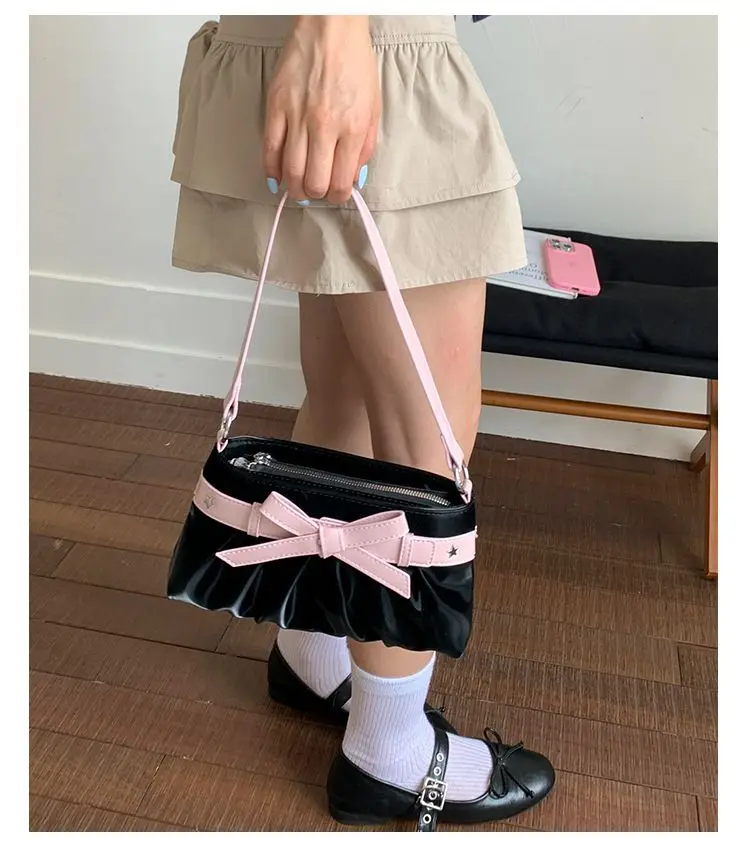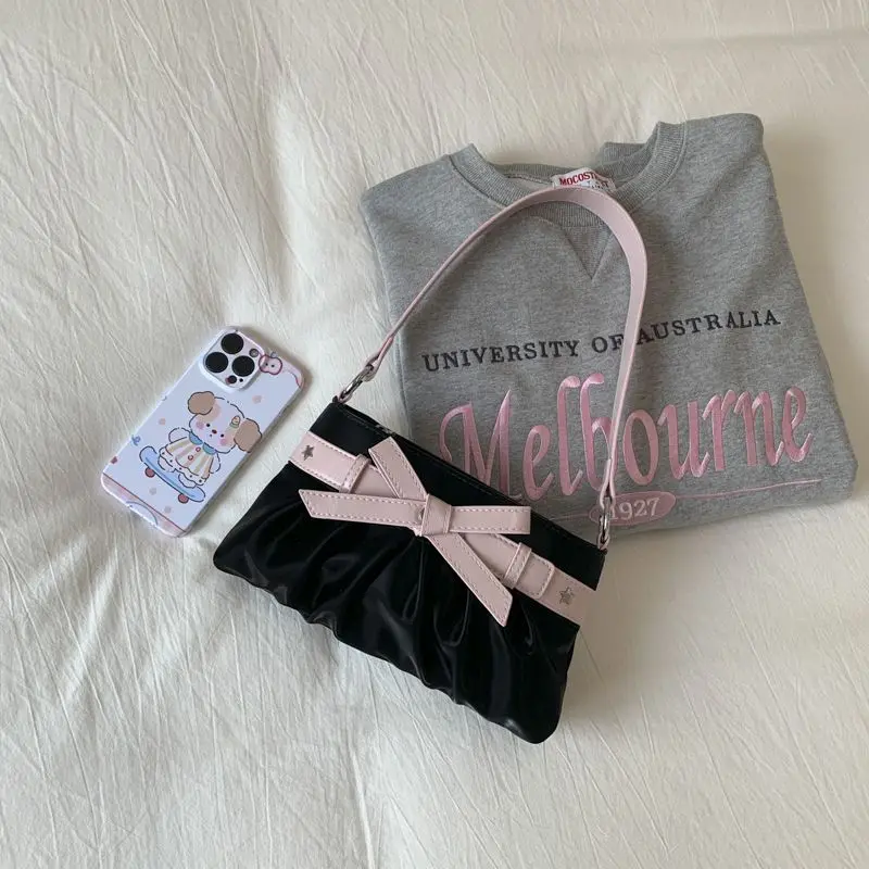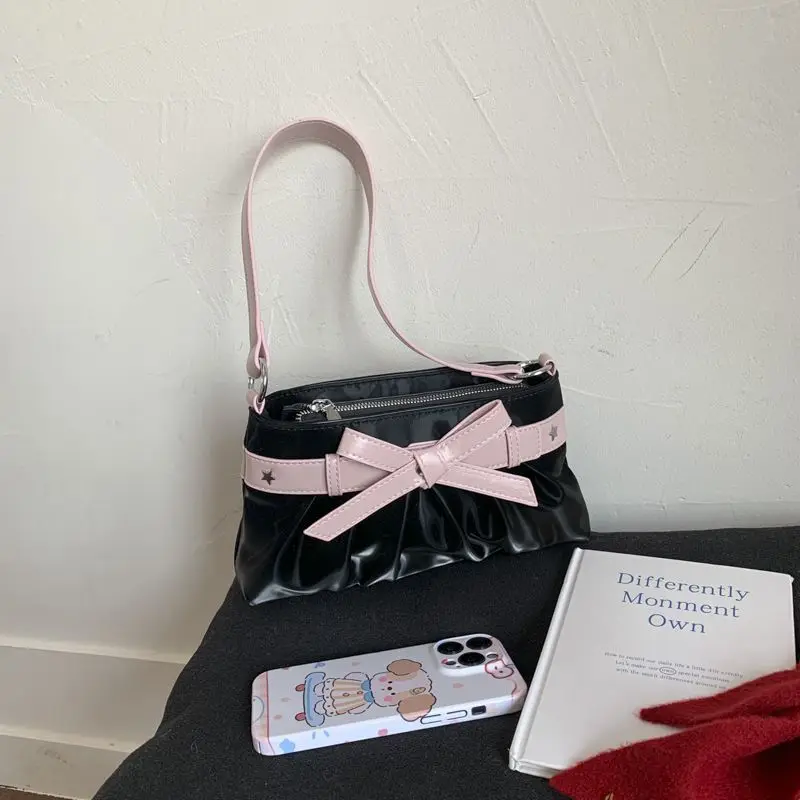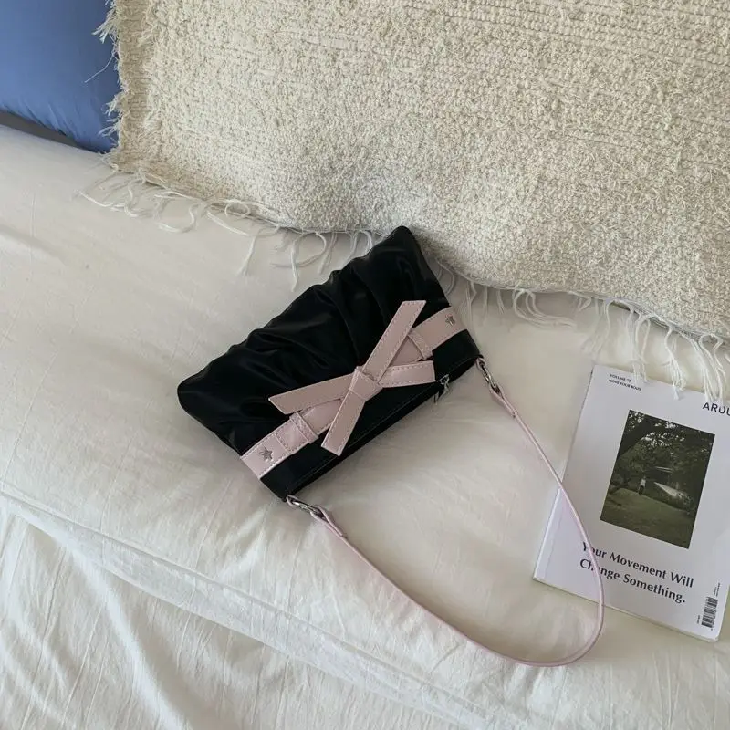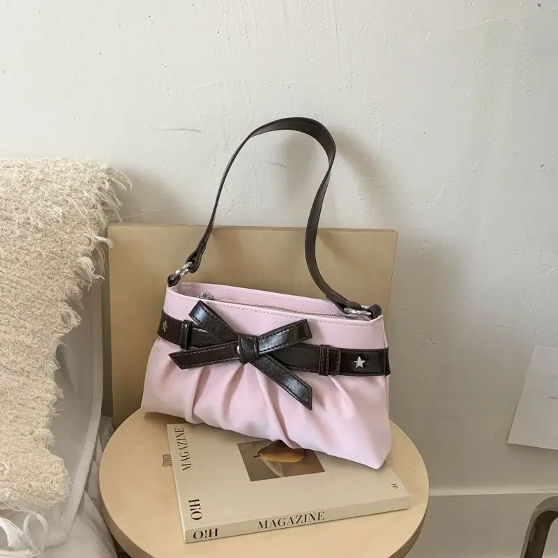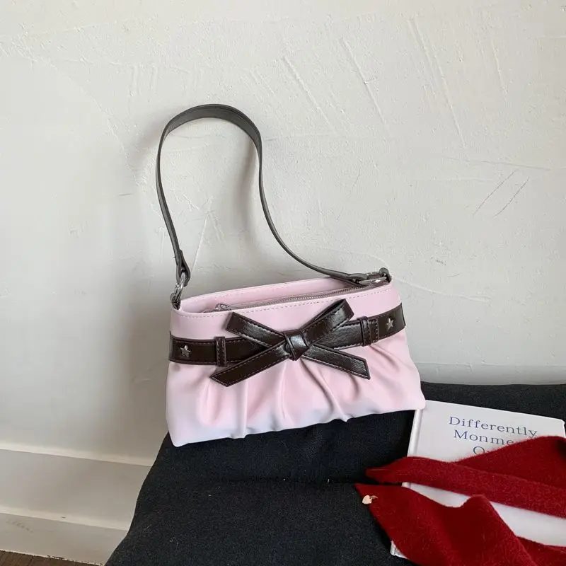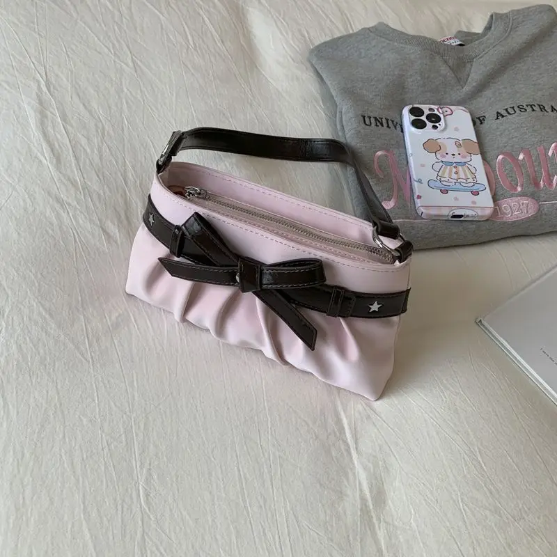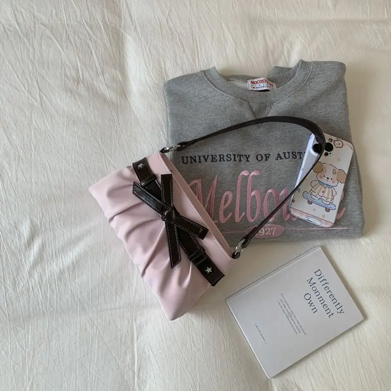 Cyflymder Korean Hot Girl Bow Studded Handbag Women Simple Design Sweet Shoulder Bag Ladies Elegant Fashion Underarm Purse Y2k Aesthetic
