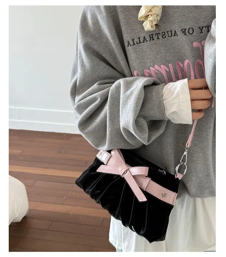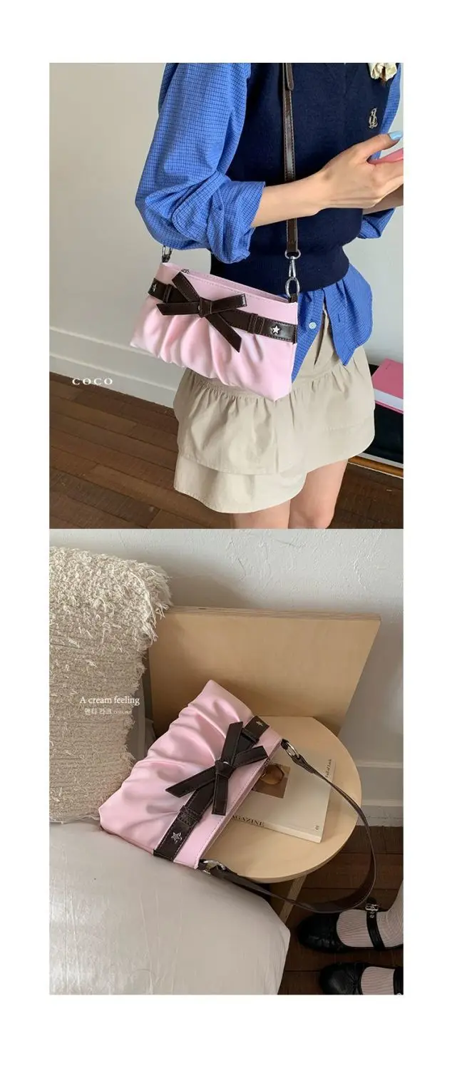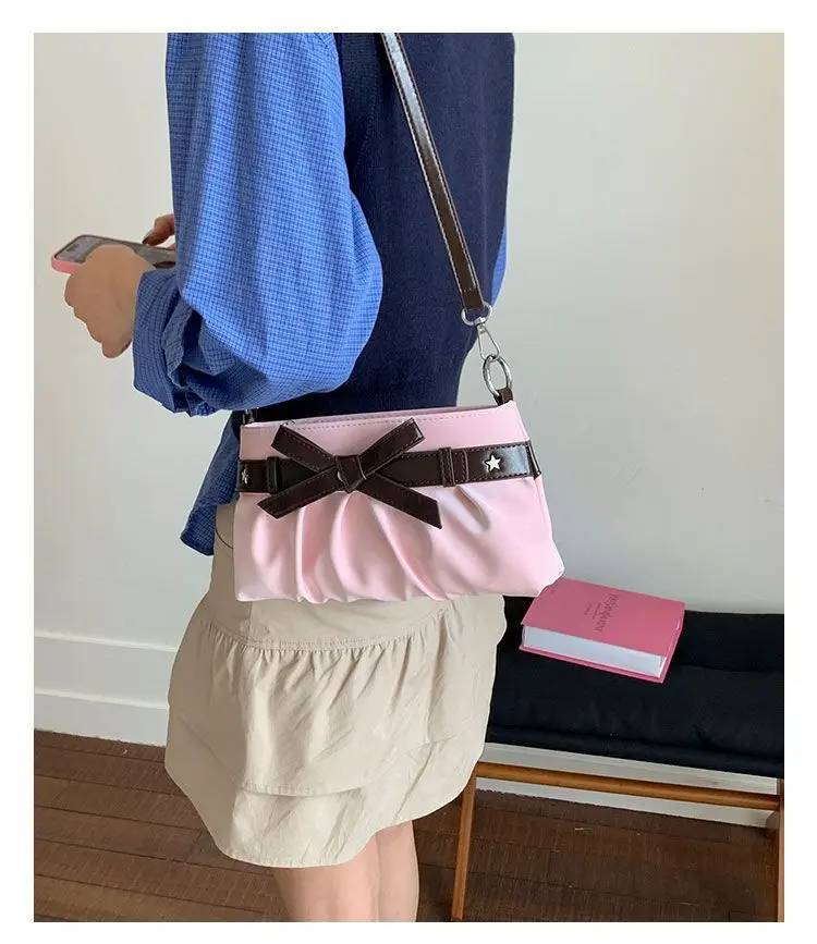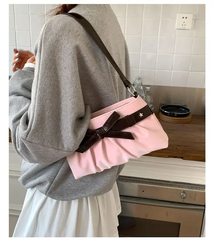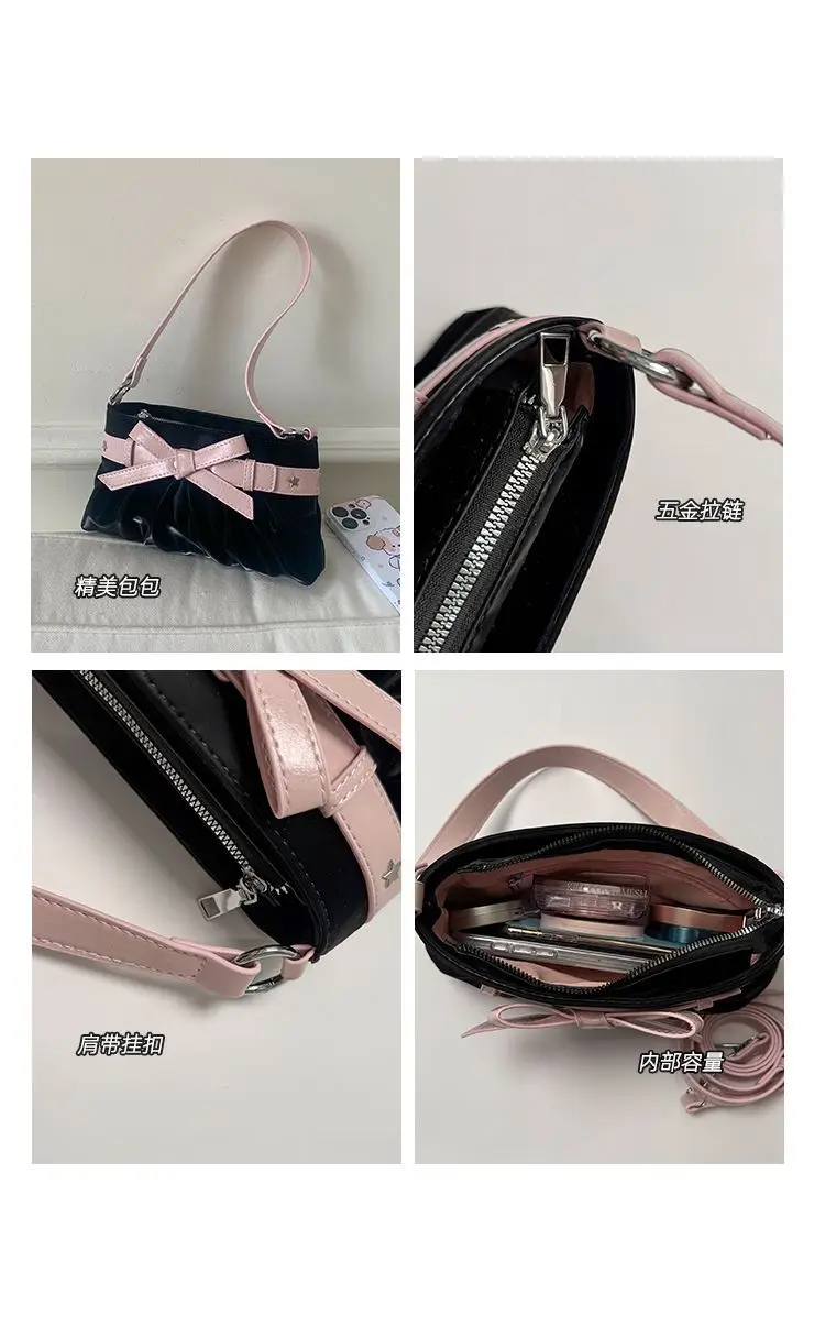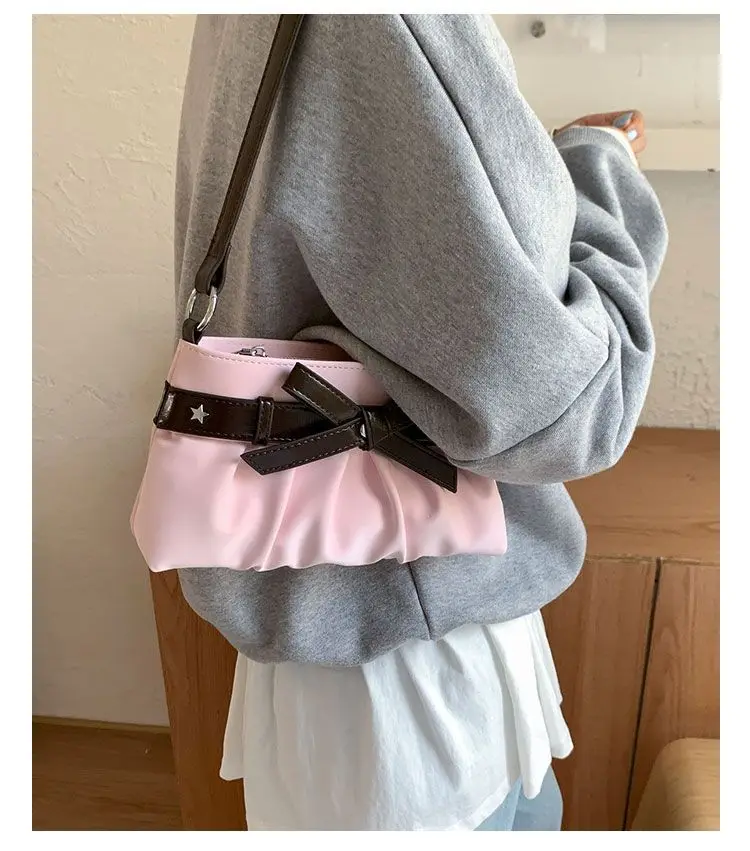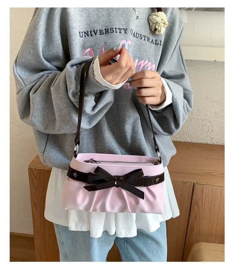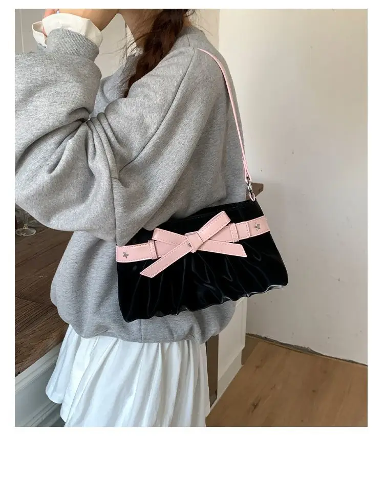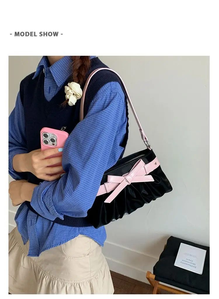 Cyflymder Korean Hot Girl Bow Studded Handbag Women Simple Design Sweet Shoulder Bag Ladies Elegant Fashion Underarm Purse Y2k Aesthetic