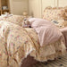 Cyflymder Korean Princess Style Ruffles Flower Print Bedding Set Duvet Cover Set Bed Skirt Bedspread Pillowcases 100% Cotton Home Textile