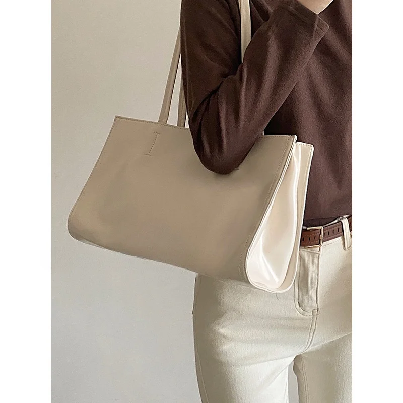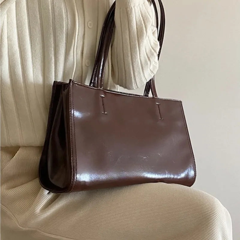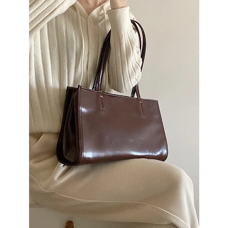 Cyflymder Korean Solid Patent Leather Bright Surface Tote Bag Fashion Large Capacity Commuter Shoulder Bag WomenCasual Handbag Elegant New