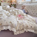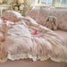 Cyflymder Korean Style Girly Heart Floral Double Layer Gauze Four-Piece Set Princess Style Lace Trim Quilt Cover Bed Sheet Dormitory
