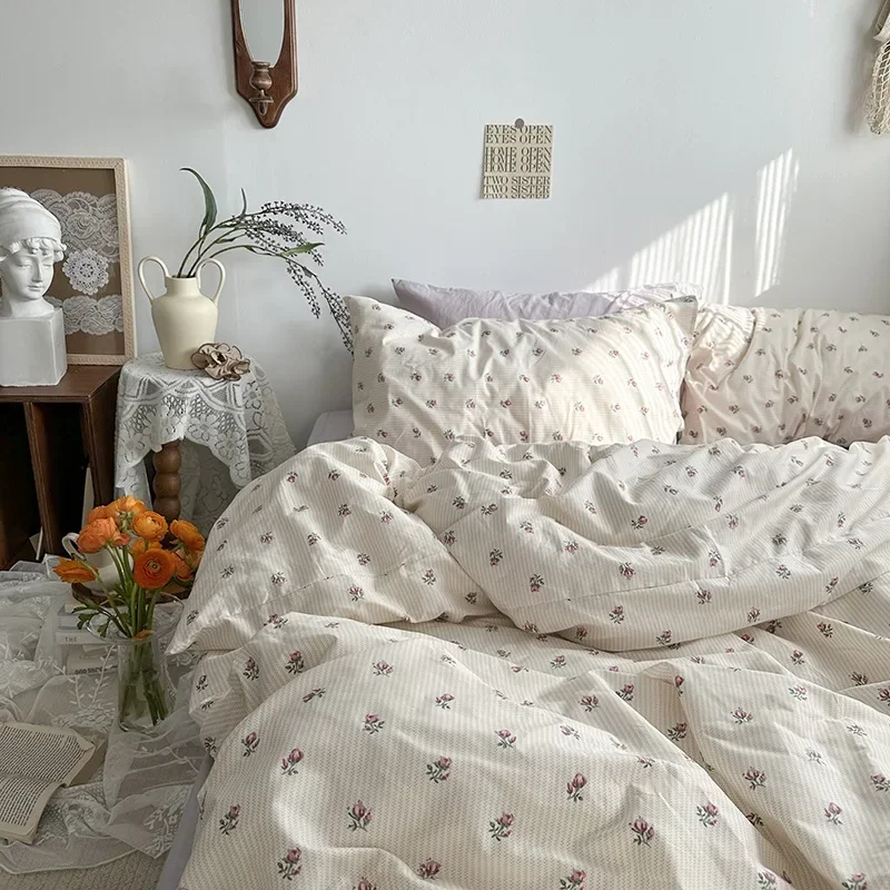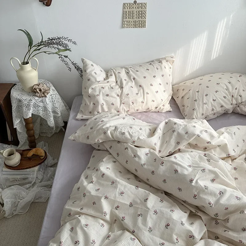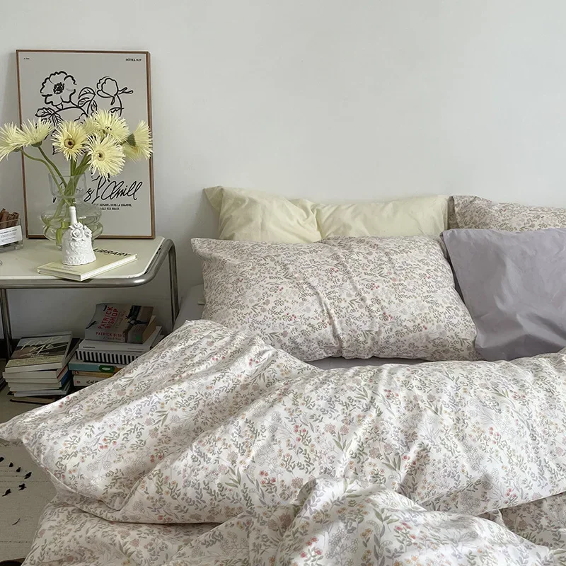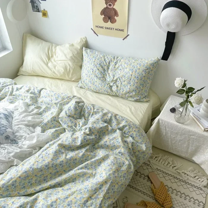 Cyflymder Korean Style Ins Little Flowers Bedding Set Flat Bed Sheet Duvet Cover Twin Full Queen Nordic Bed Linen Boy Girl Bedding Sets