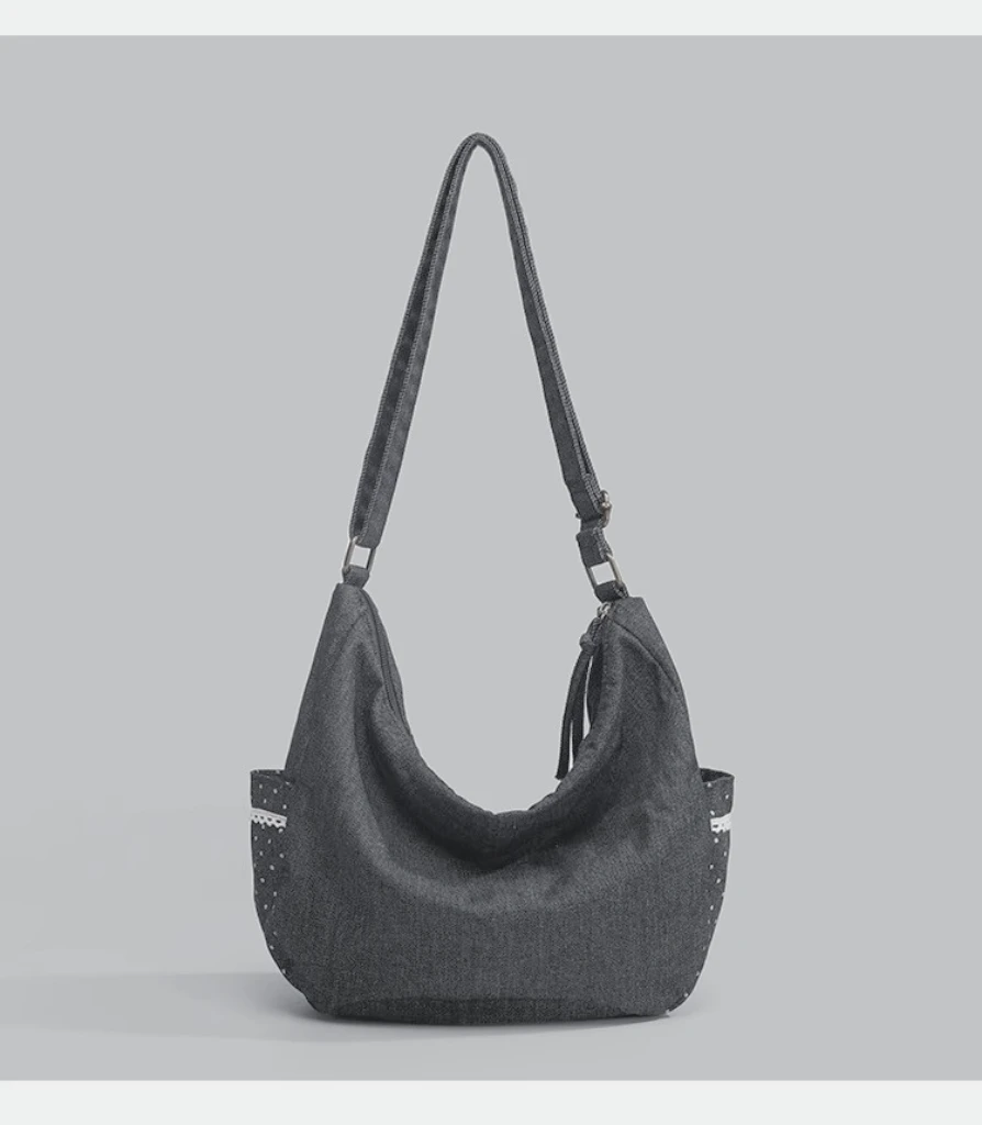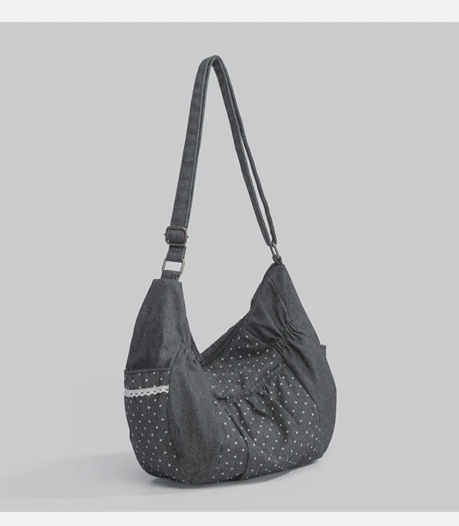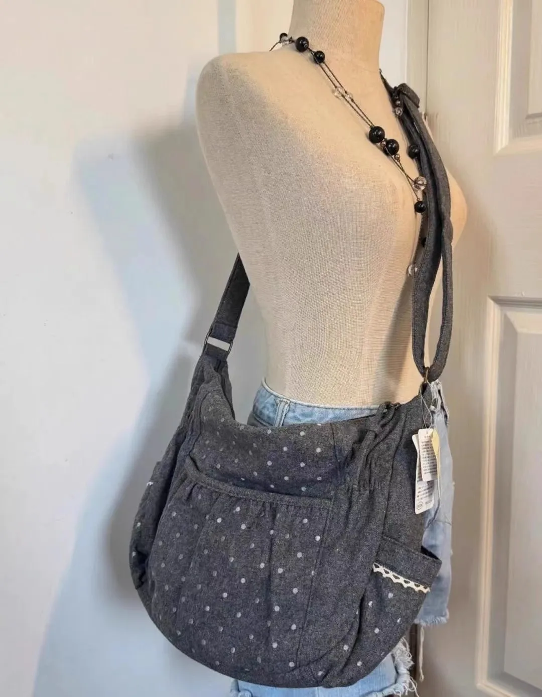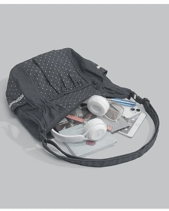 Cyflymder Korean Style Polka Dot Canvas Tote Bag Womem Shoulder Bags Ladies Casual Lazy Versatile Fashion Crossbody Bag for Work Commute