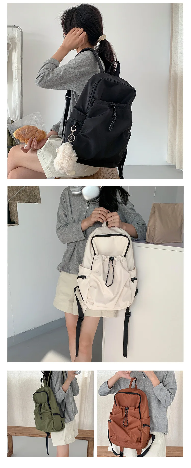 Cyflymder Korean Vintage High-capacity Backpack All Match Simple Nylon Casual Schoolbags Streetwear Women Students Backpacks Y2k Aesthetic