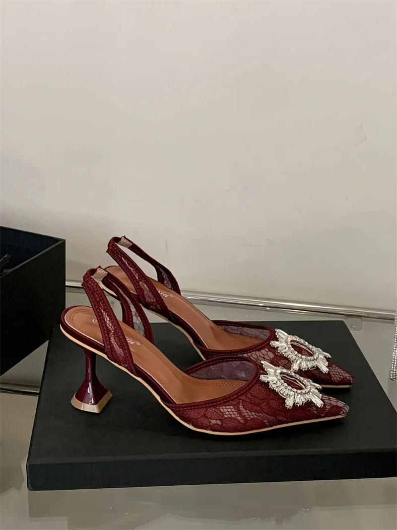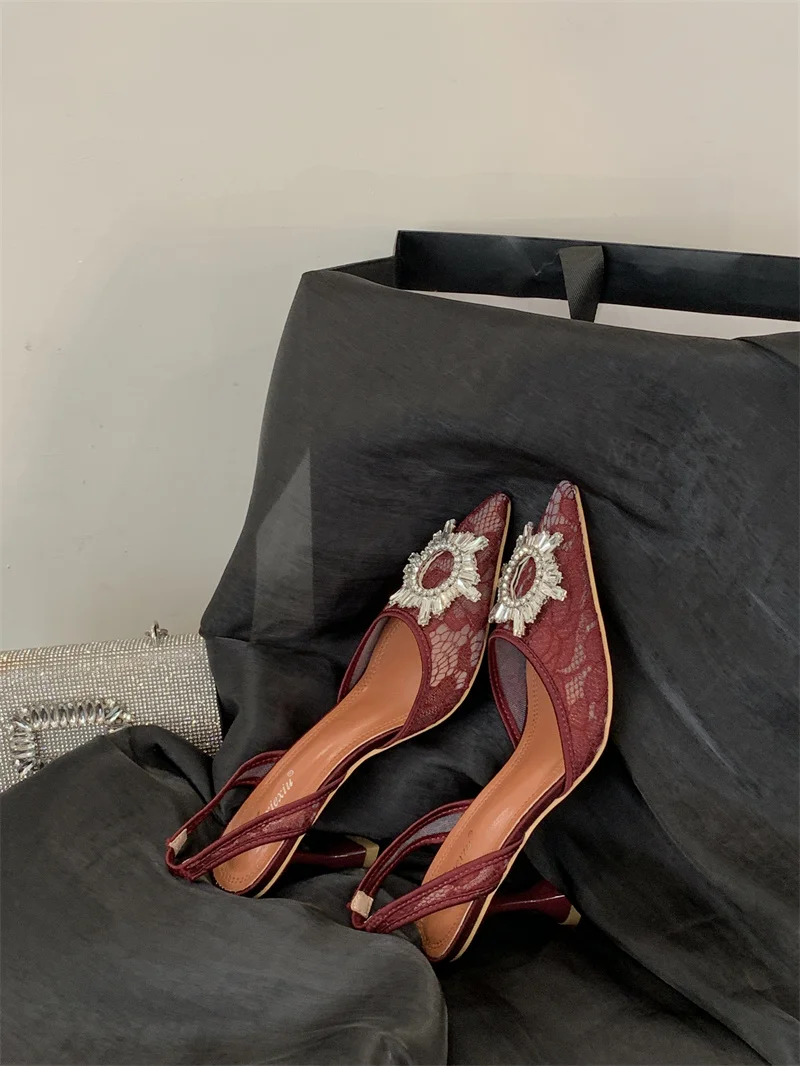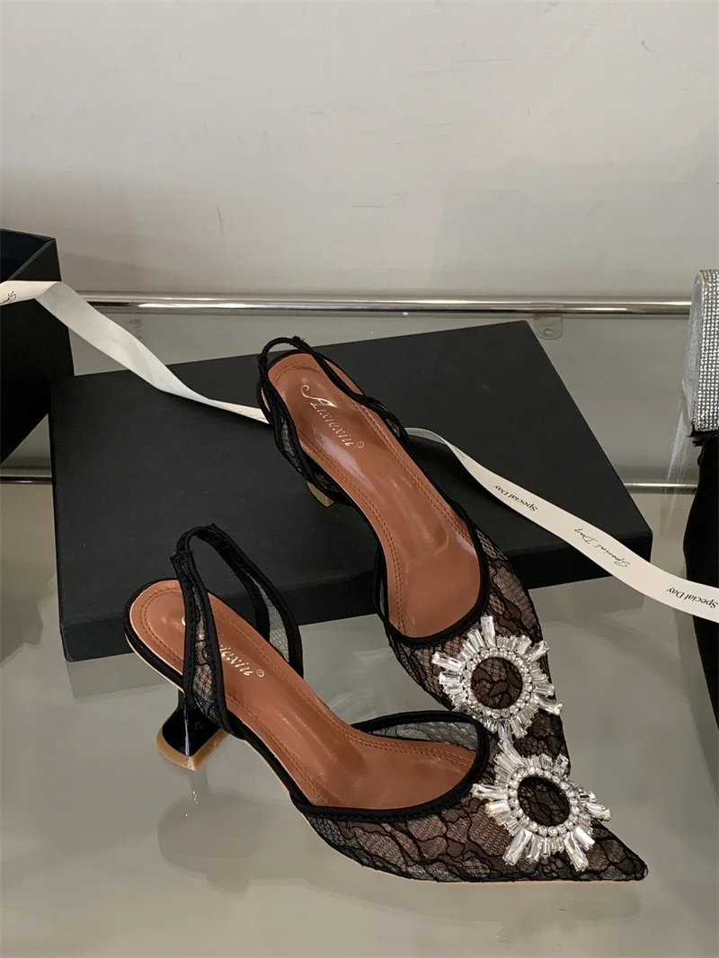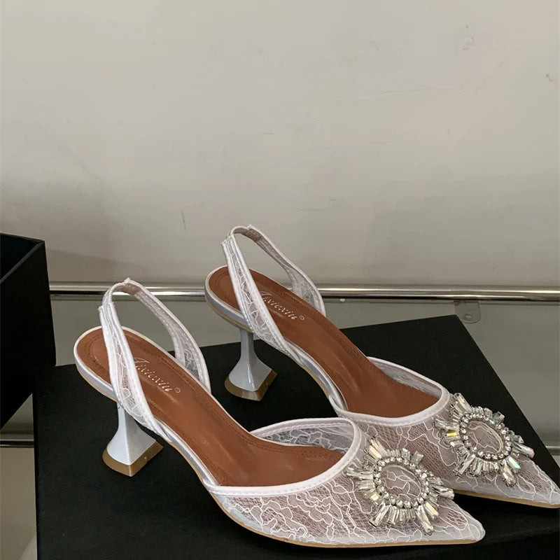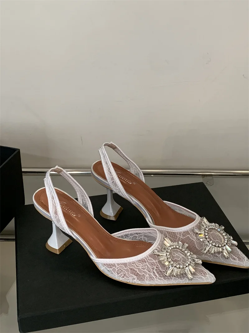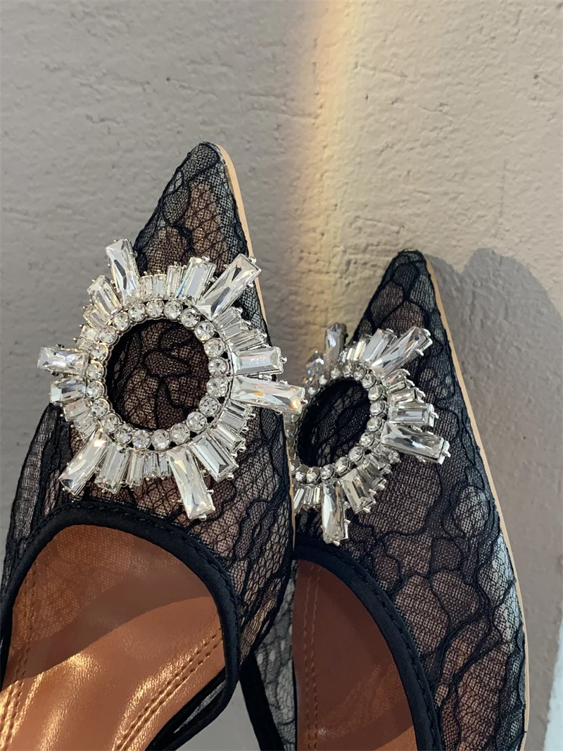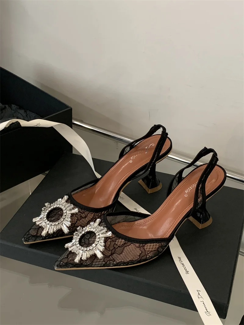 Cyflymder Lace Denim Women's Buckle Strap Rhinestone Sandals Female Shoe High Heels Laces Girls 2025 Comfort High-heeled Closed Spring